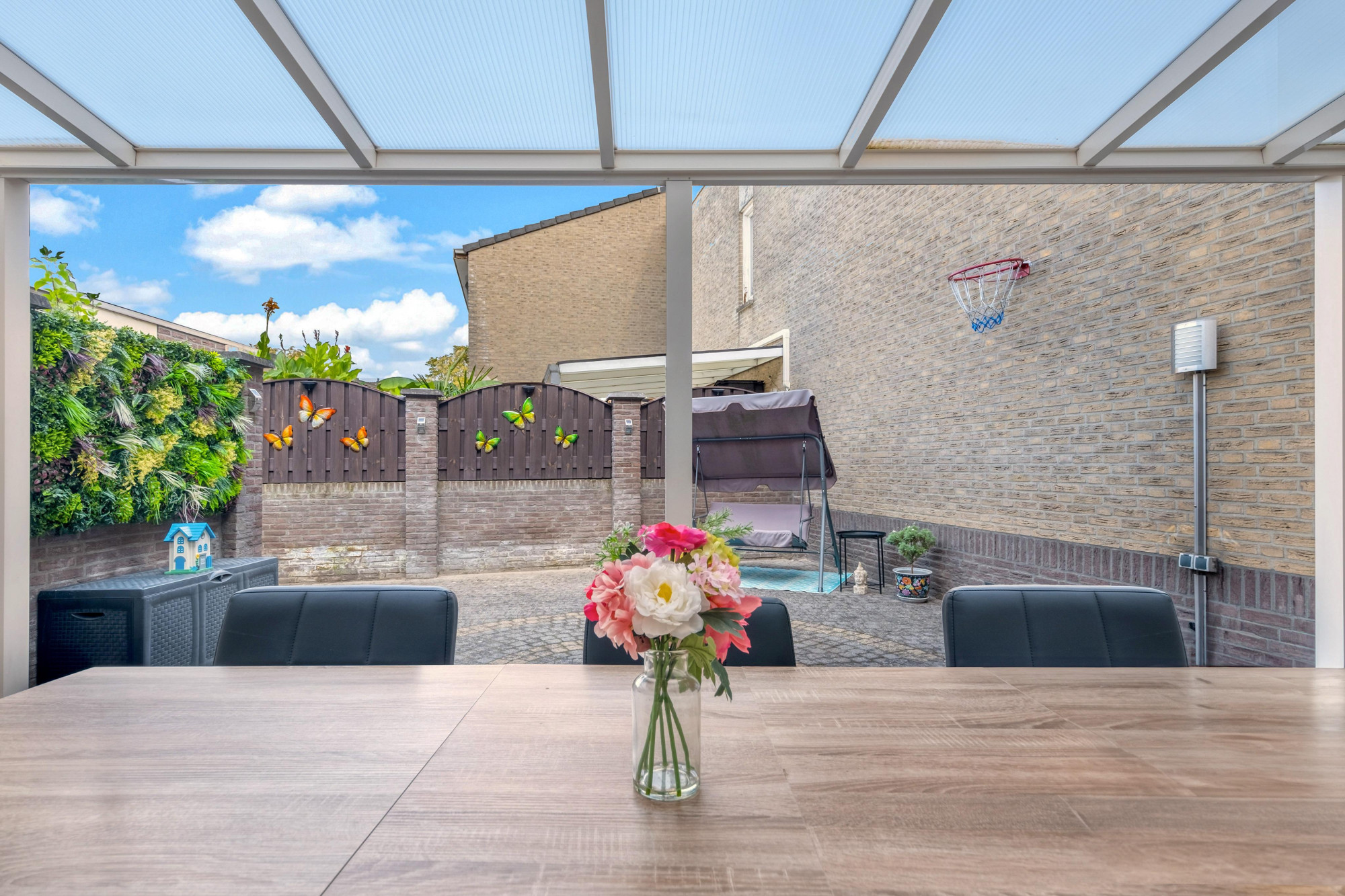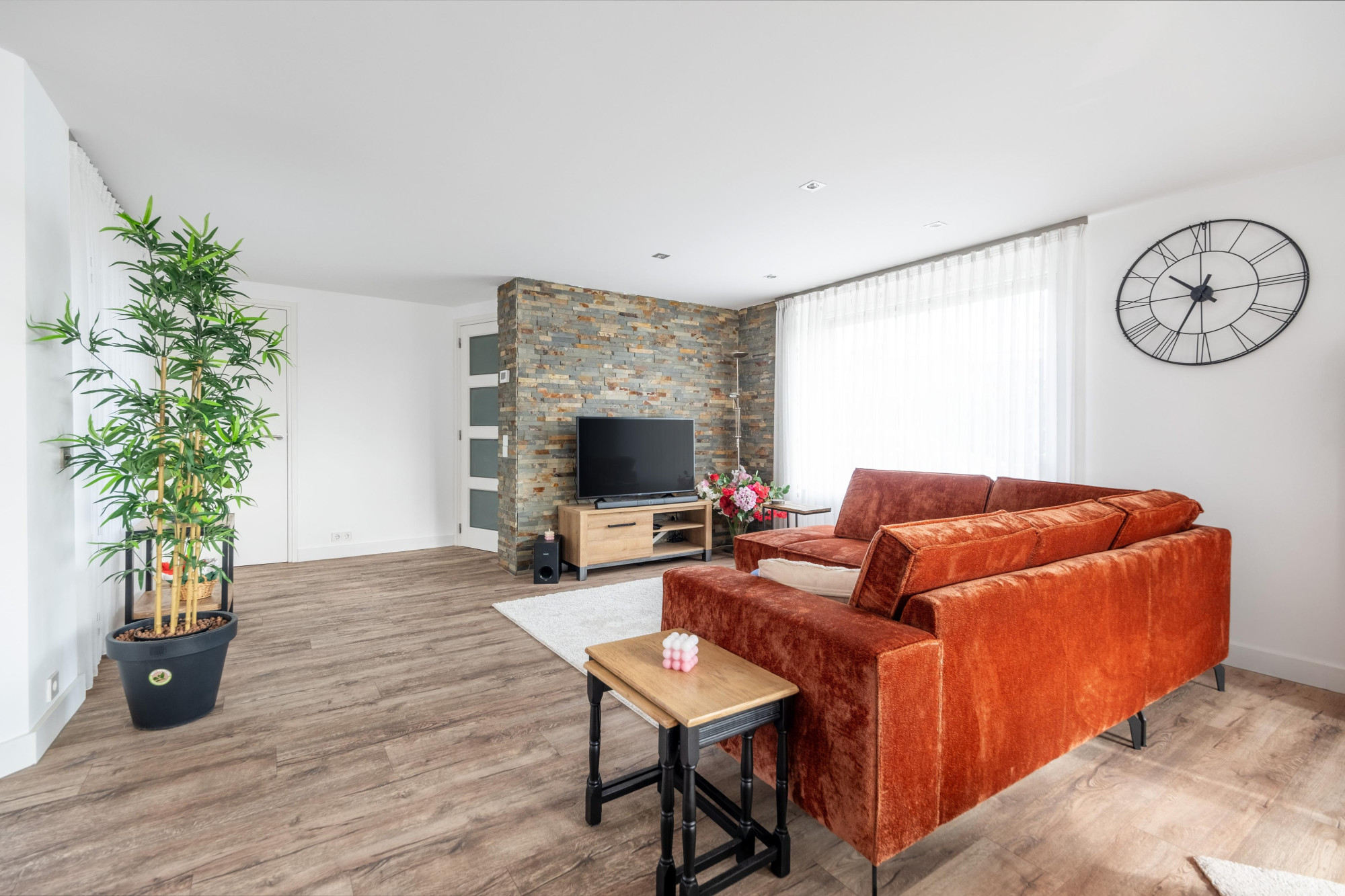 Voor mensen die gesteld zijn op veel ruimte maar toch dichtbij het centrum, alle voorzieningen, uitvalswegen en de natuur willen wonen, is dit een perfecte instapklare gezinswoning. Naast een ruime open keuken met inbouwapparatuur, een niet-standaard badkamer en 4 slaapkamers beschikt de woning ook over een aparte wasruimte, interne berging en een eigen thuisbioscoop met professionele apparatuur. De privé parkeerplaats bevindt zich op een afgesloten terrein.