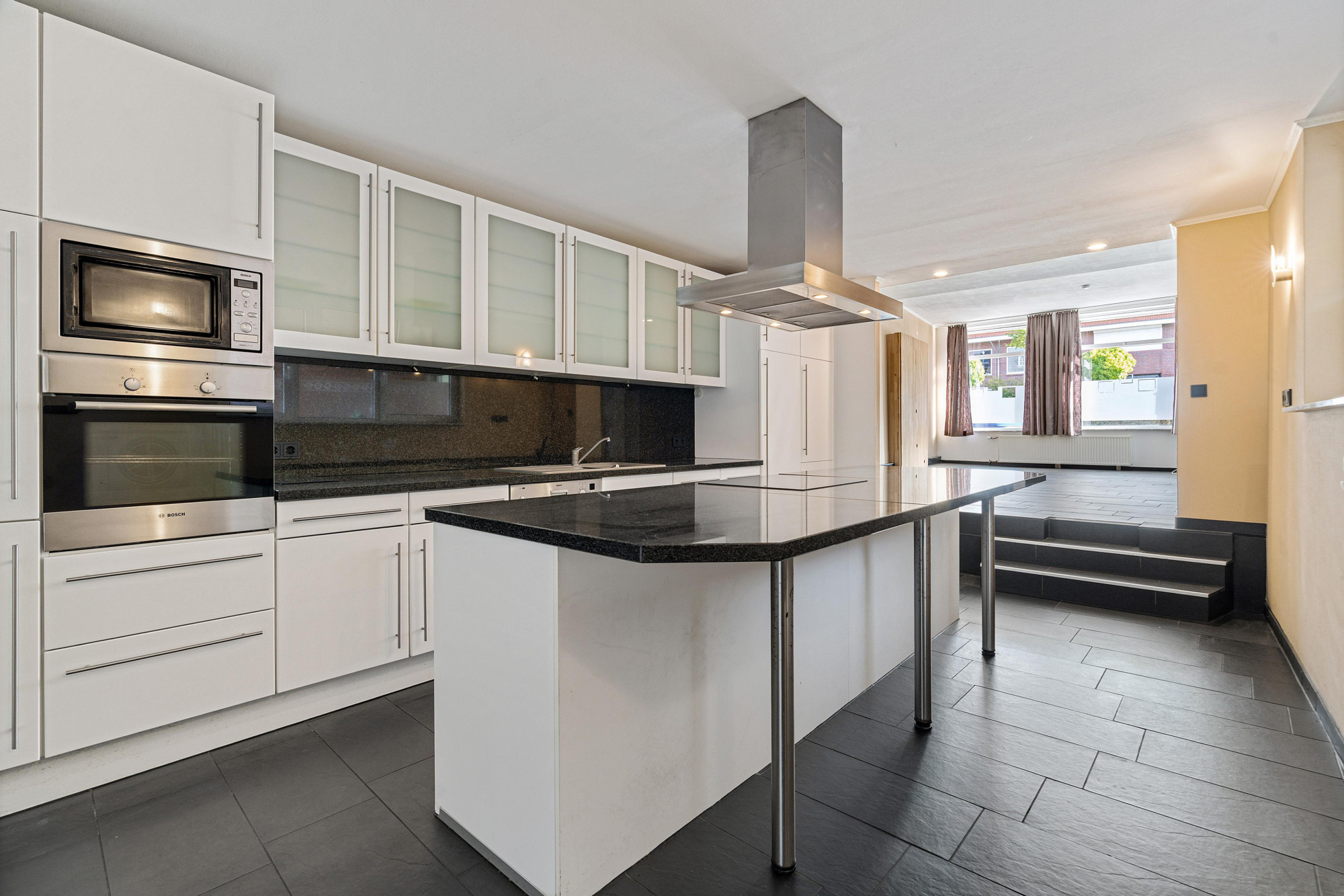 - Moderne leefkeuken met kookeiland en veel kastruimte.