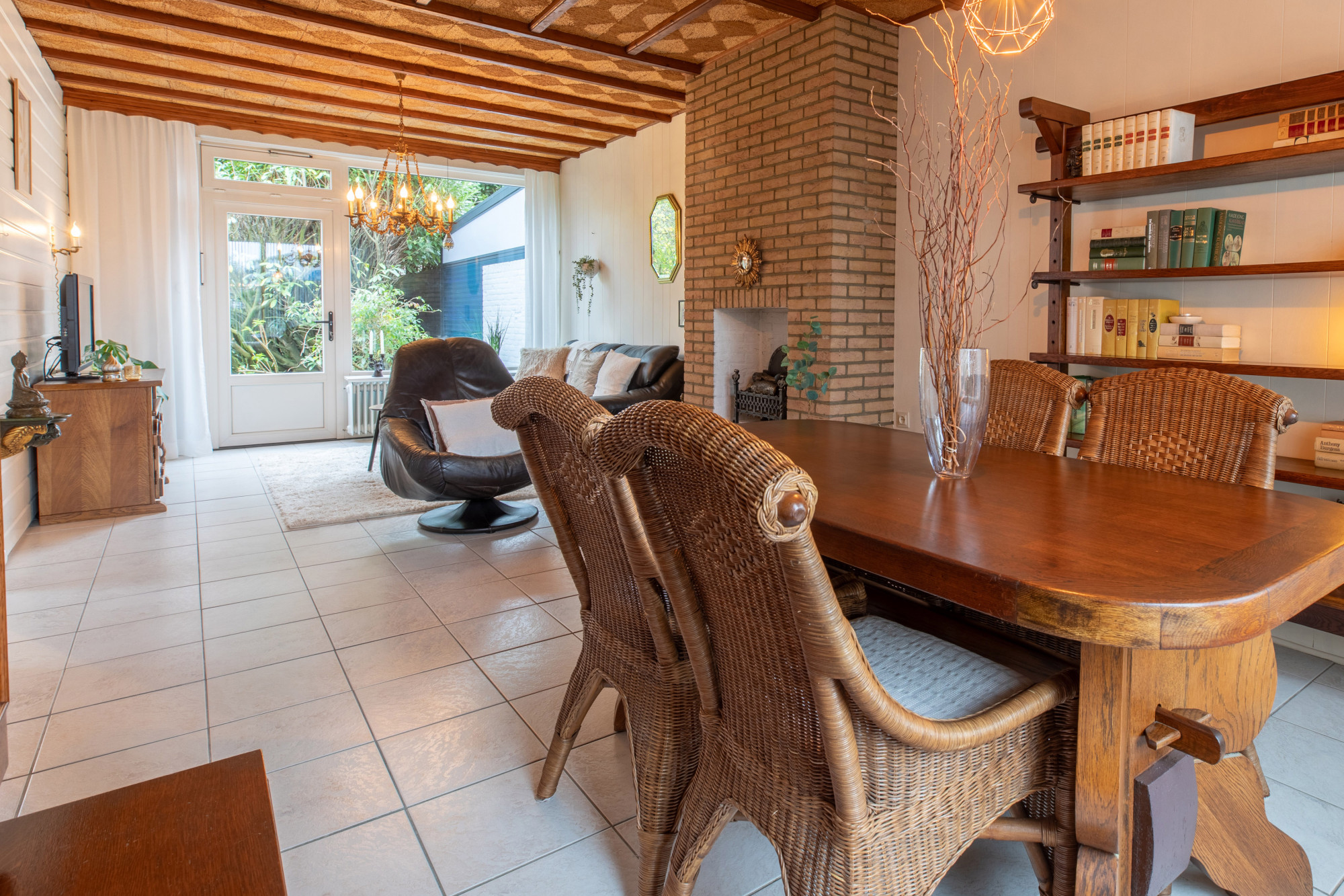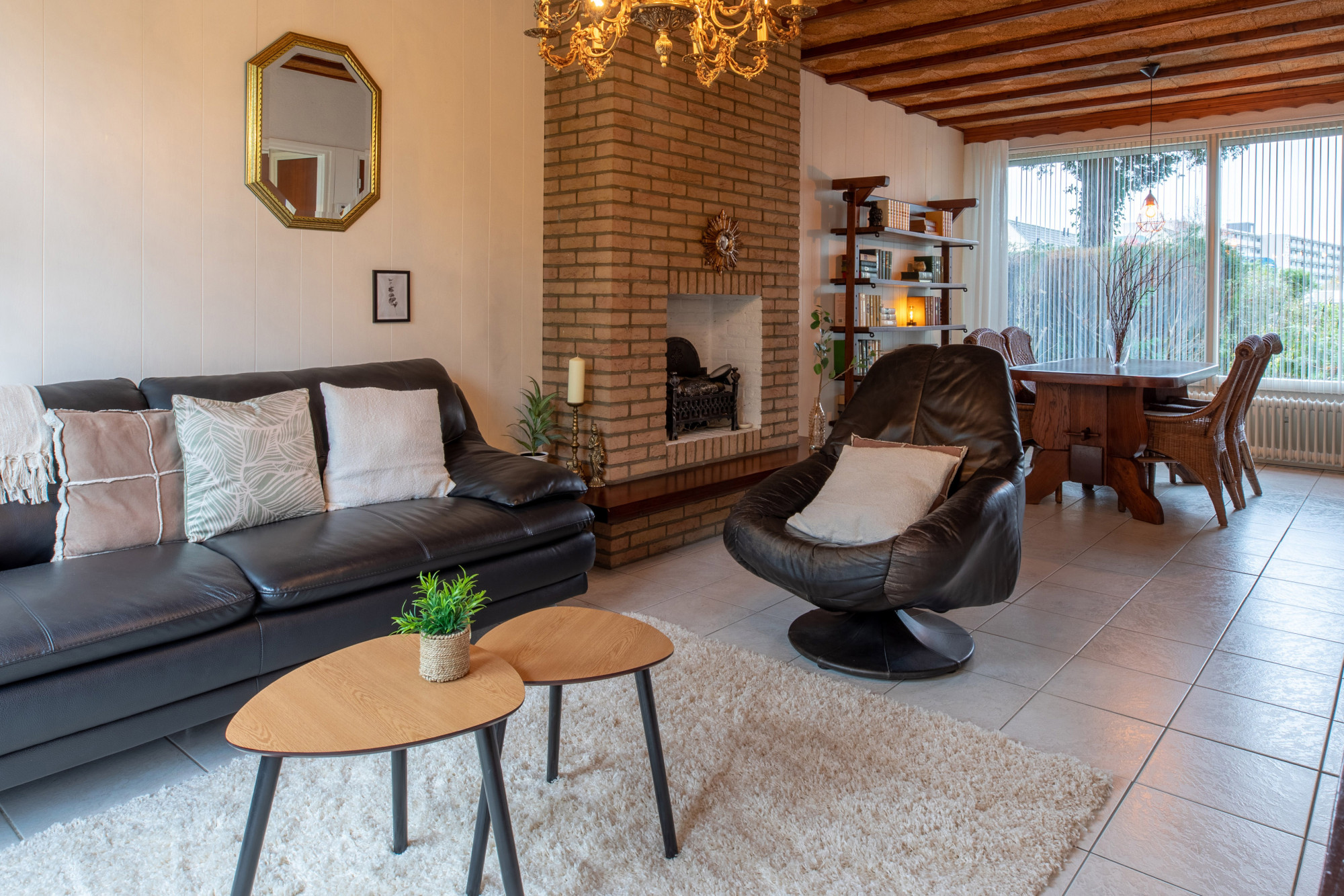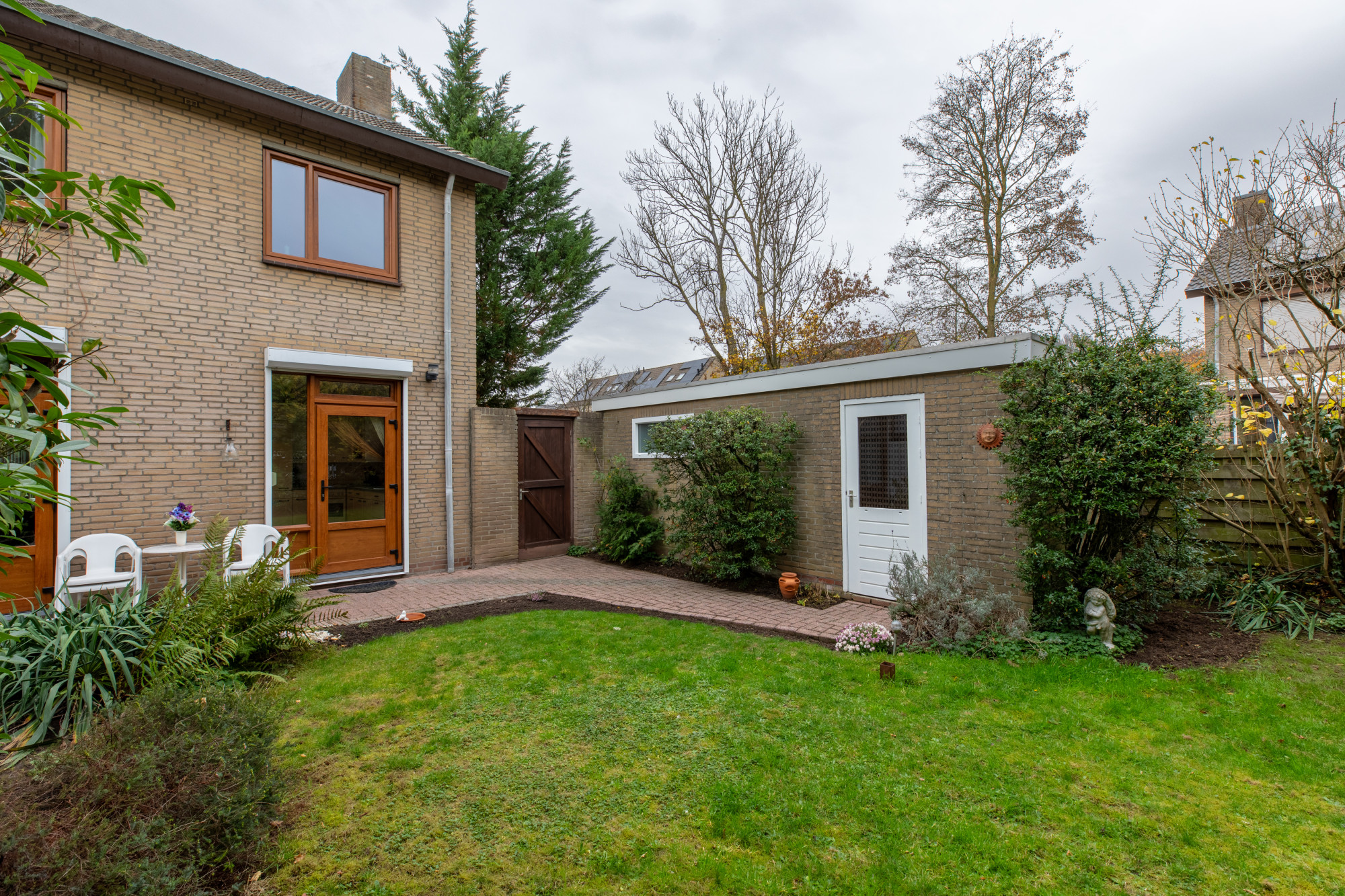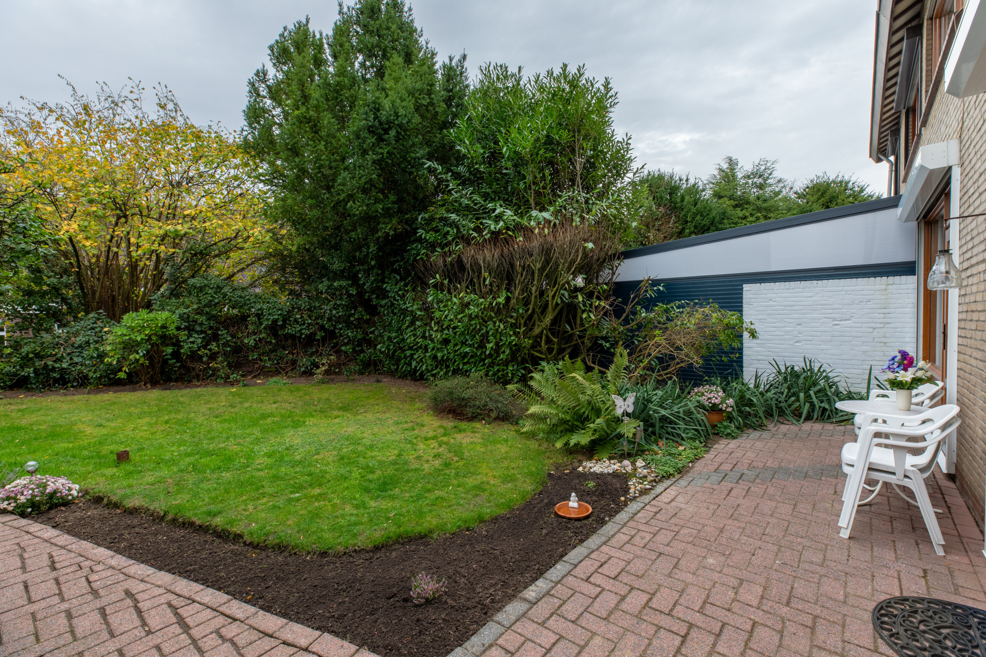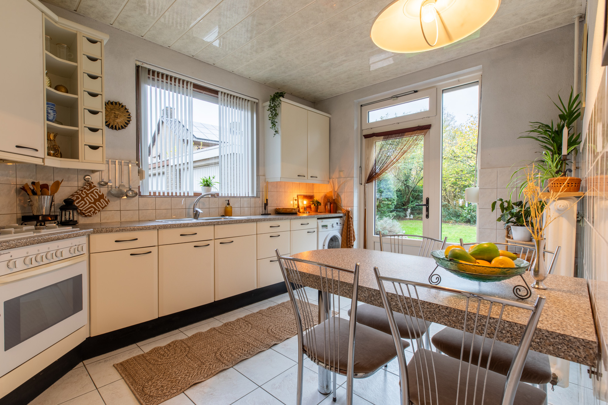 Voortuin. Royale oprit. Hal met meterkast, verdiepingstrap, trapberging en toiletruimte met hangend toilet. Doorzonwoonkamer met aan de achterzijde een toegangsdeur naar de tuin. Separate keuken voorzien van een keukeninstallatie in hoekopstelling met diverse apparatuur. Tevens vanuit keuken toegang naar de achtertuin. De achtertuin is verzorgd aangelegd met terras, gazon en beplantingen. Naast woning gelegen garage met royale oprit. De garage is voorzien van een elektrische kantelpoort.