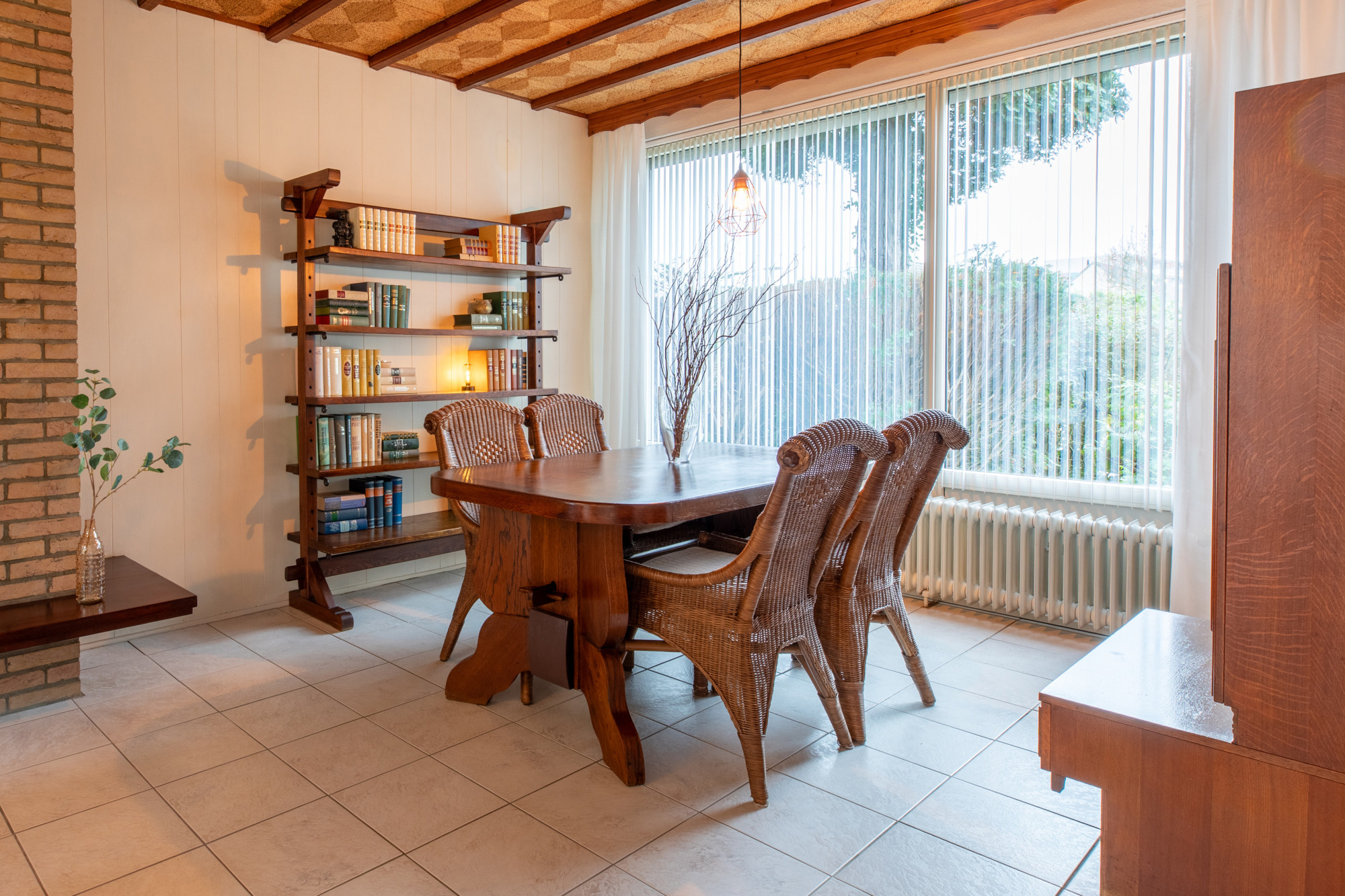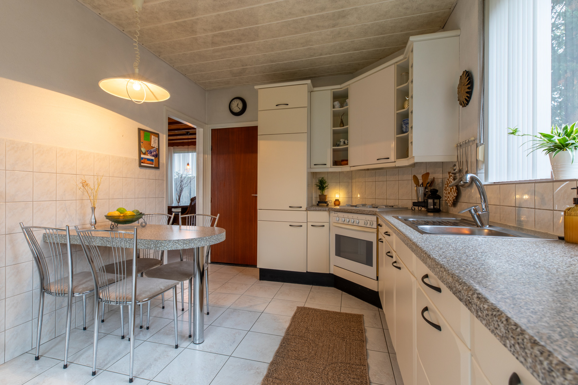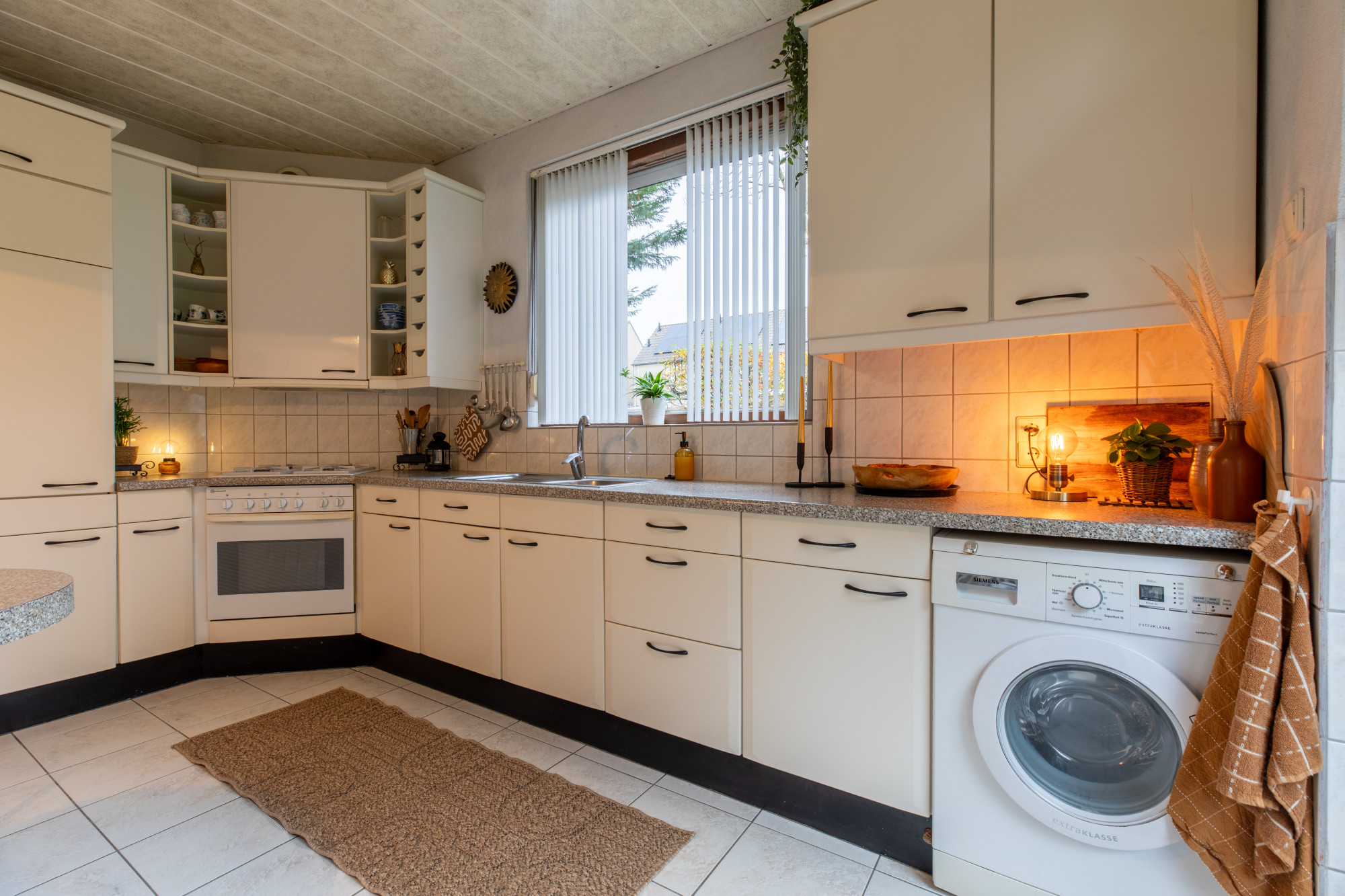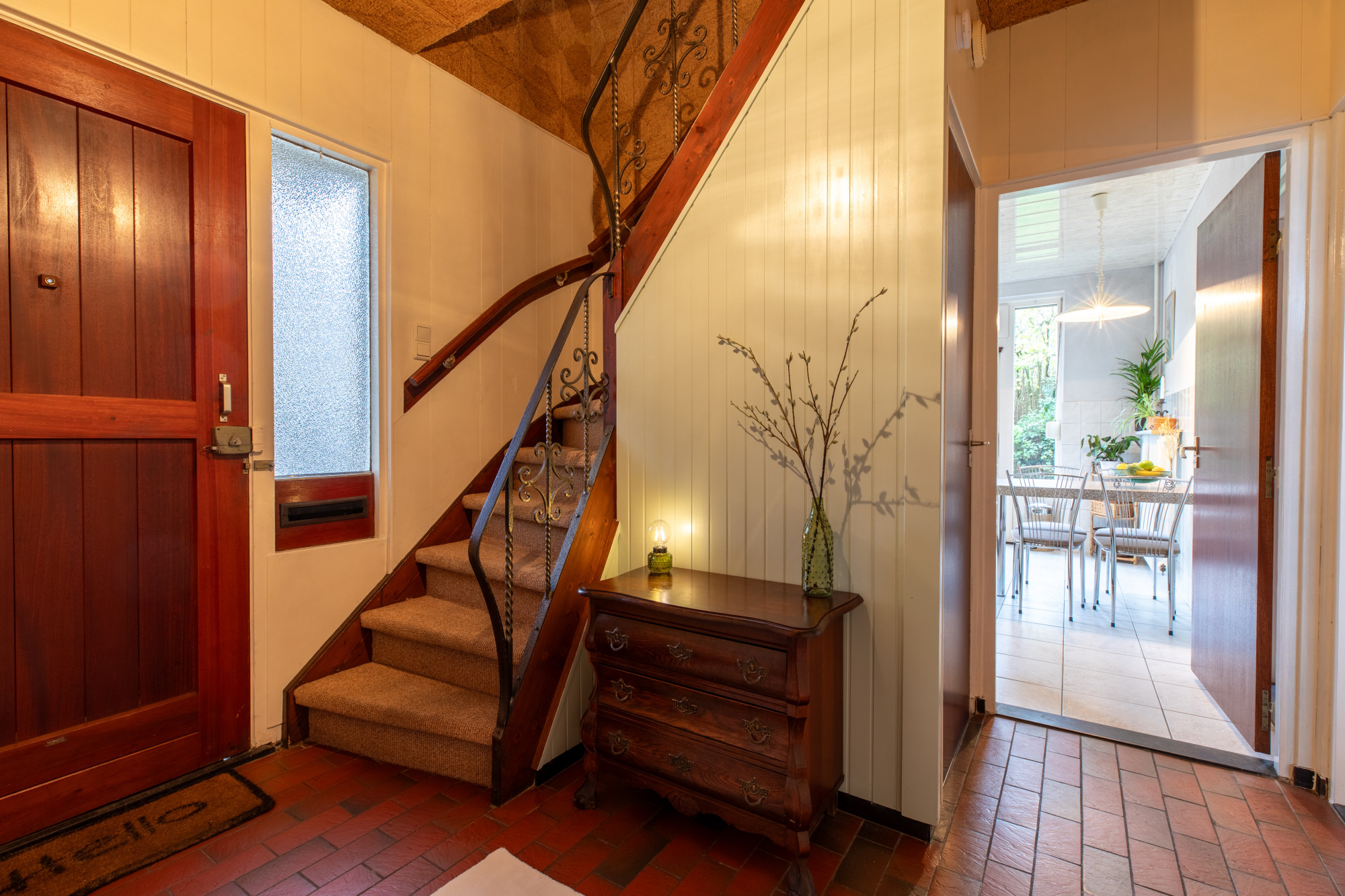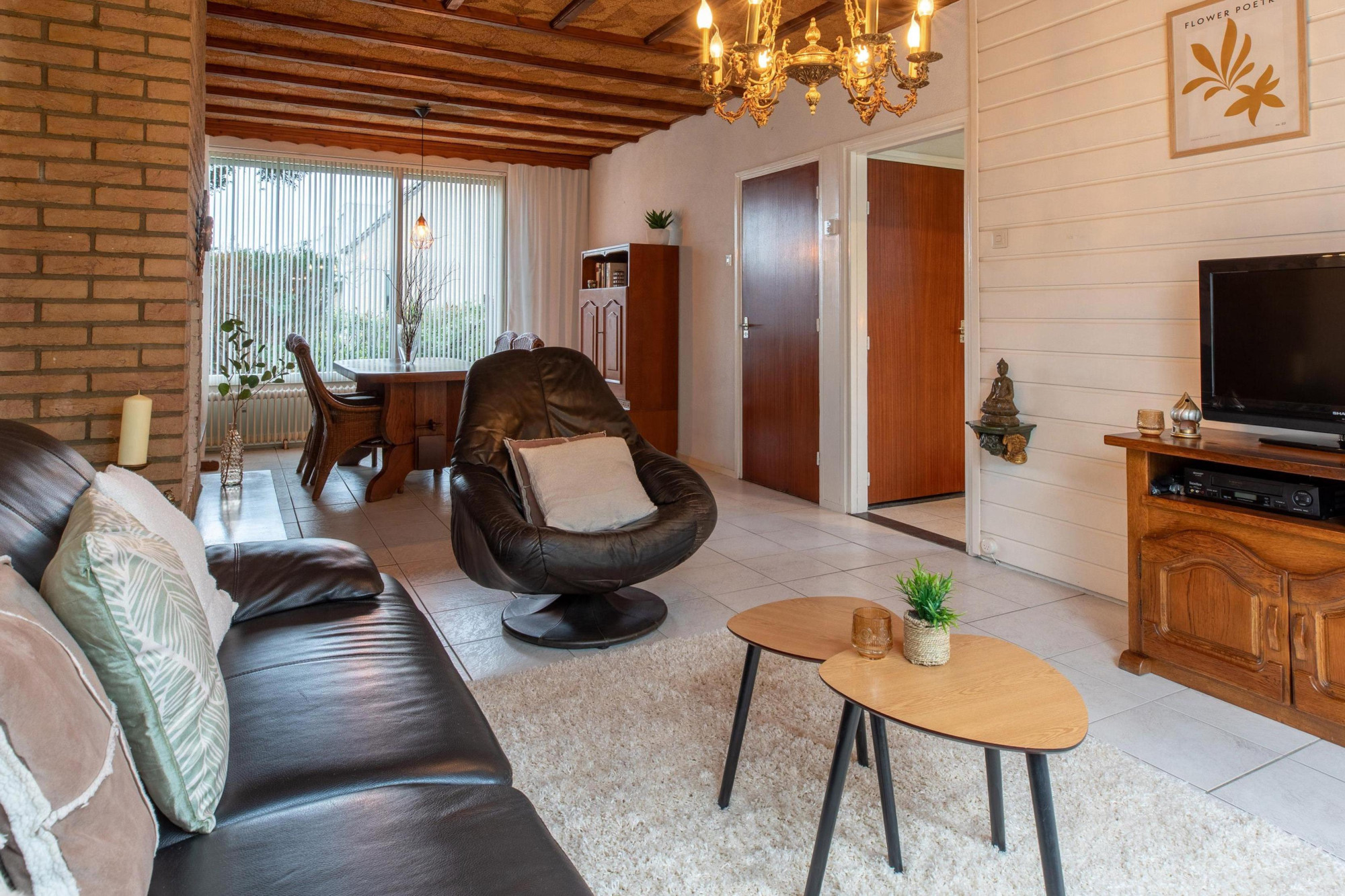 Voortuin. Royale oprit. Hal met meterkast, verdiepingstrap, trapberging en toiletruimte met hangend toilet. Doorzonwoonkamer met aan de achterzijde een toegangsdeur naar de tuin. Separate keuken voorzien van een keukeninstallatie in hoekopstelling met diverse apparatuur. Tevens vanuit keuken toegang naar de achtertuin. De achtertuin is verzorgd aangelegd met terras, gazon en beplantingen. Naast woning gelegen garage met royale oprit. De garage is voorzien van een elektrische kantelpoort.