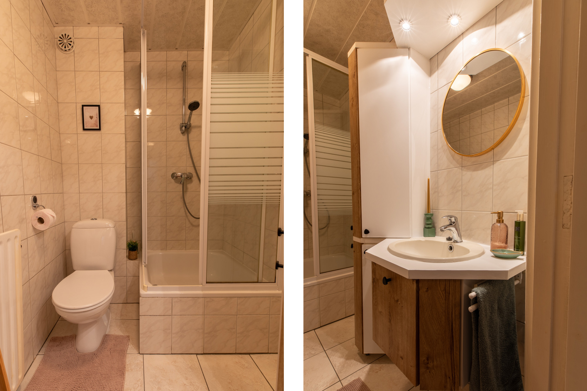 Overloop met toegang tot 4 slaapkamers. Badkamer met douche, wastafelmeubel en 2e toilet.
