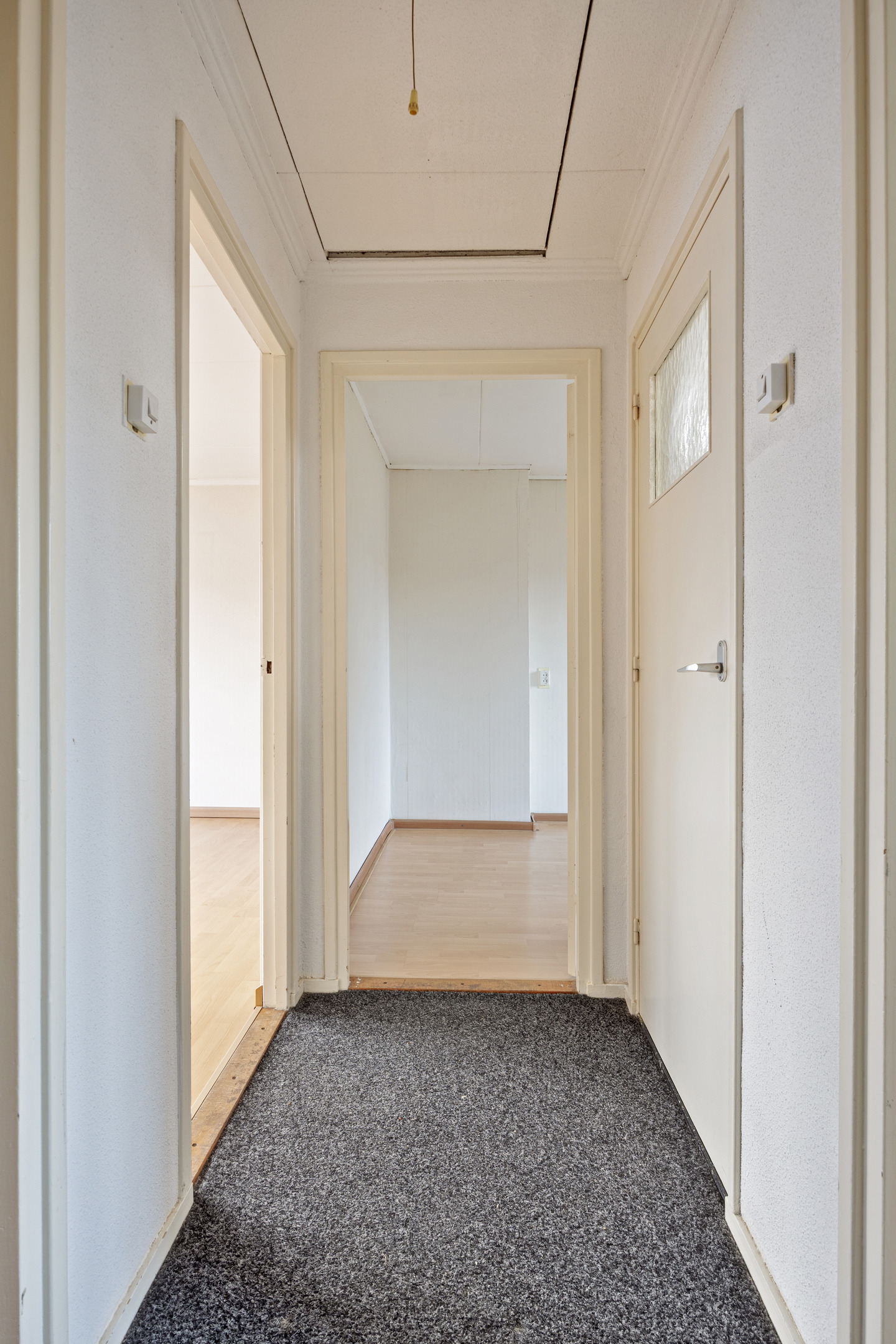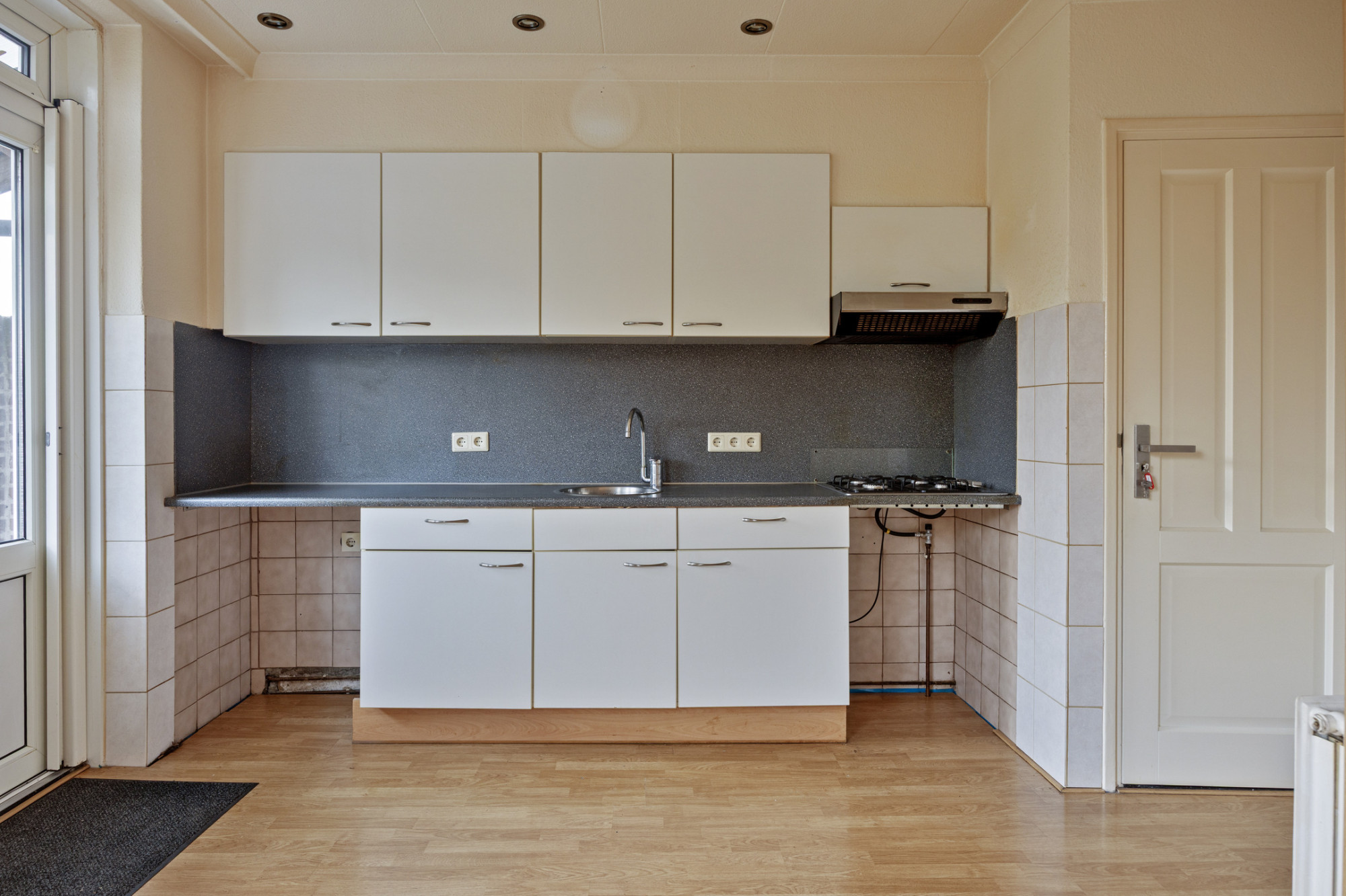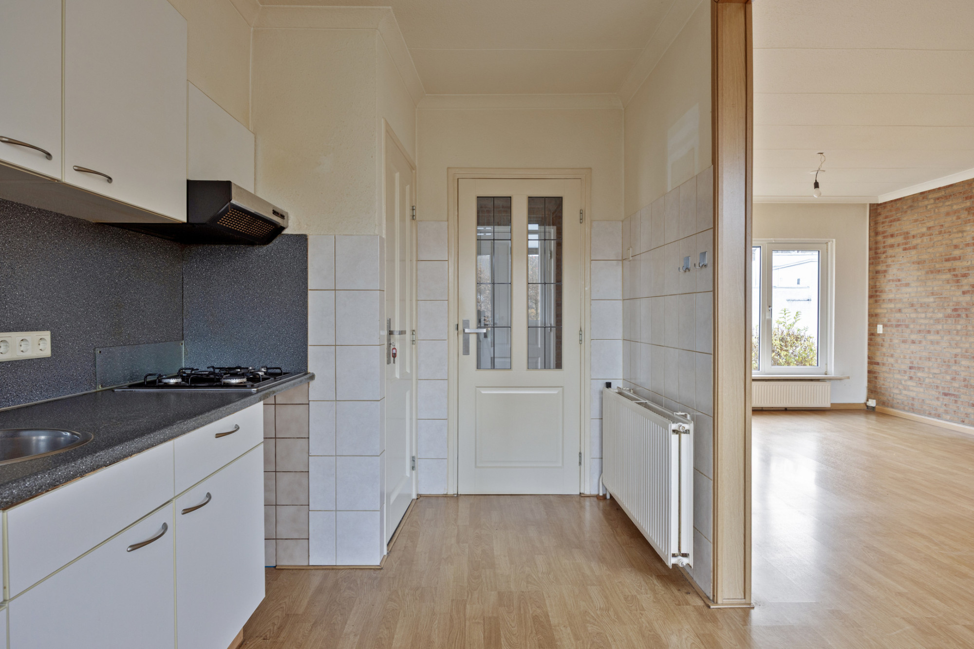 Entree met hal, meterkast en toilet. De lichte woonkamer biedt uitzicht op de tuin en staat in verbinding met de keuken, die is voorzien van een eenvoudig keukenblok. Leuke tuin waar je volop kunt genieten van rust en privacy.