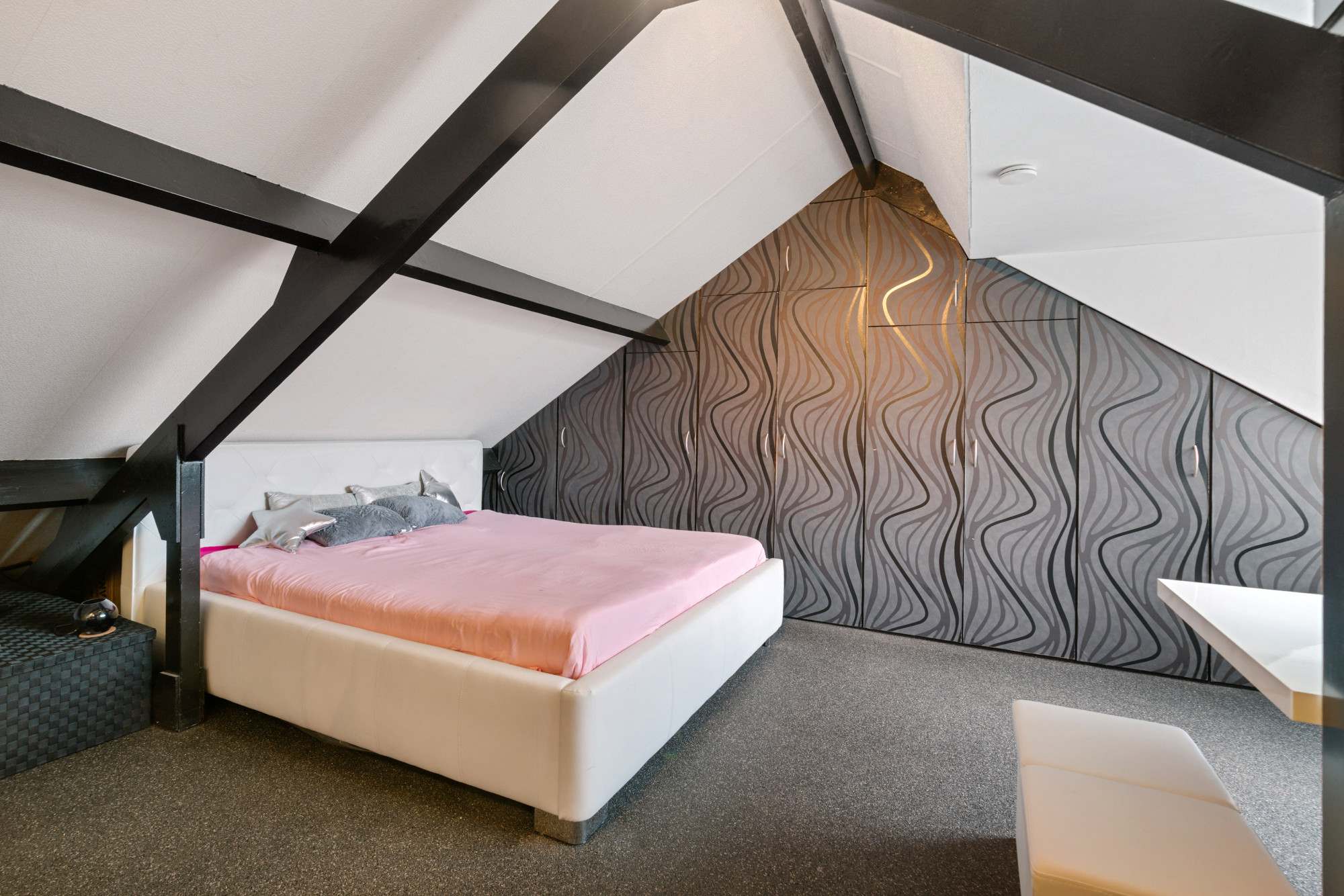De tweede verdieping biedt een extra slaapkamer met wastafel en kastenwand. Vanuit deze slaapkamer is de cv-ruimte bereikbaar, waar de cv-ketel zich bevindt. Ook deze verdieping is voorzien van een grindvloer en kan dienen als extra woonruimte of slaapkamer naar wens.