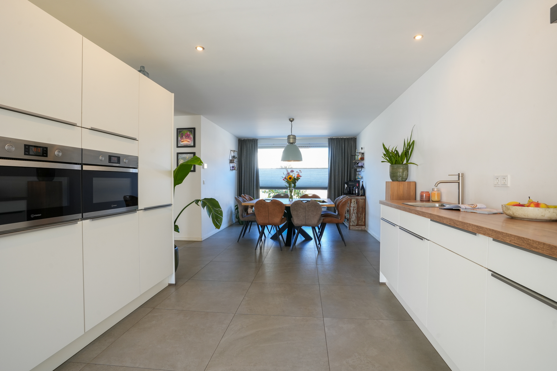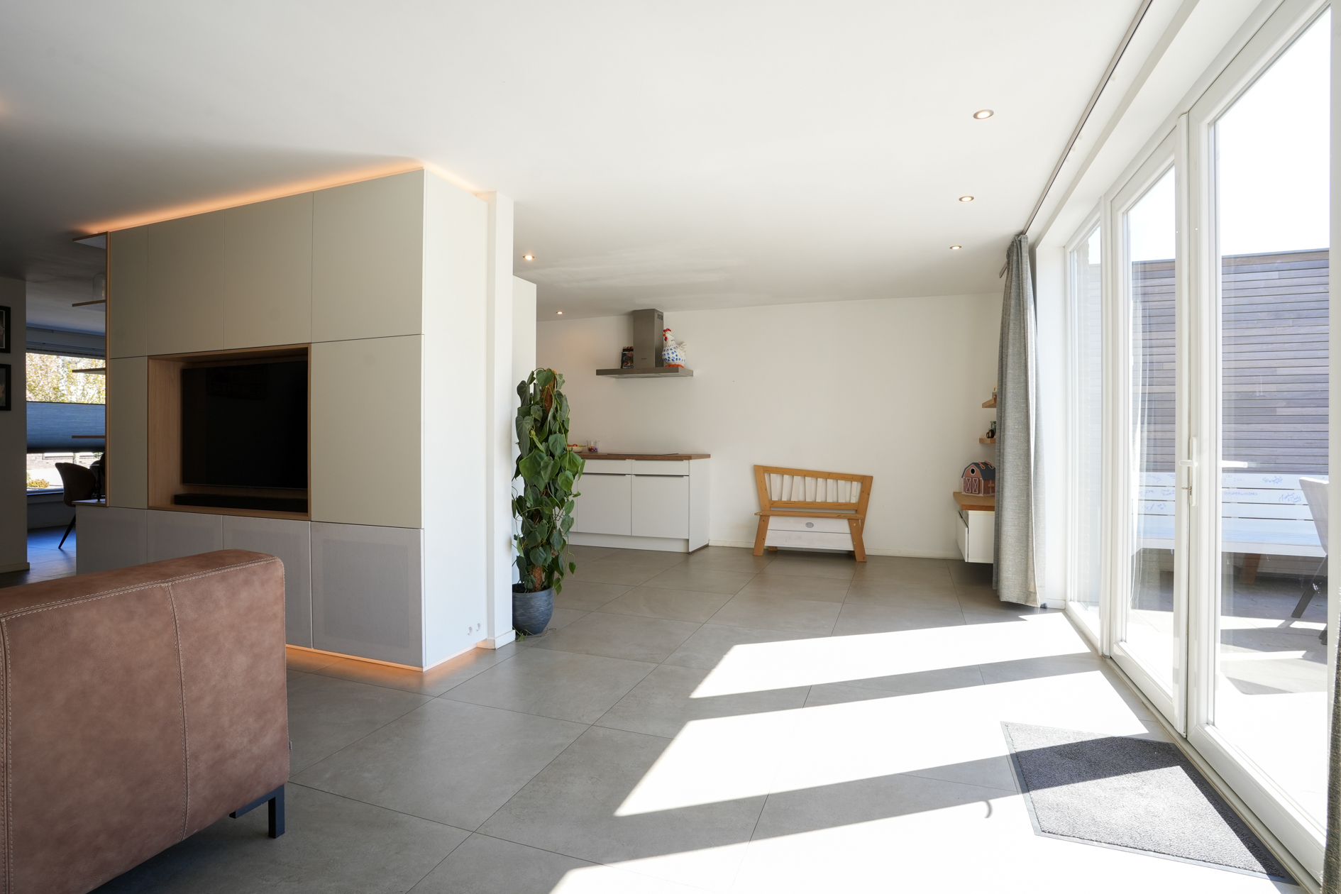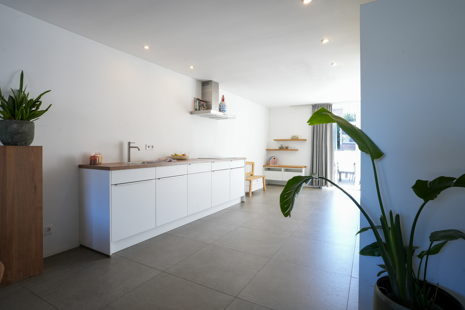 (woonkamer/keuken/eetkamer) is ruim van opzet en verschaft veel lichtinval. De woning scheidende wand is voorzien van een geïsoleerde voorzetwand, de tegenoverliggende wand van de woonkamer/berging/garage is eveneens voorzien van een voorzetwand.