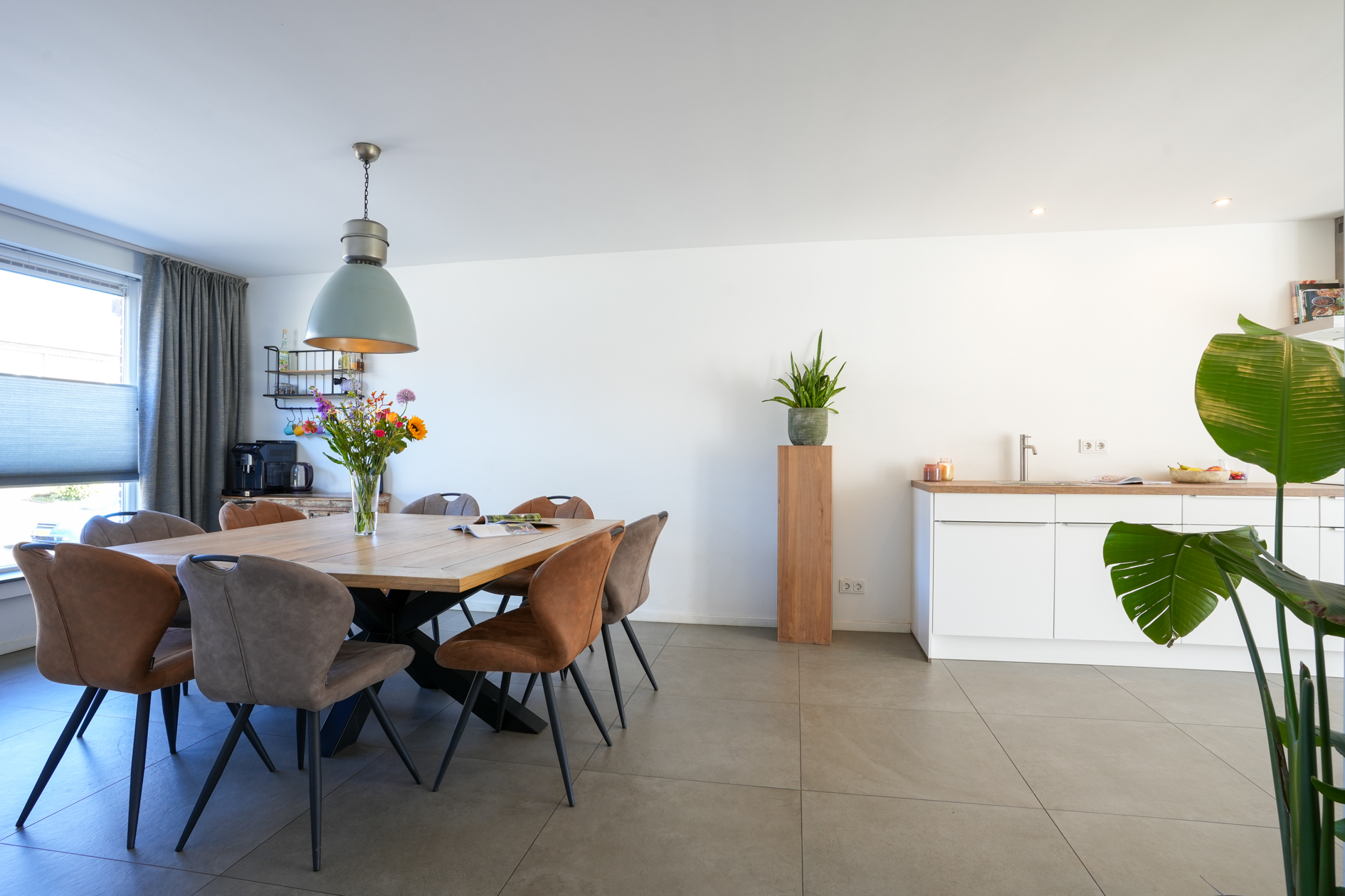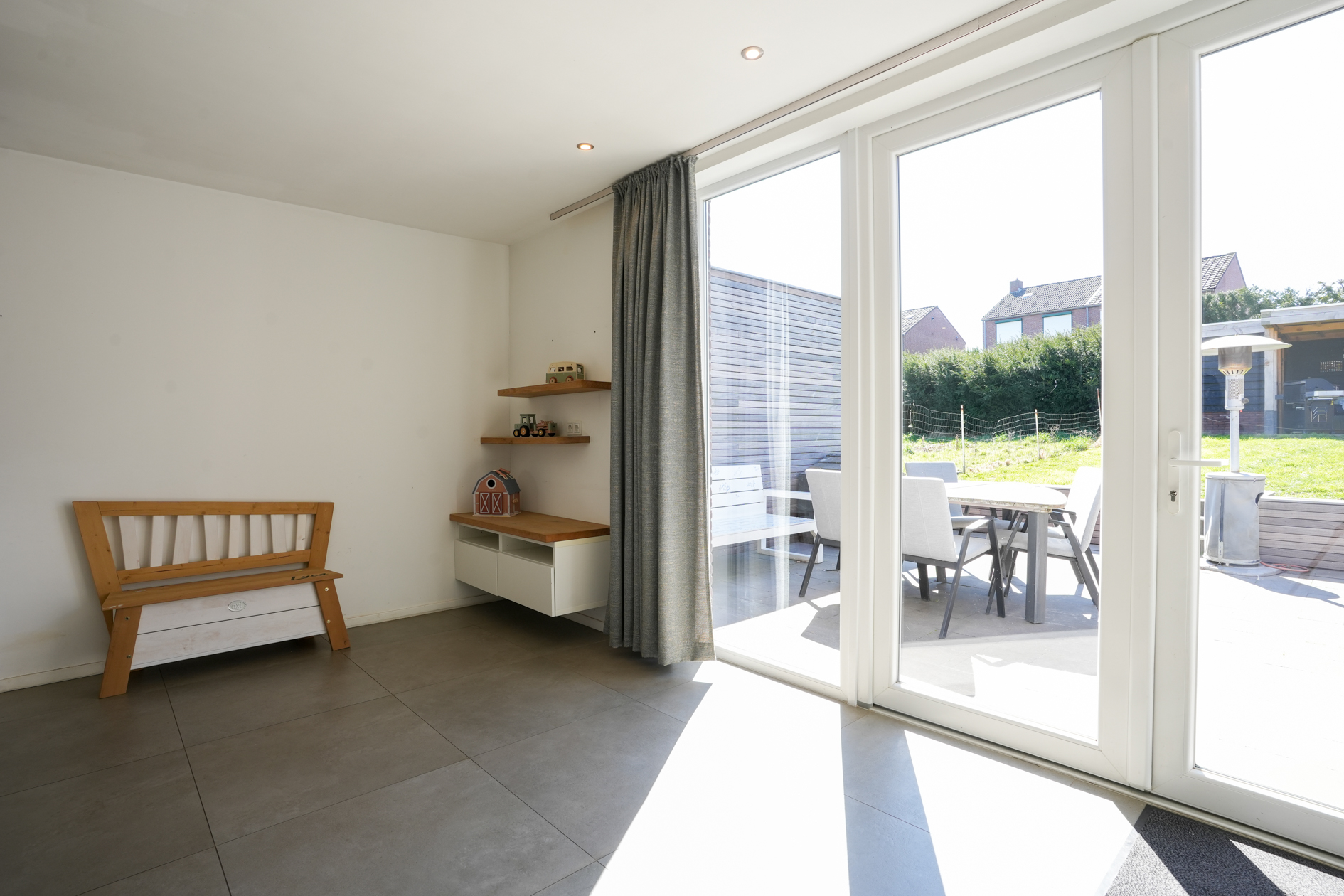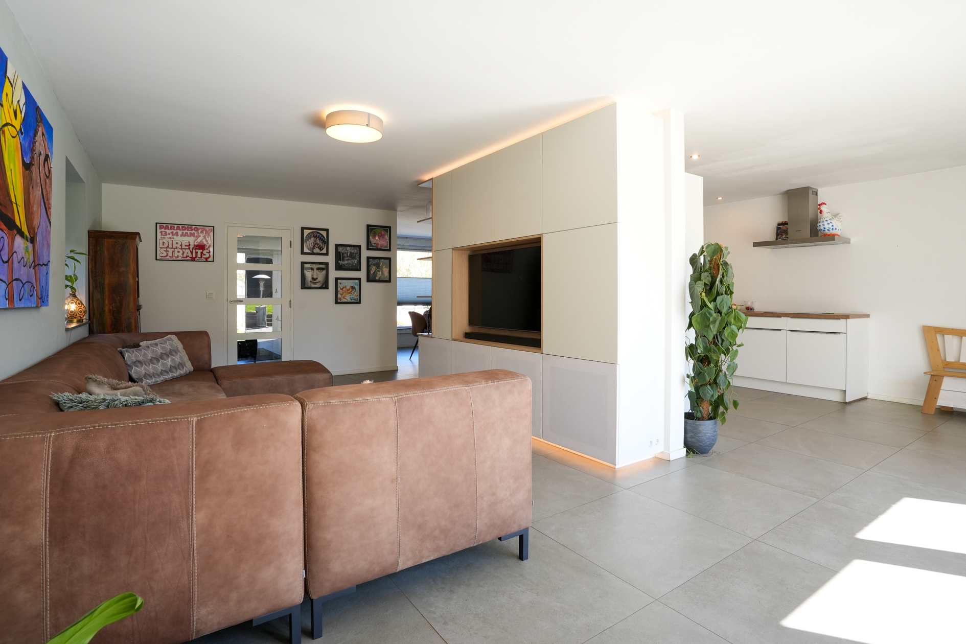 (woonkamer/keuken/eetkamer) is ruim van opzet en verschaft veel lichtinval. De woning scheidende wand is voorzien van een geïsoleerde voorzetwand, de tegenoverliggende wand van de woonkamer/berging/garage is eveneens voorzien van een voorzetwand.