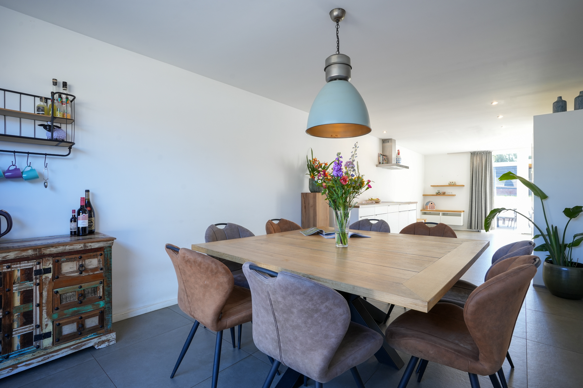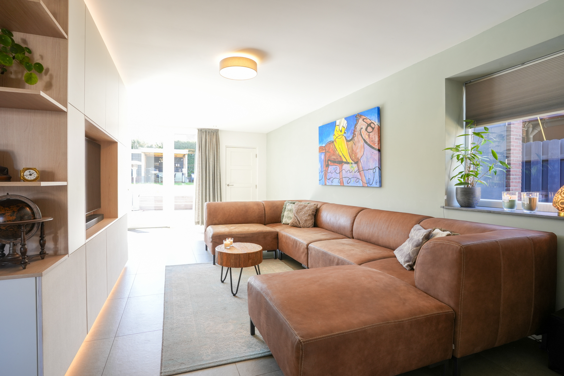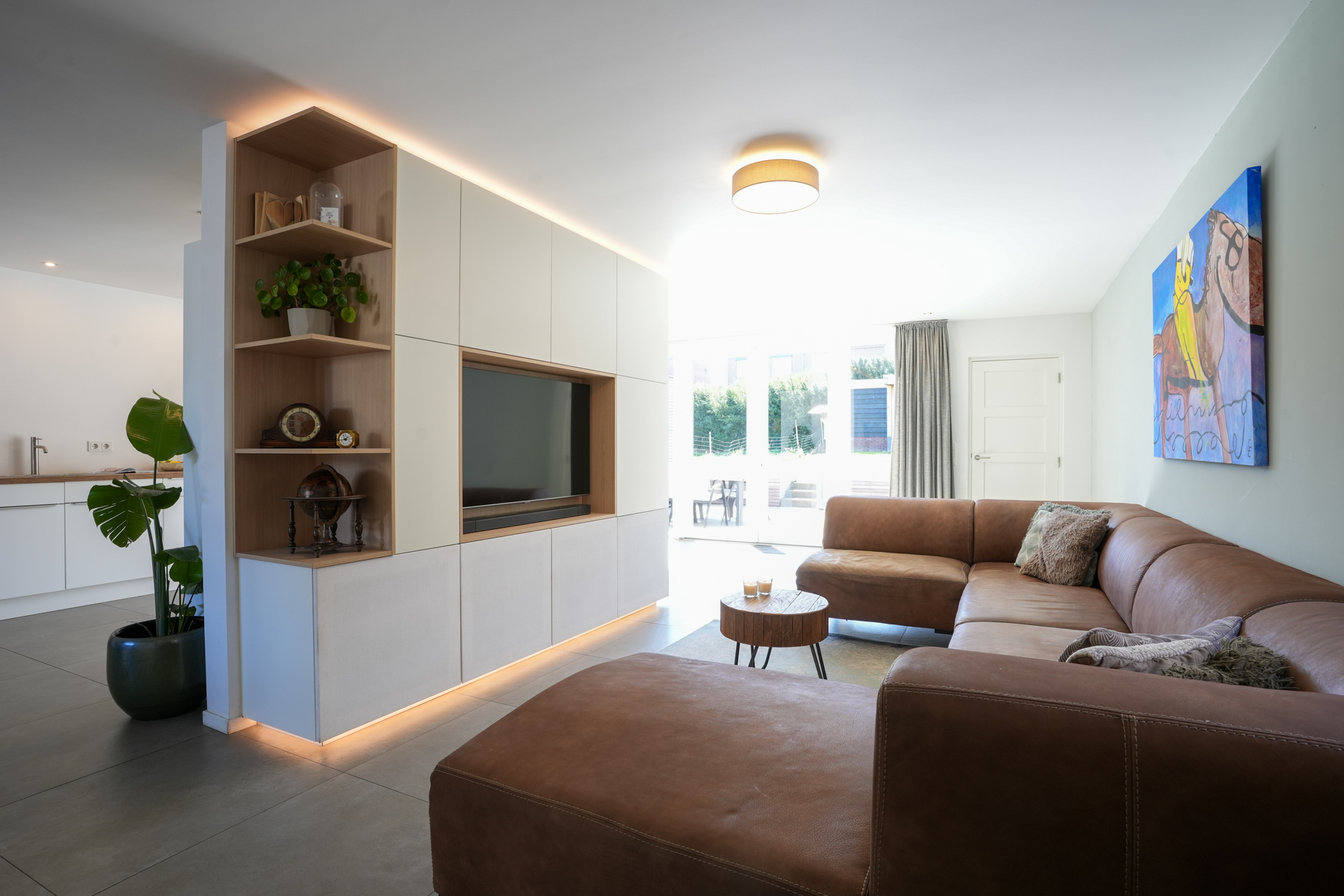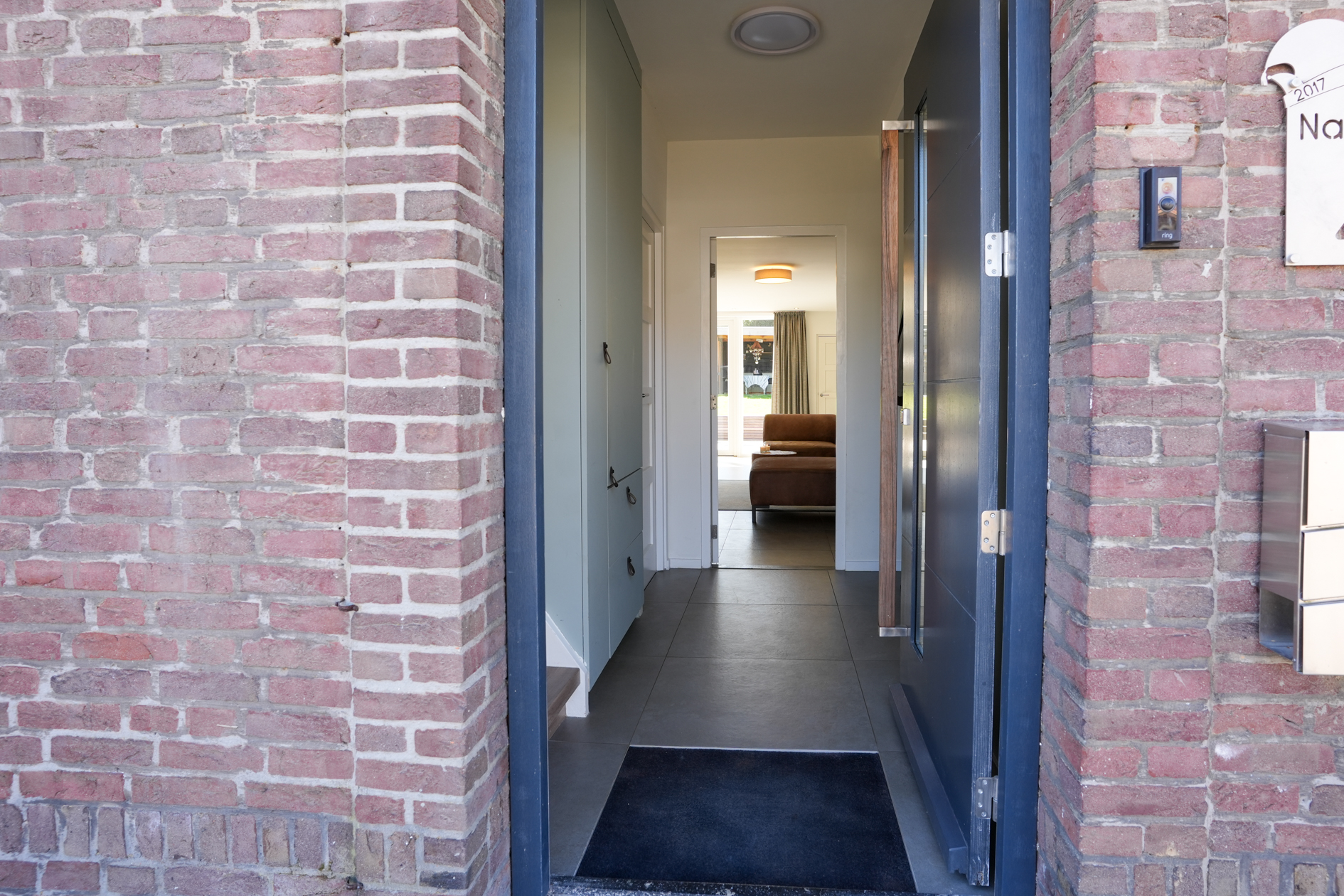 De keuken (2018) is voorzien van inbouwapparatuur en de grote pui aan de achterzijde van de woonkamer verschaft middels de brede dubbele deuren toegang naar de tuin.