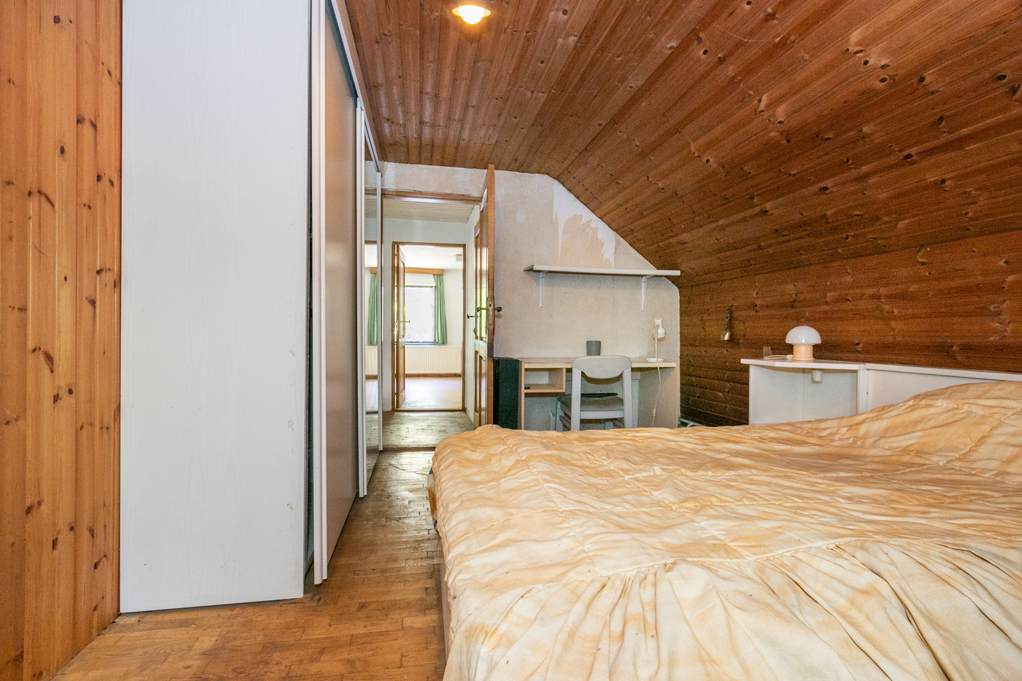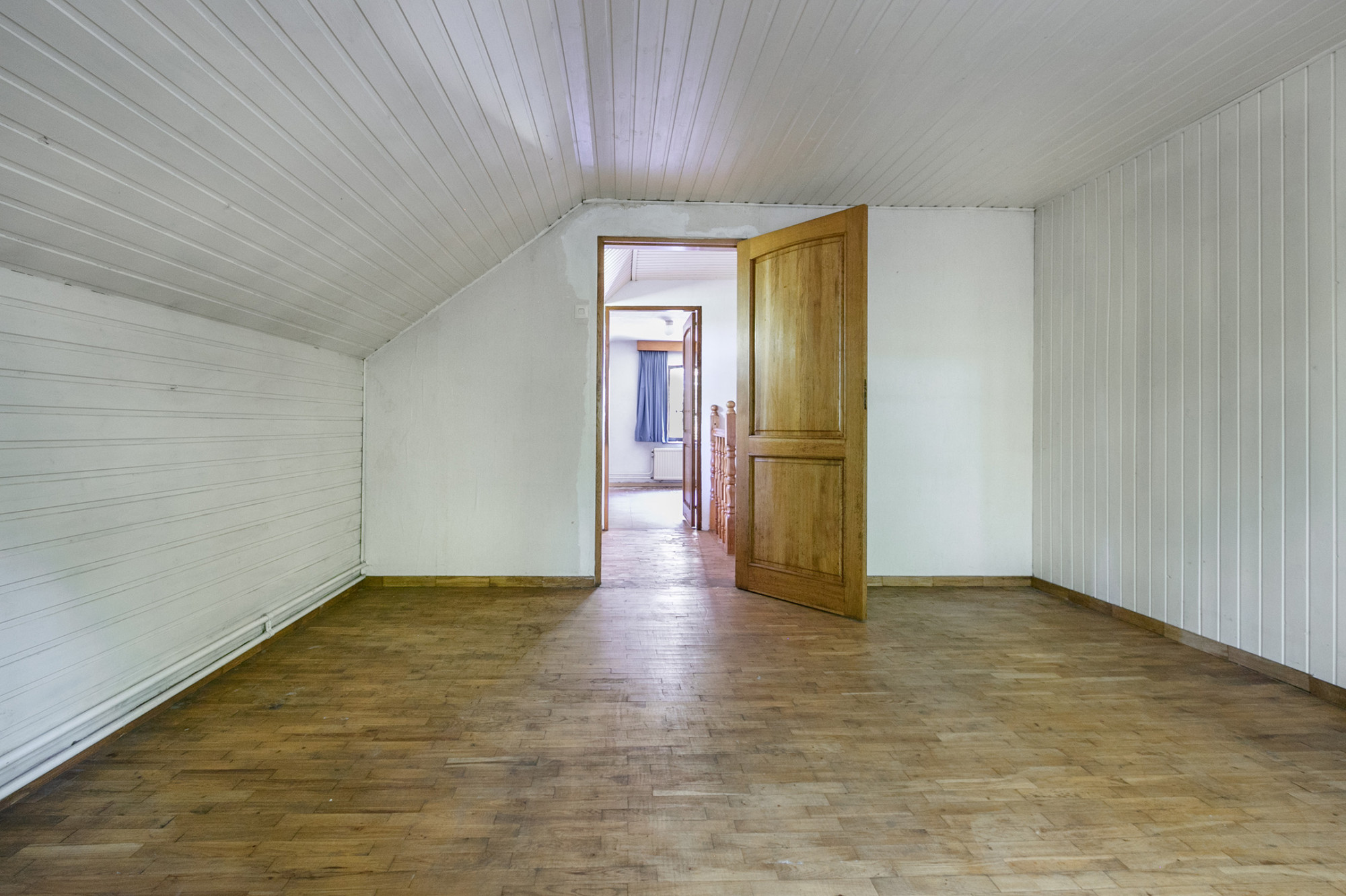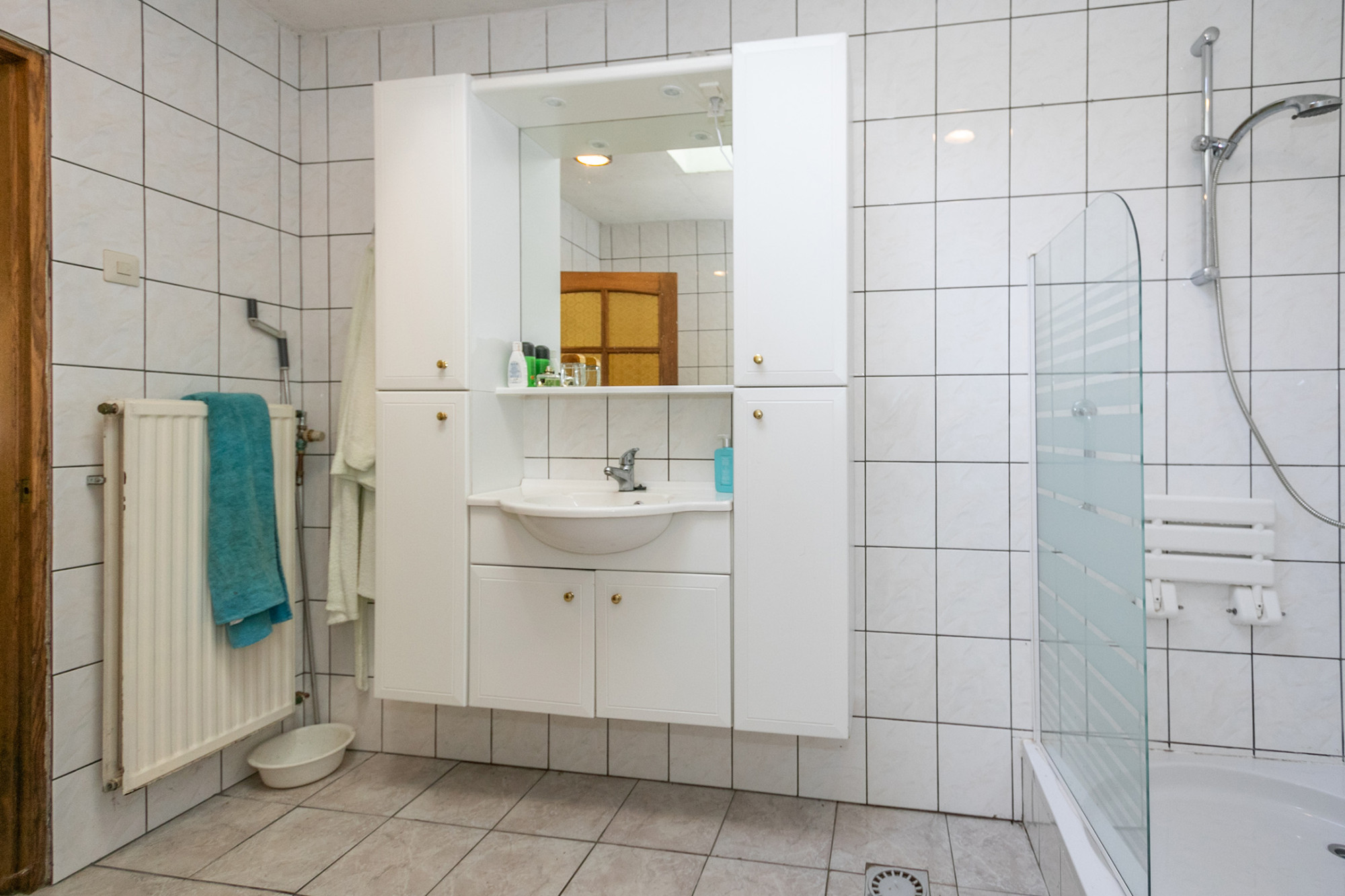 De eerste verdieping herbergt aan de grote overloop liefst vier grote slaapkamers en een compacte badkamer. Meer dan voldoende ruimte voor een gezin.