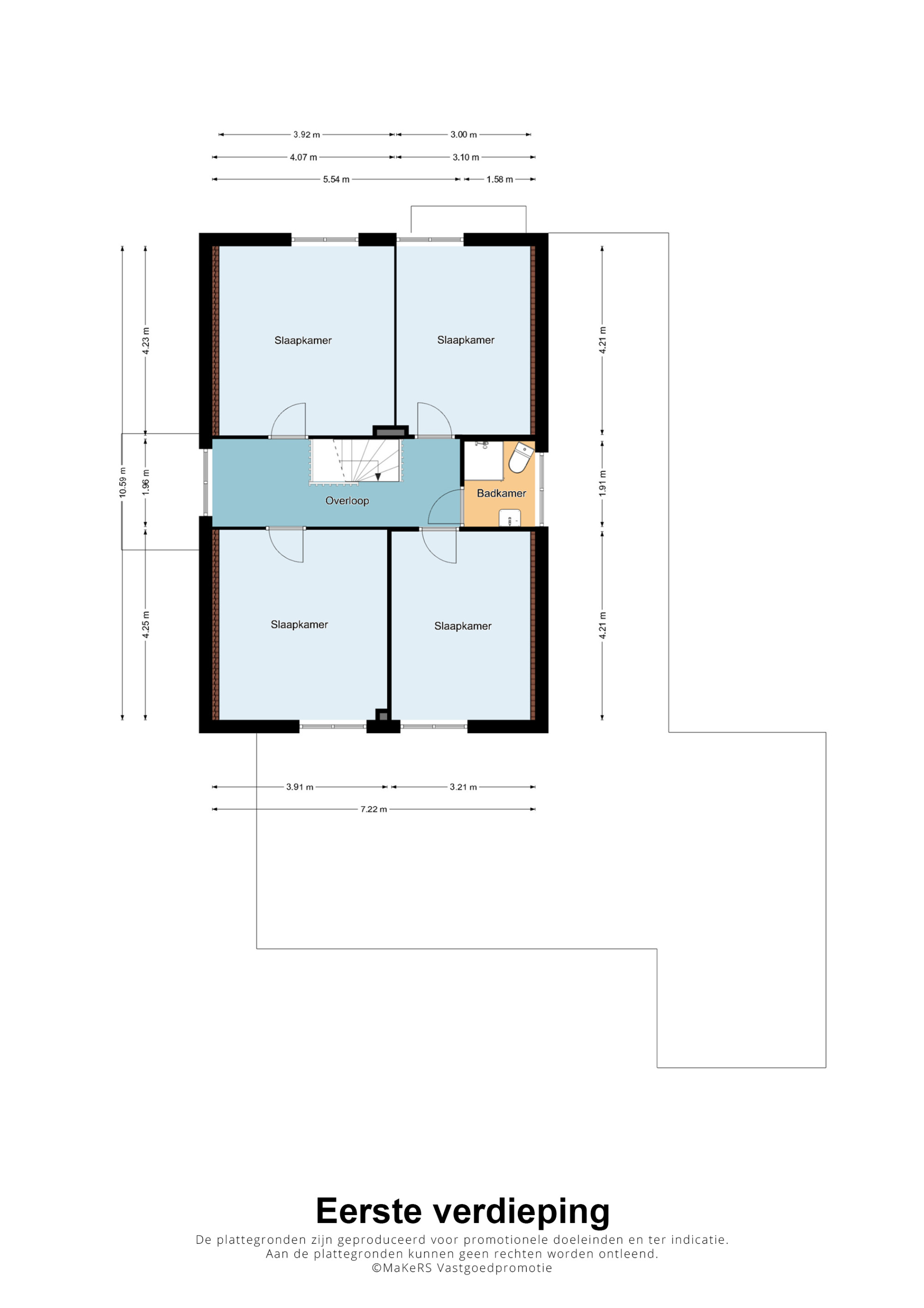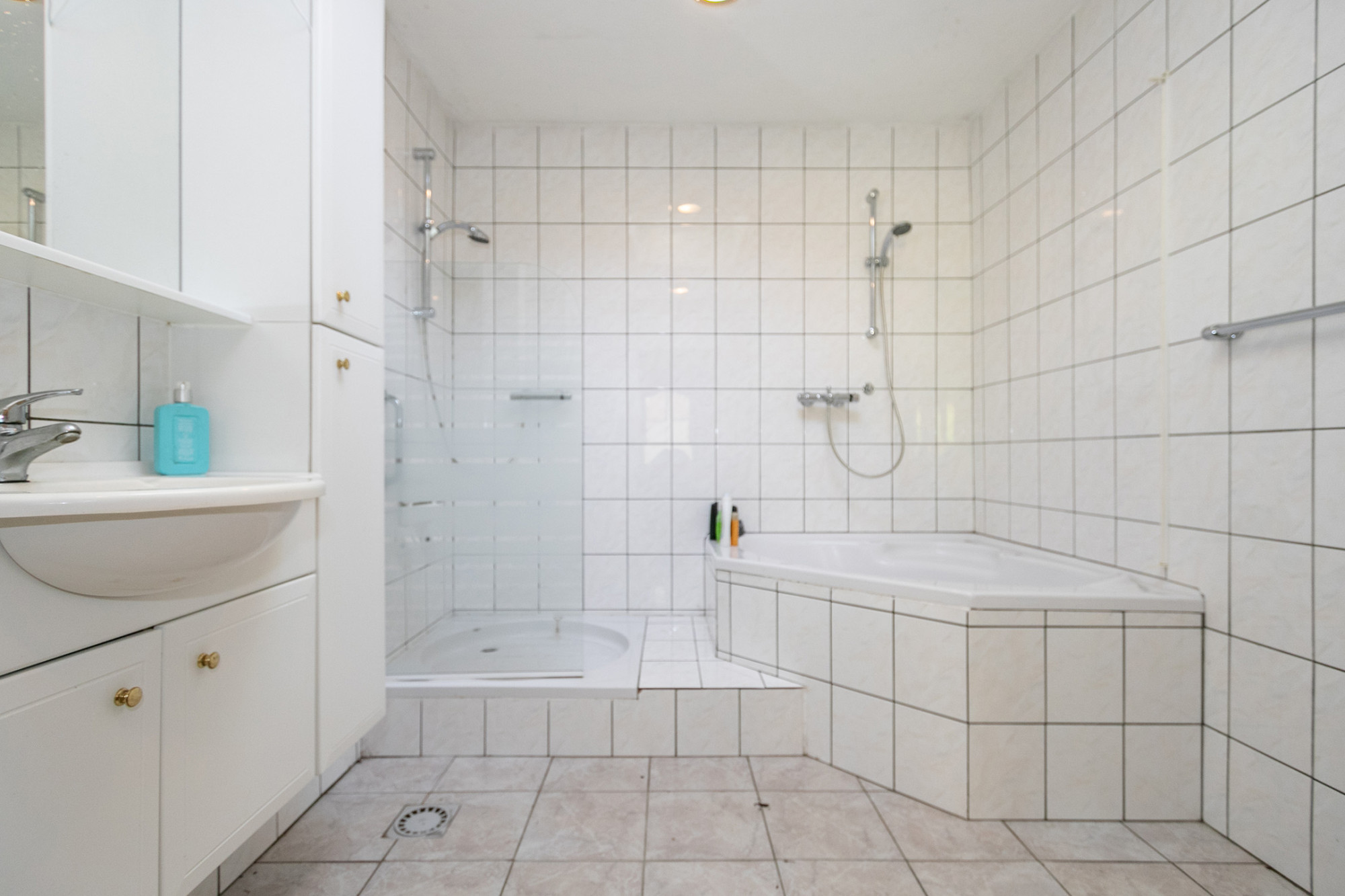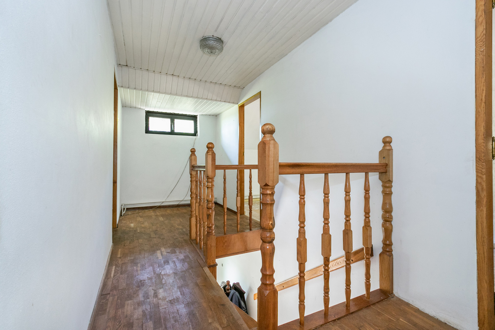 De eerste verdieping herbergt aan de grote overloop liefst vier grote slaapkamers en een compacte badkamer. Meer dan voldoende ruimte voor een gezin.