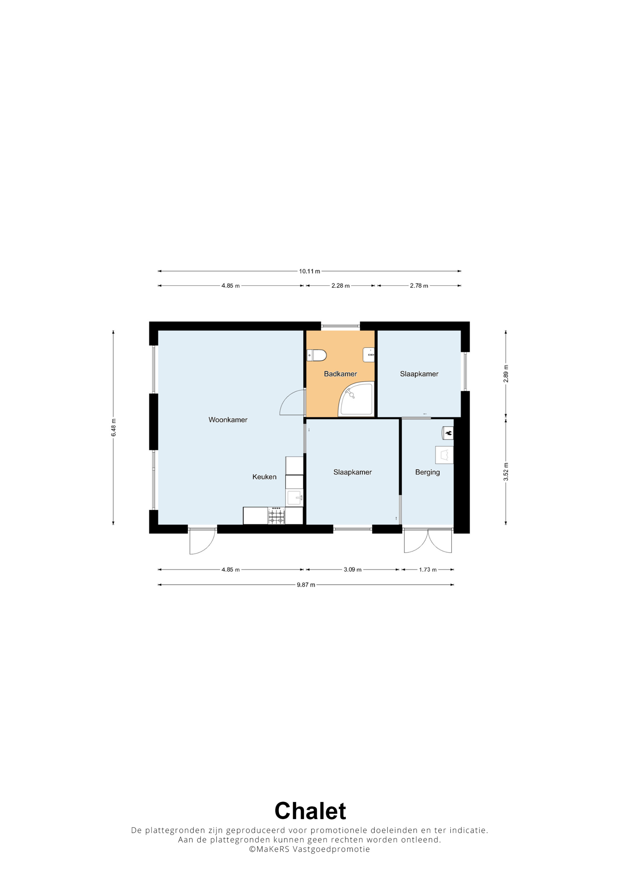 Zuidelijk op dit parkperceel staat een chalet van circa 65 vierkante meter bruto waarin men kan vertoeven voor weekendjes weg of korte vakanties. Dit chalet beschikt over een eigen tuin. Ook voor eventuele gasten die op visite komen is dit chalet geschikt te noemen.