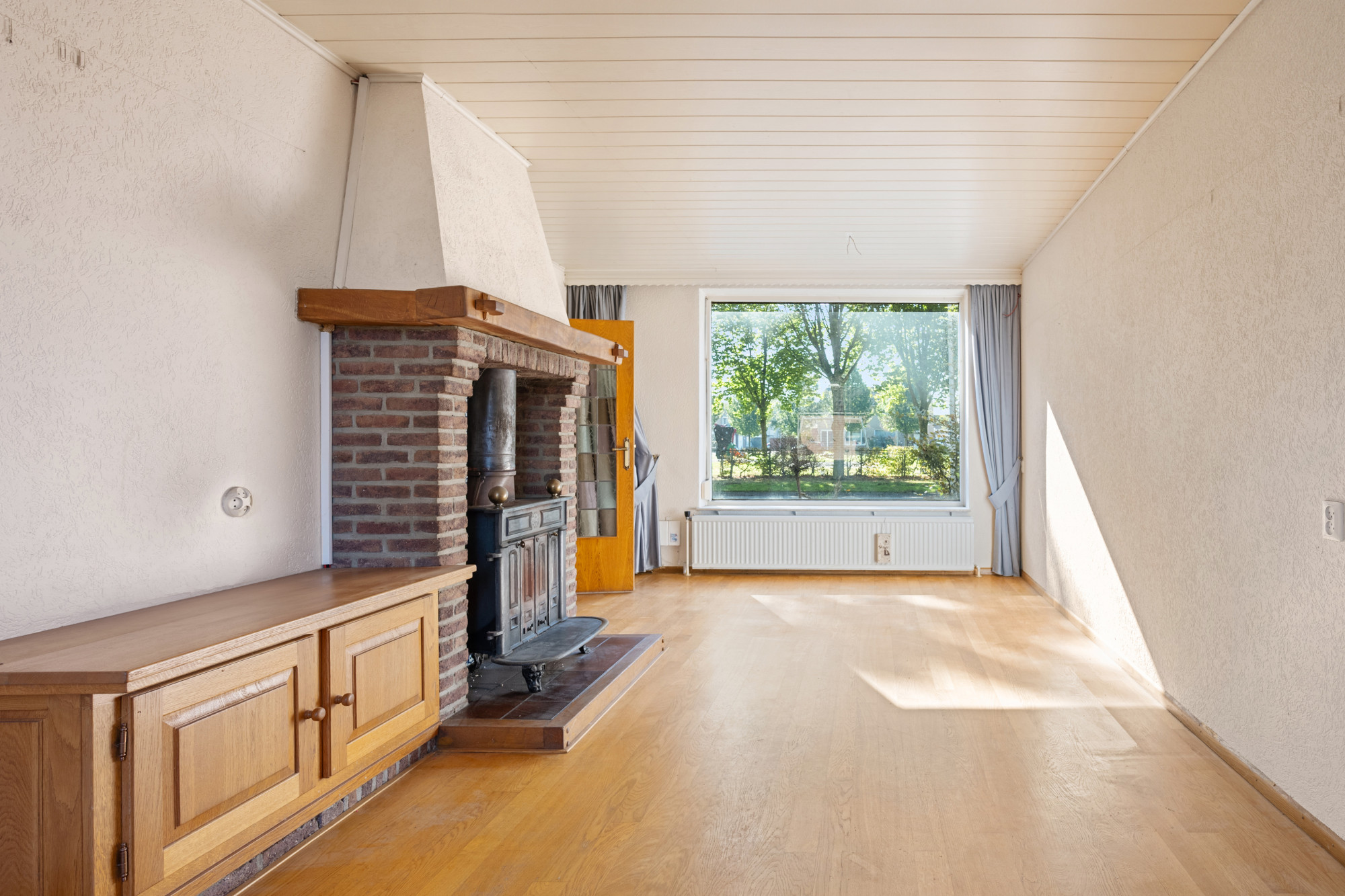 Via de entree/hal heeft u toegang tot de ruime living, meterkast, de trap naar de verdieping en de toegang tot de keuken. Ook is hier plaats voor een mooie garderobe. De living, welke zeer licht te noemen is, is tevens voorzien van een sfeervolle houthaard aanwezig. De keuken is v.v. een eenvoudige keukeninstallatie en heeft tevens een loopdeur naar de bijkeuken en garage.
