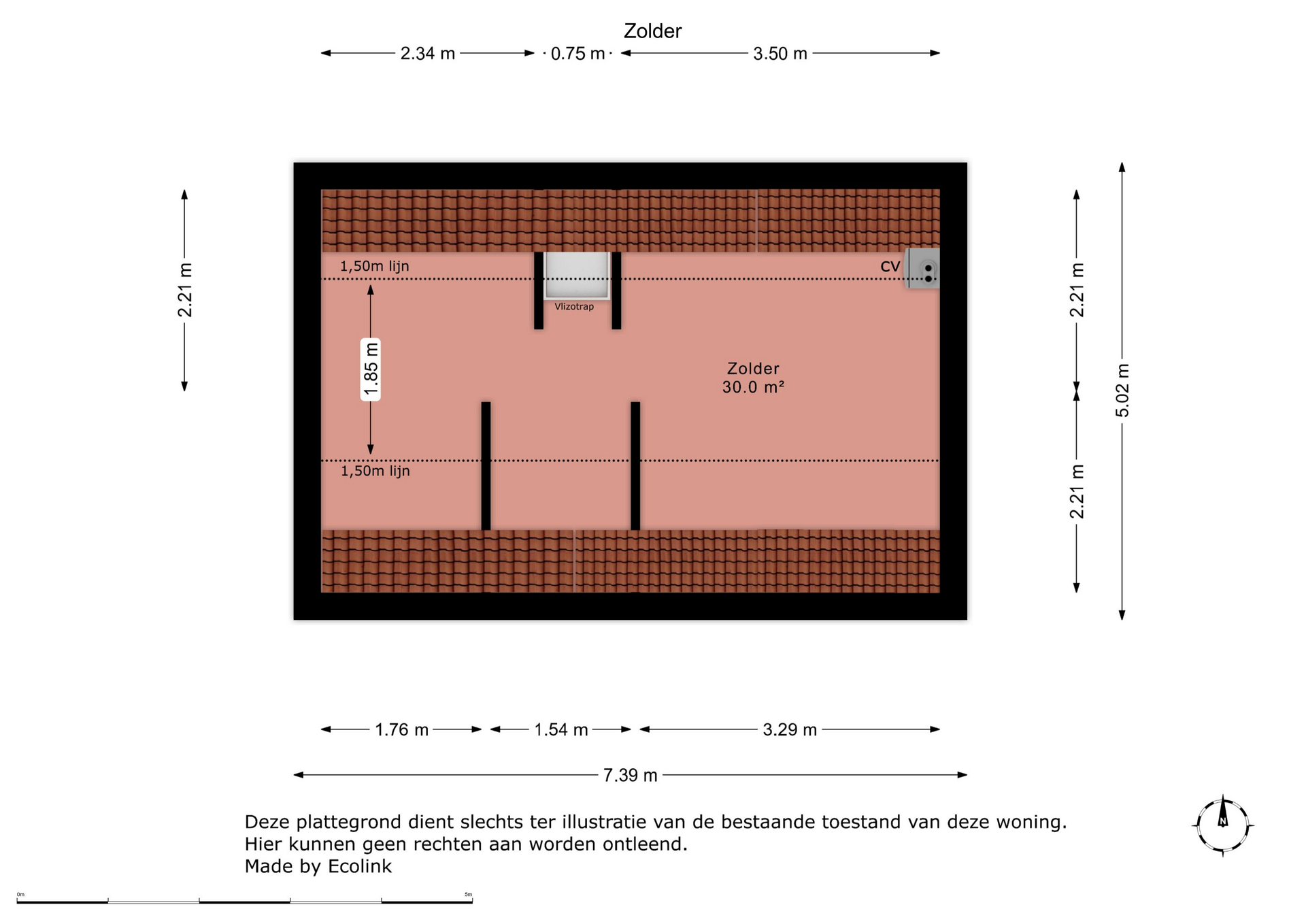 De middels een vlizotrap bereikbare zolderruimte, waar ook de cv-installatie is geplaatst.
