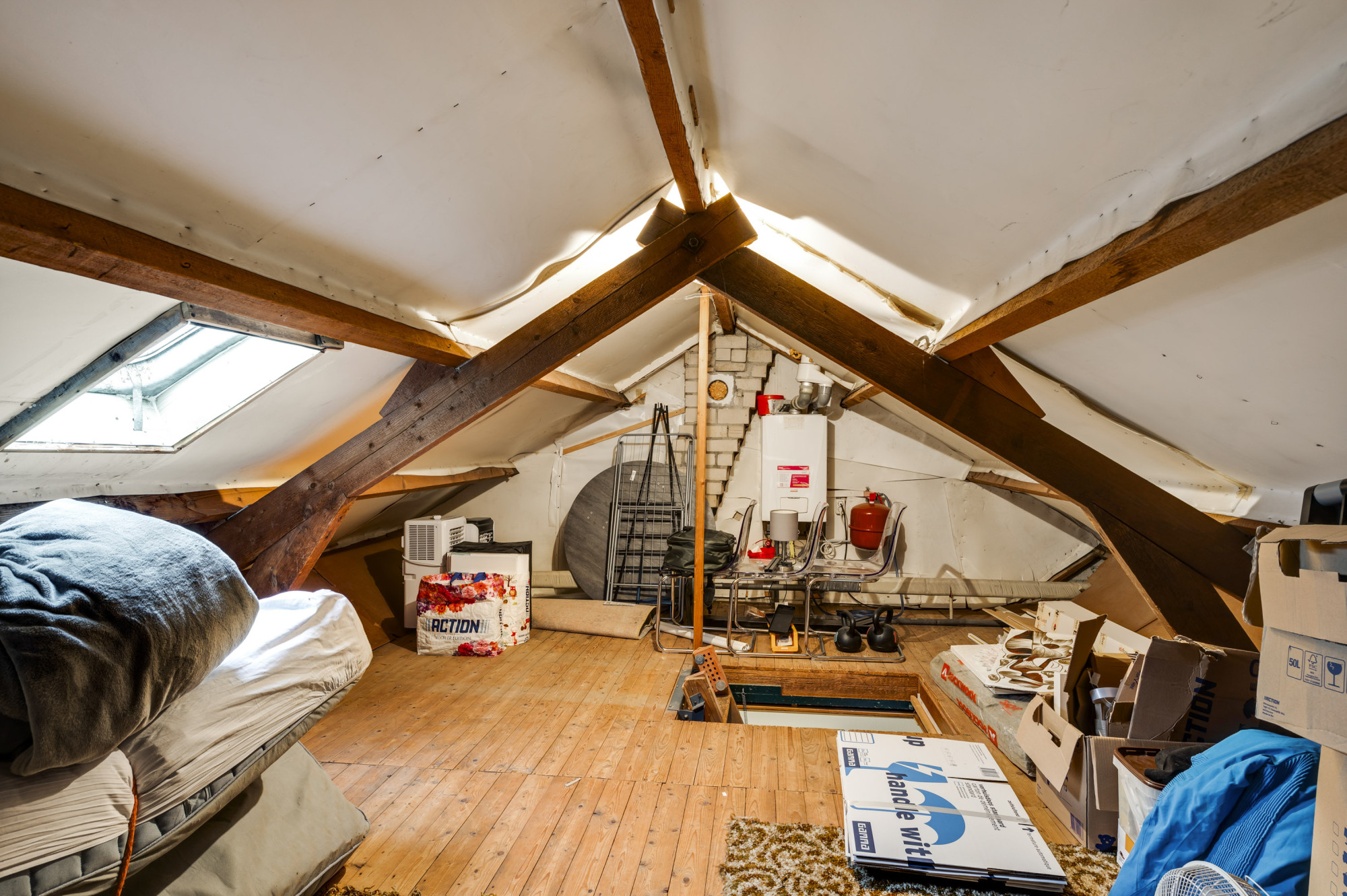 Via een vlizotrap bereikt u de zolderberging, ideaal voor extra opslag. Hier bevindt zich tevens de opstelling van de cv-ketel (AWB HR, eigendom, ca. 2003).