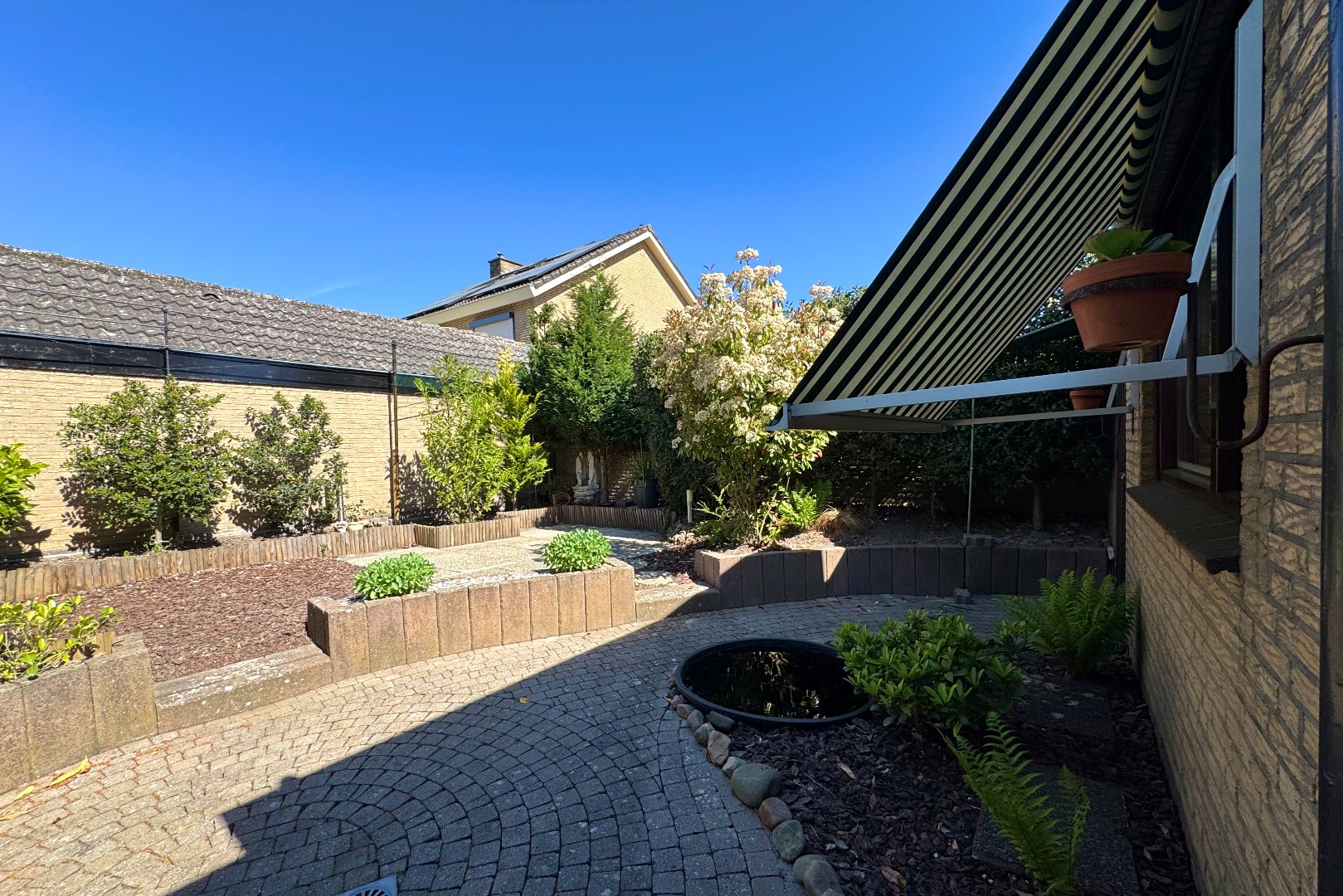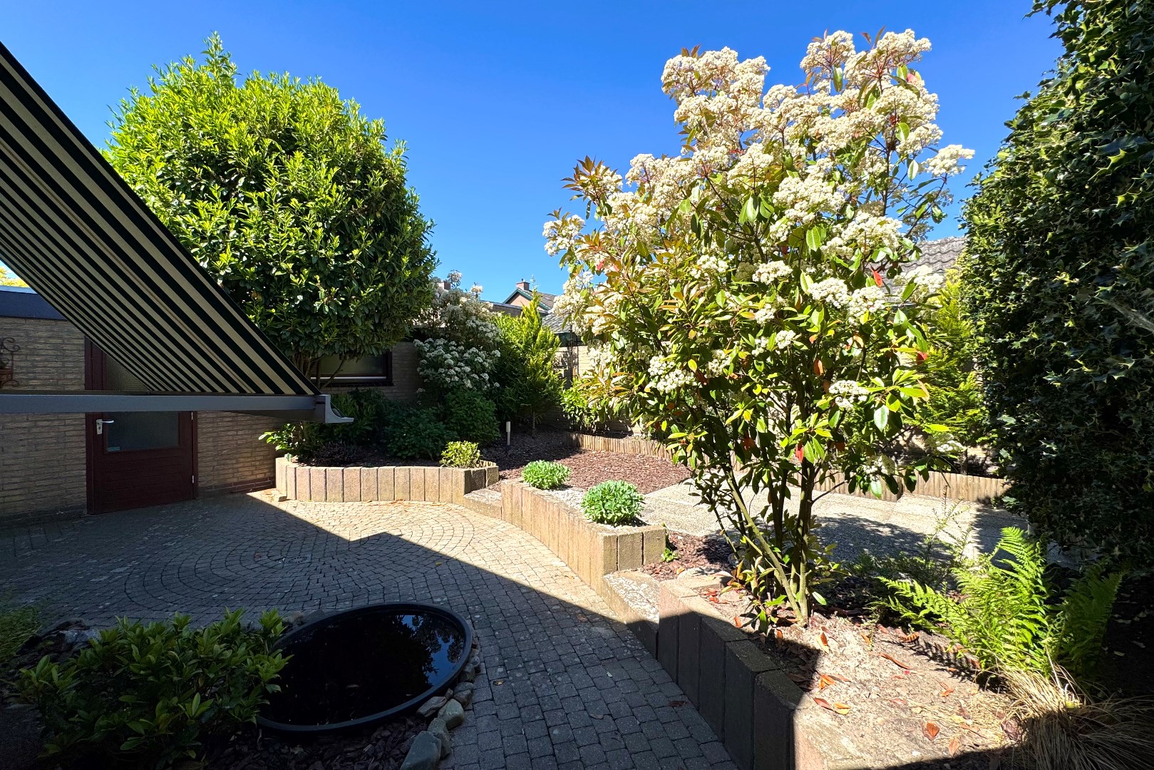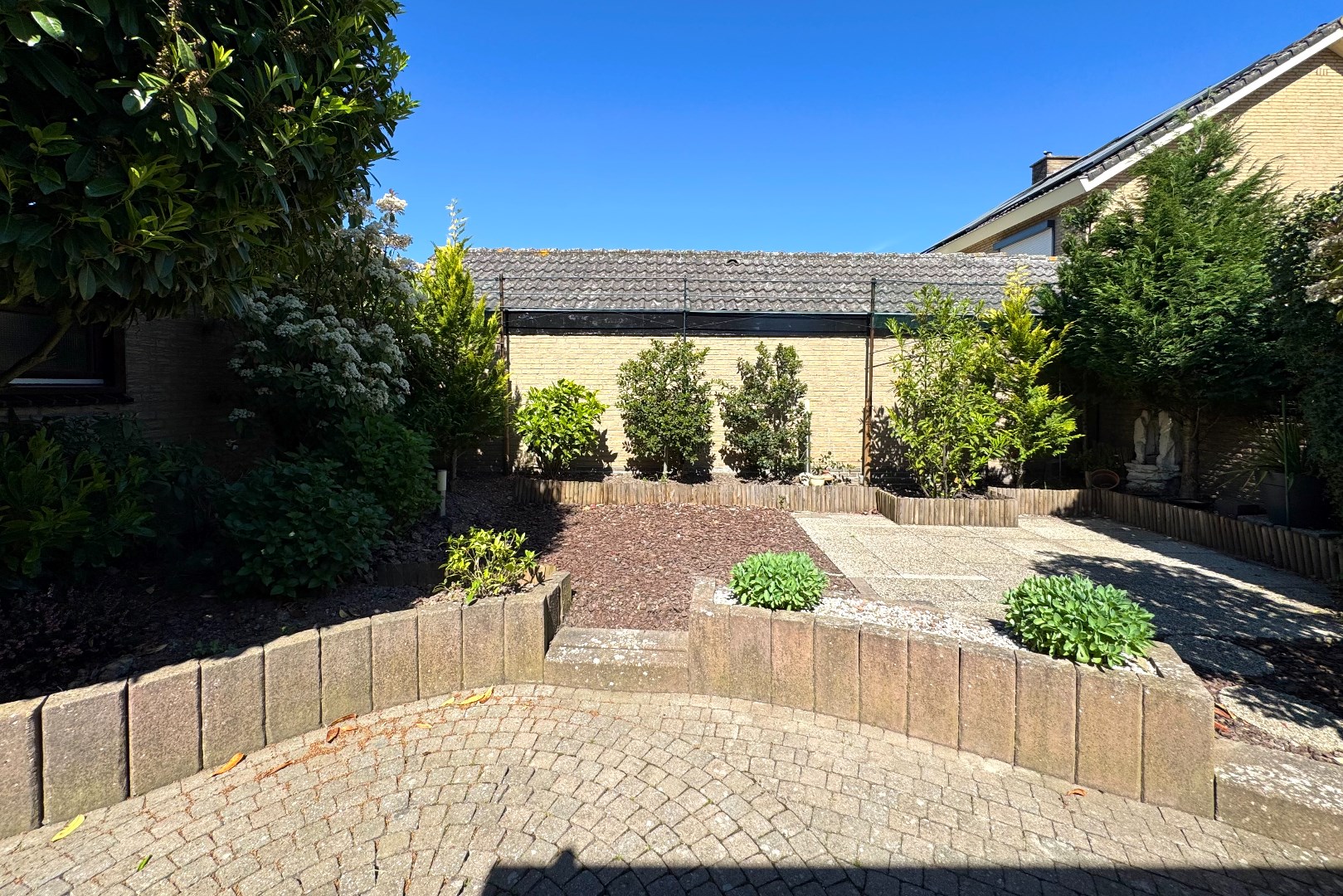 De achtergelegen tuin, die gesitueerd is op het noordwesten, biedt veel privacy. In deze tuin zijn o.a. een terras en borders aanwezig. Tevens is er ook een achterom en bereikt men via de tuin de garage.
