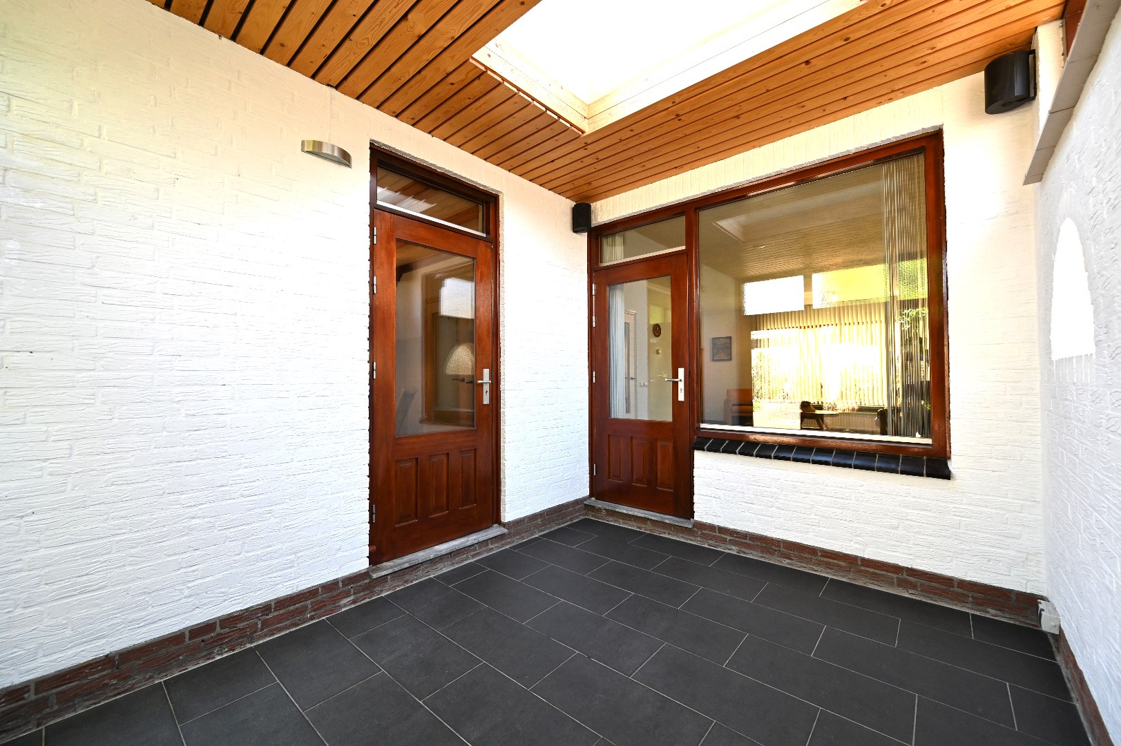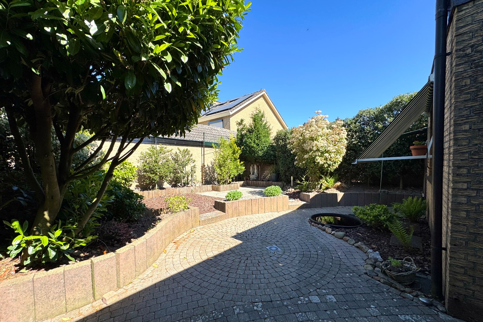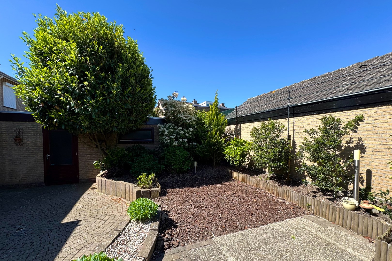 De achtergelegen tuin, die gesitueerd is op het noordwesten, biedt veel privacy. In deze tuin zijn o.a. een terras en borders aanwezig. Tevens is er ook een achterom en bereikt men via de tuin de garage.