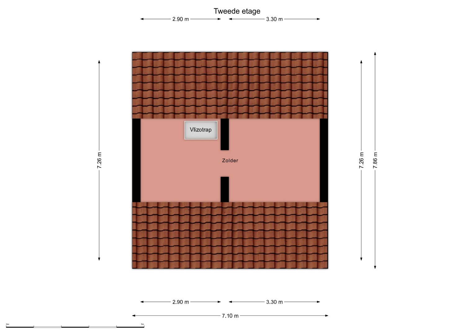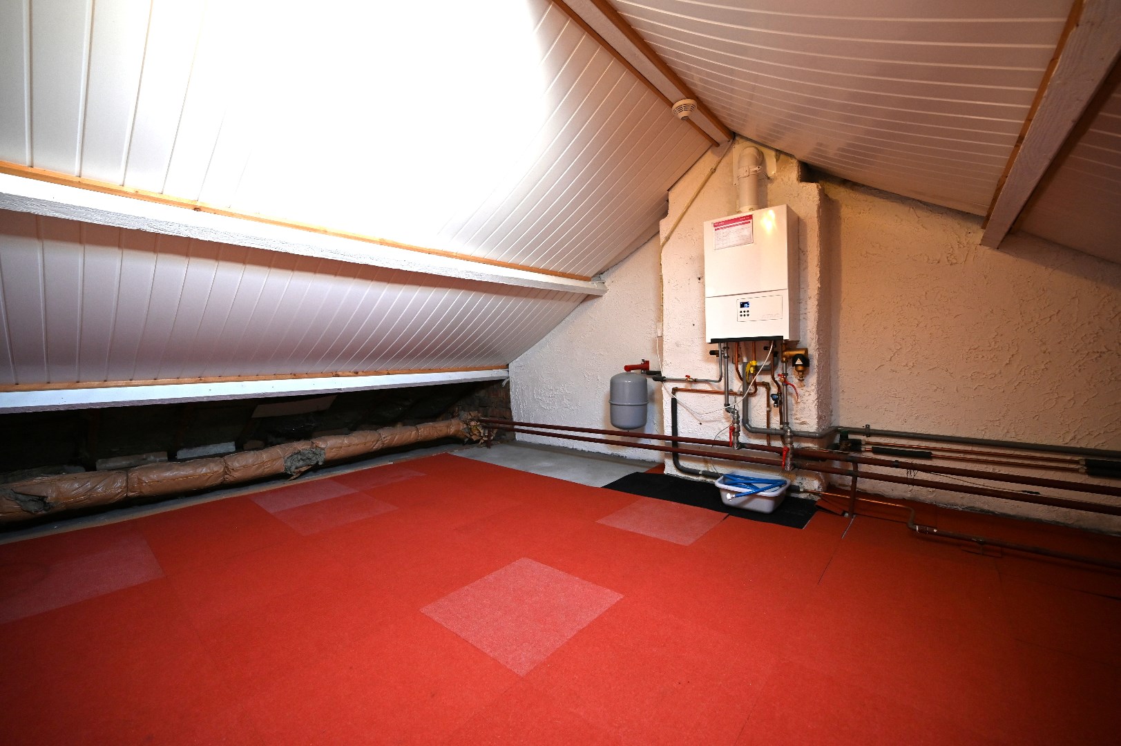 Via de trapopgang is de bergzolder te bereiken. Deze bergzolder (gemeten vanaf 1.50m hoogte: 6.45m x 2.32m) is voorzien van een dakraam (klein) en hier bevindt zich de standplaats van de cv-installatie.