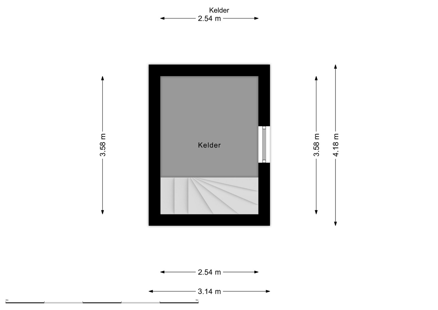 Via de hal/entree bereikt men de provisiekelder (3.58m x 2.54m). Hier bevinden zich o.a. de witgoedaansluitingen en de toegang tot de kruipruimte.