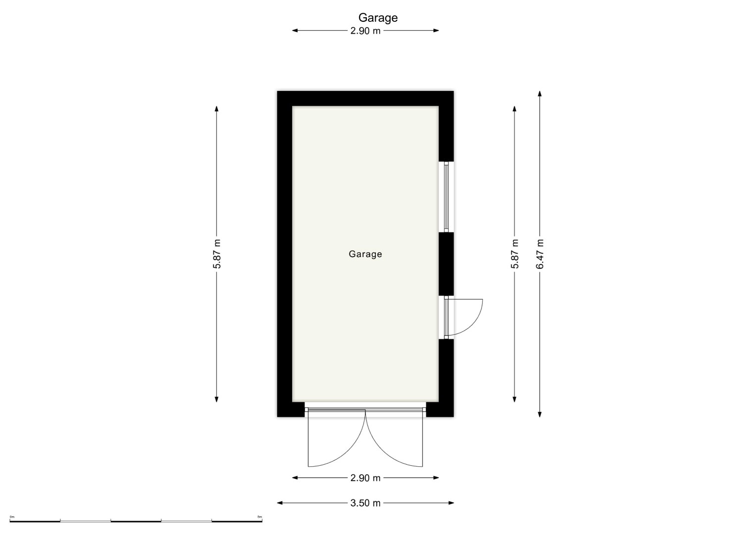 De extern te bereiken garage (5.87m x 2.91m) is afgewerkt met een tegelvloer en beschikt over een openslaande poort met voorgelegen oprit.