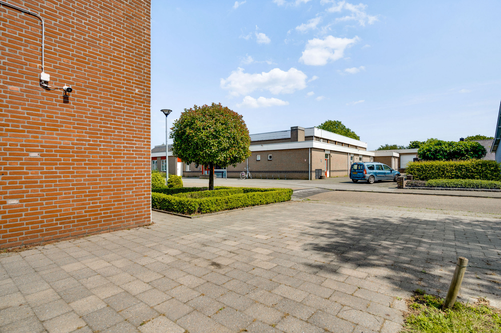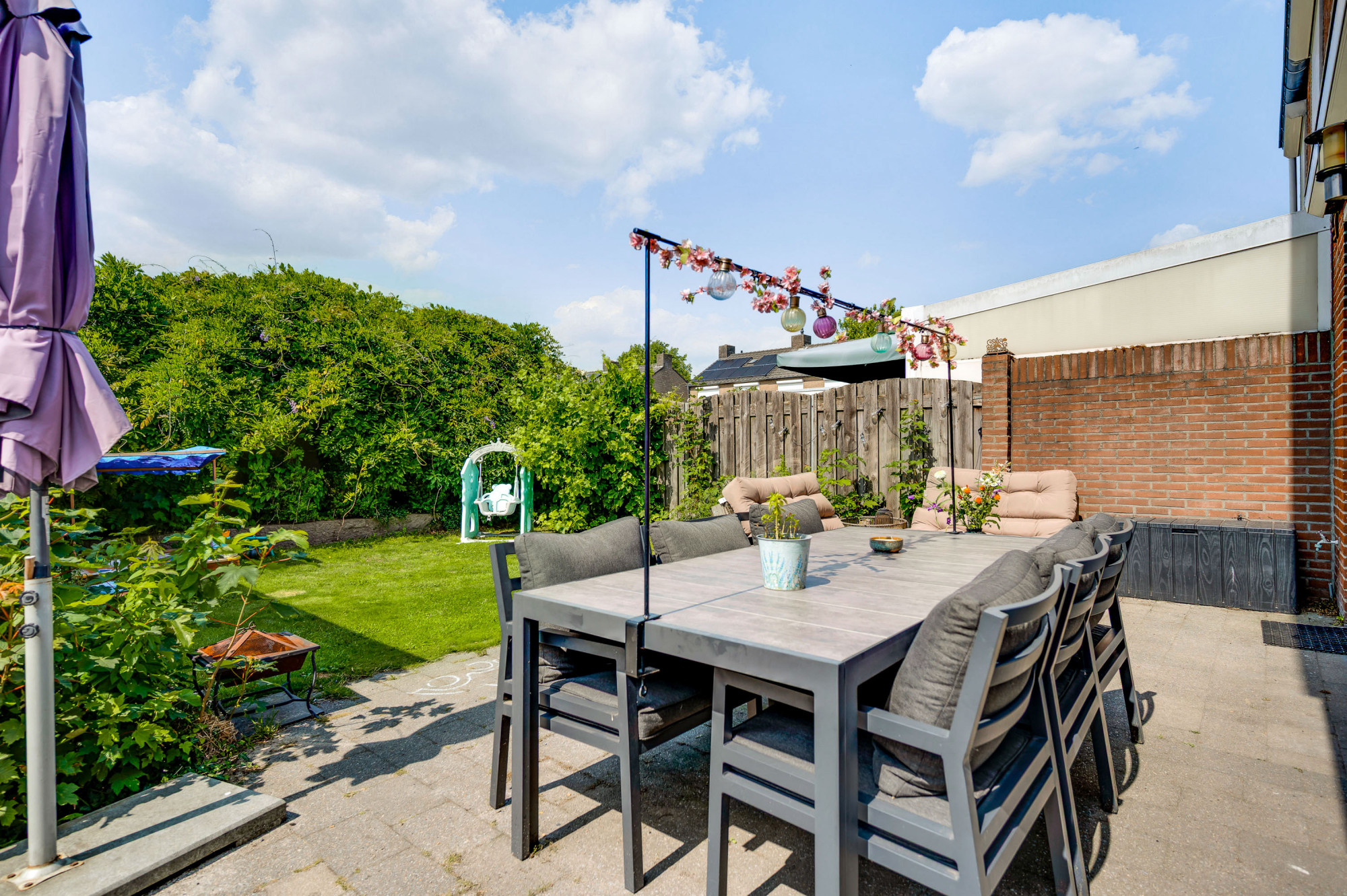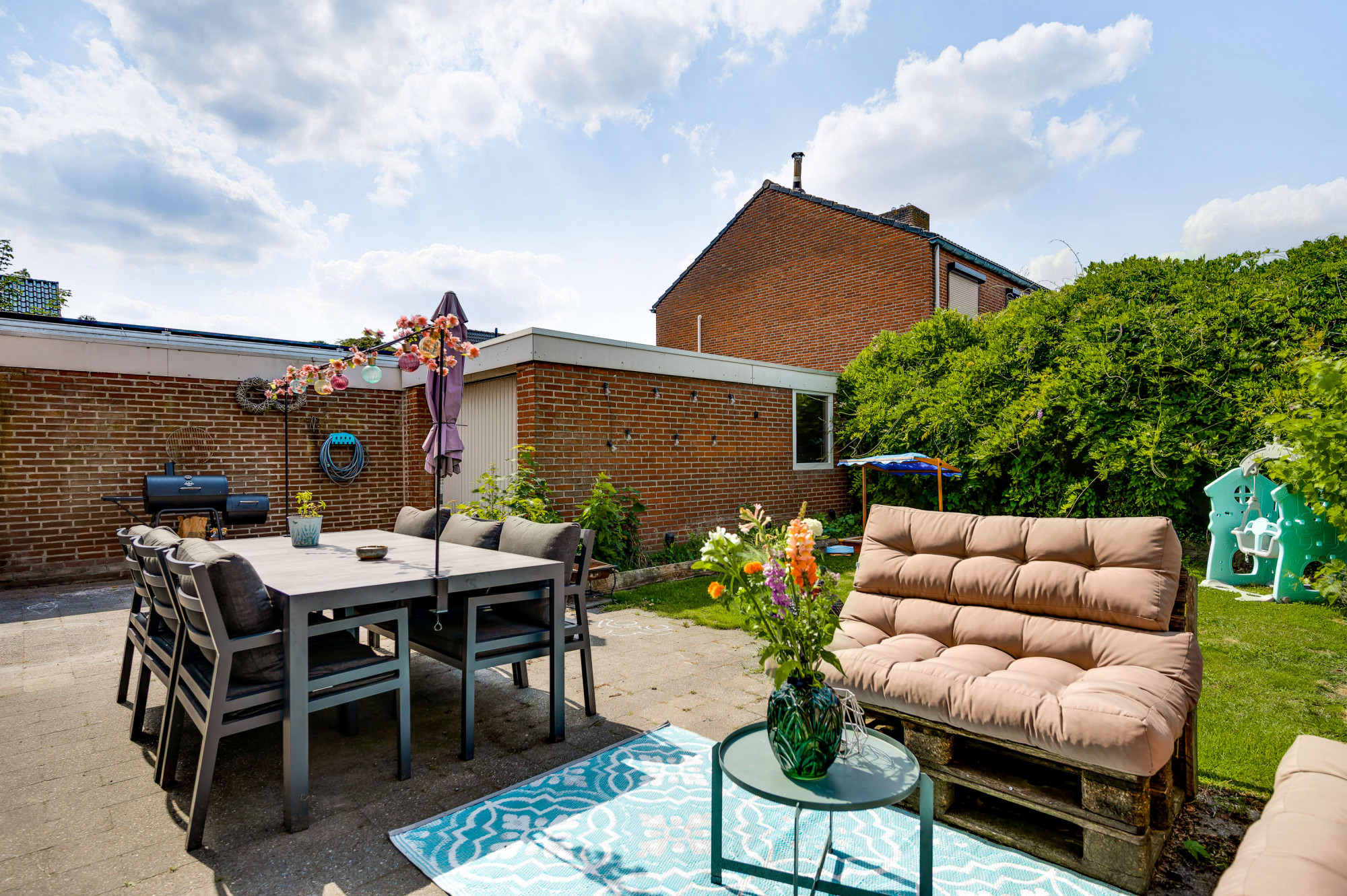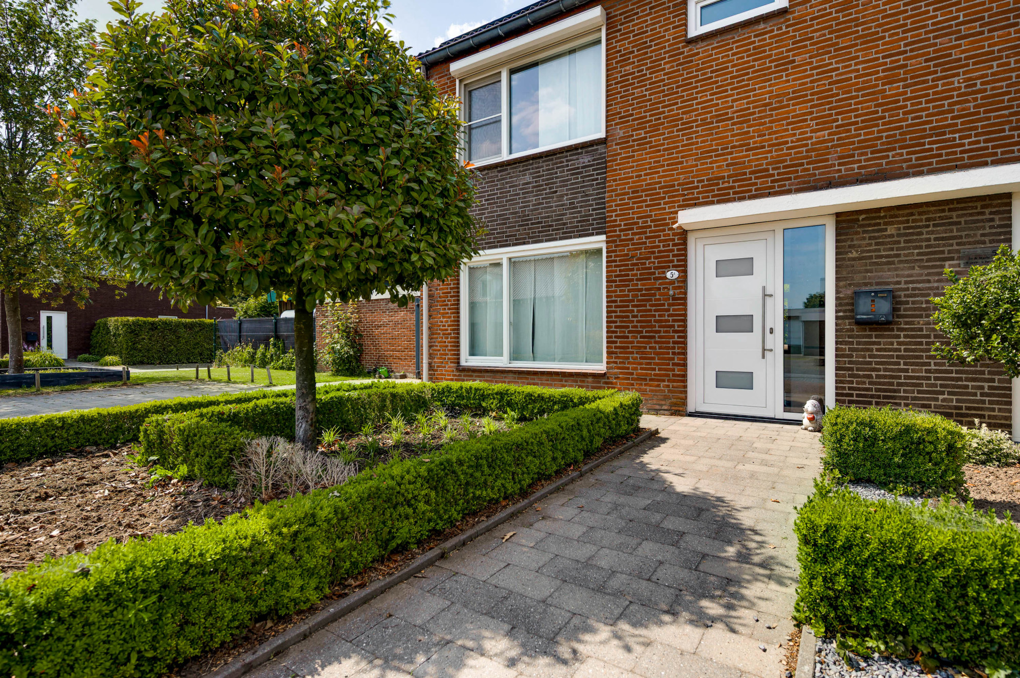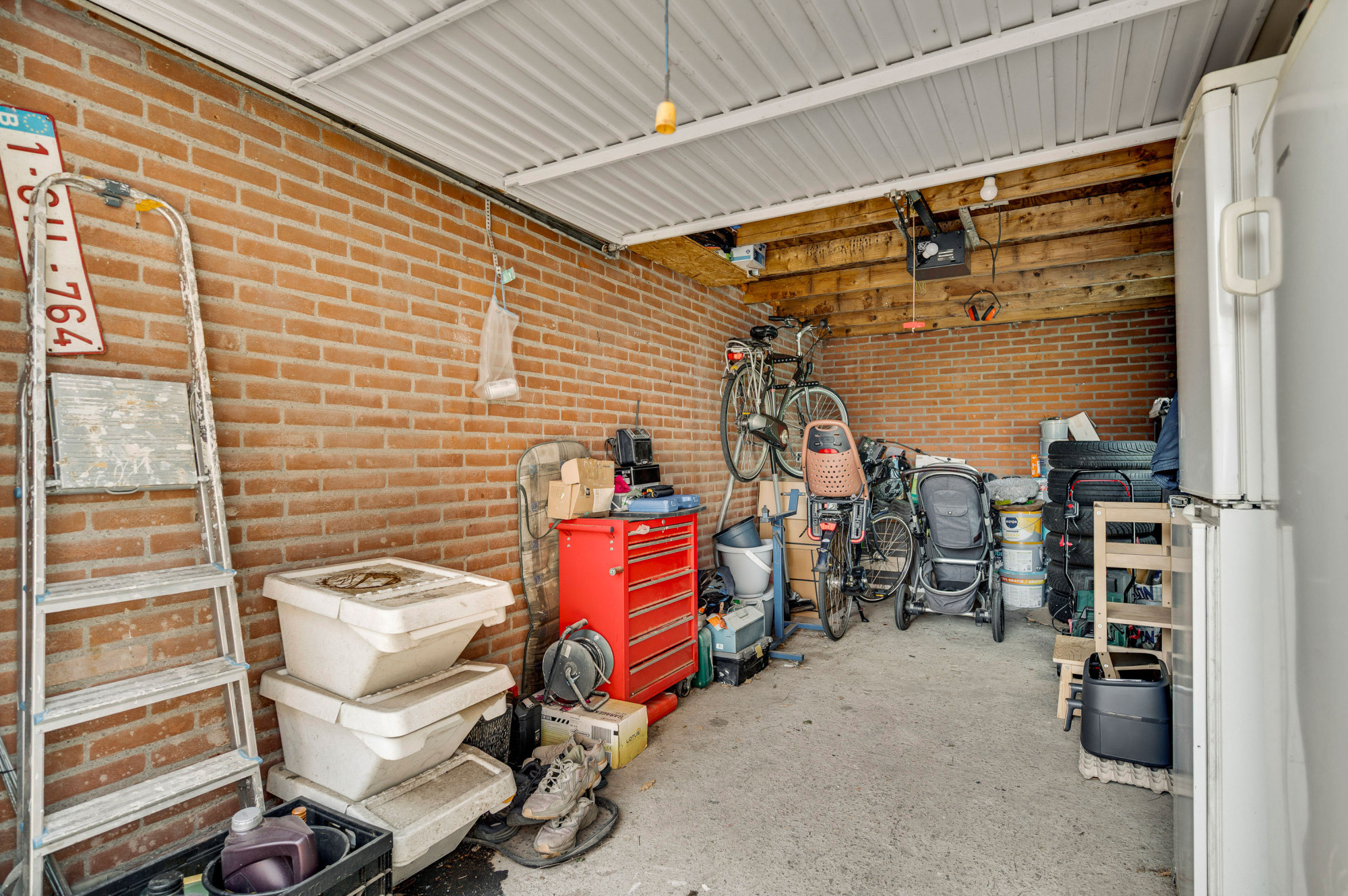 De woning beschikt over een verzorgde voortuin en een royale, brede oprit met plaats voor meerdere auto’s, met daarnaast een vrije achterom. Het perceel naast de oprit hoort er zelfs geheel bij. De fraai aangelegde en zonnige achtertuin biedt volop privacy en is ingericht met een terras, sierbestrating, gazon en borders. Een elektrisch zonnescherm zorgt voor beschutting op zonnige dagen. De vrijstaande garage is voorzien van een elektrische poort en een loopdeur naar de tuin.
