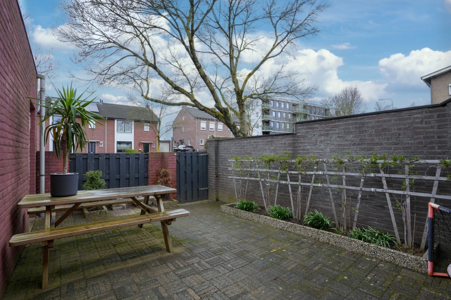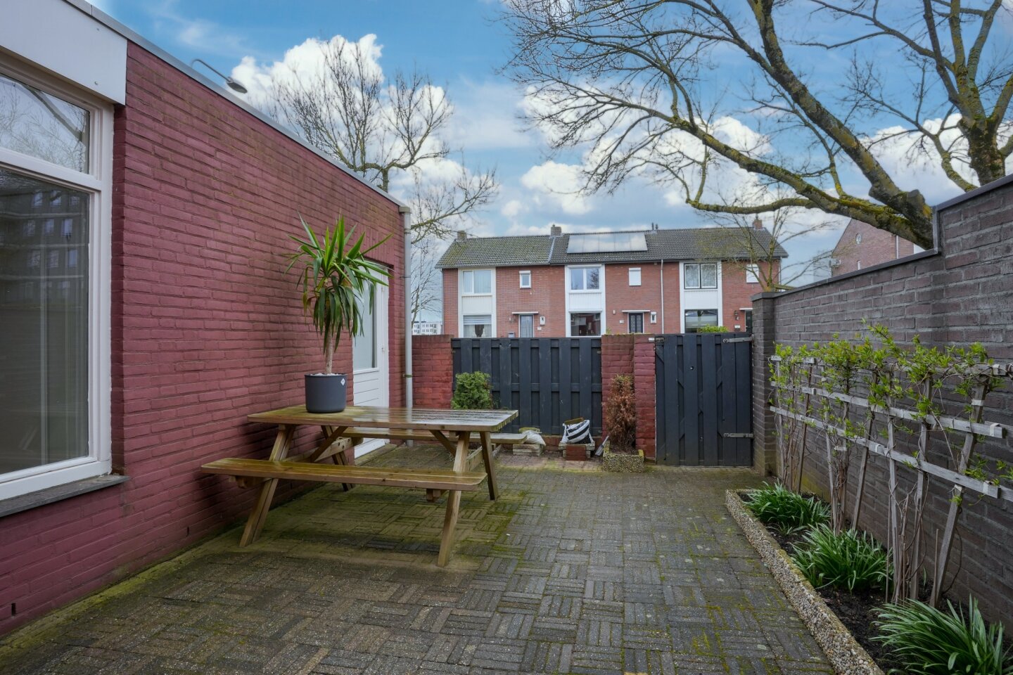 Patio (voortuin) geheel beklinkerd.