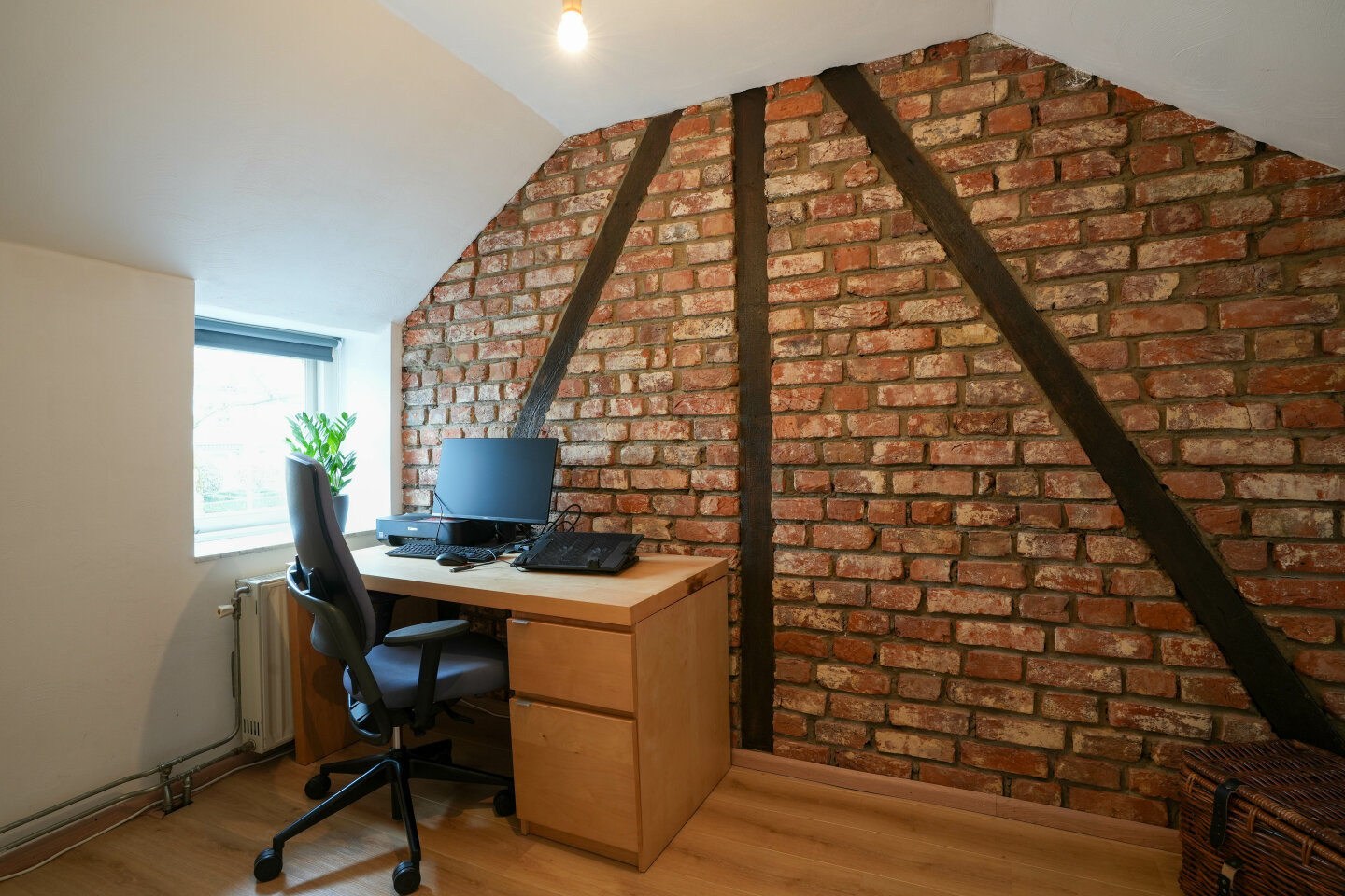 Overloop met toegang tot 2 slaapkamers beiden voorzien van laminaatvloer.