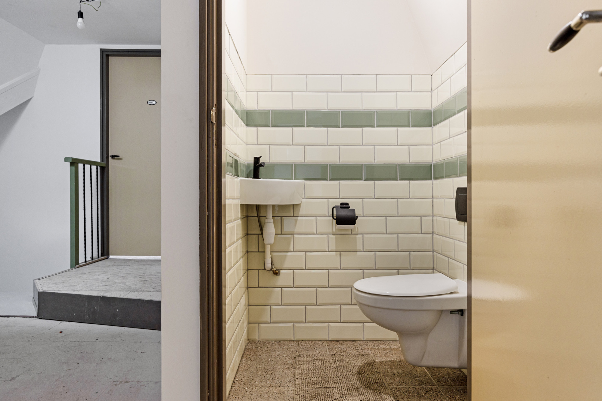 Ruime overloop met lichtkoepel, techniekruimte alwaar CV installatie en warmwater boiler (eventueel eenvoudig om te bouwen tot gasloos verwarmen middels warmte pomp). Separate deels betegelde toiletruimte voorzien van wandcloset en fonteintje.