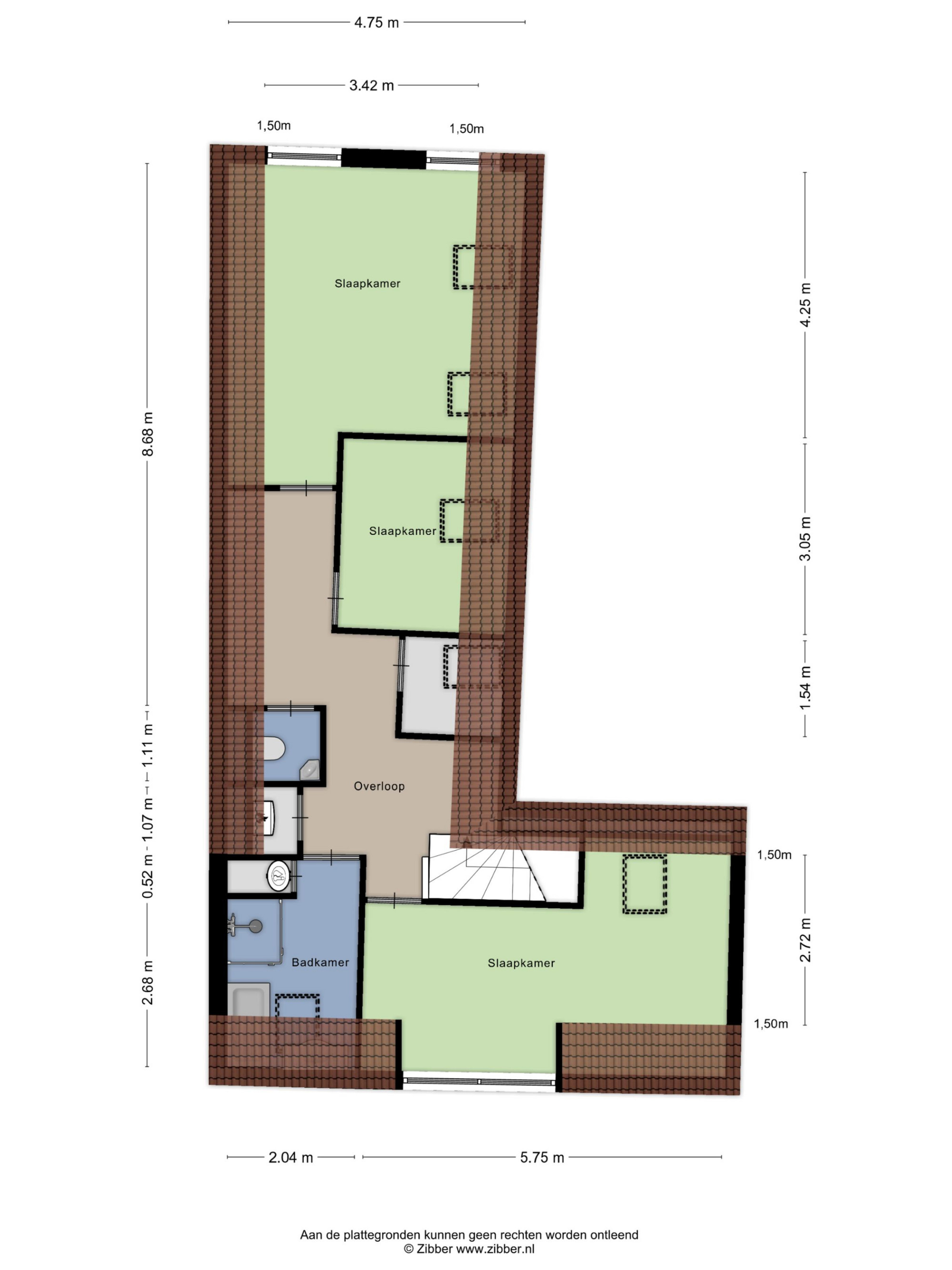 Slaapkamer 2 ( 5.75 x 2.72 m) met dakkapel/