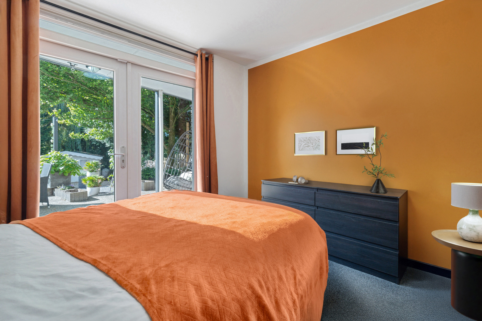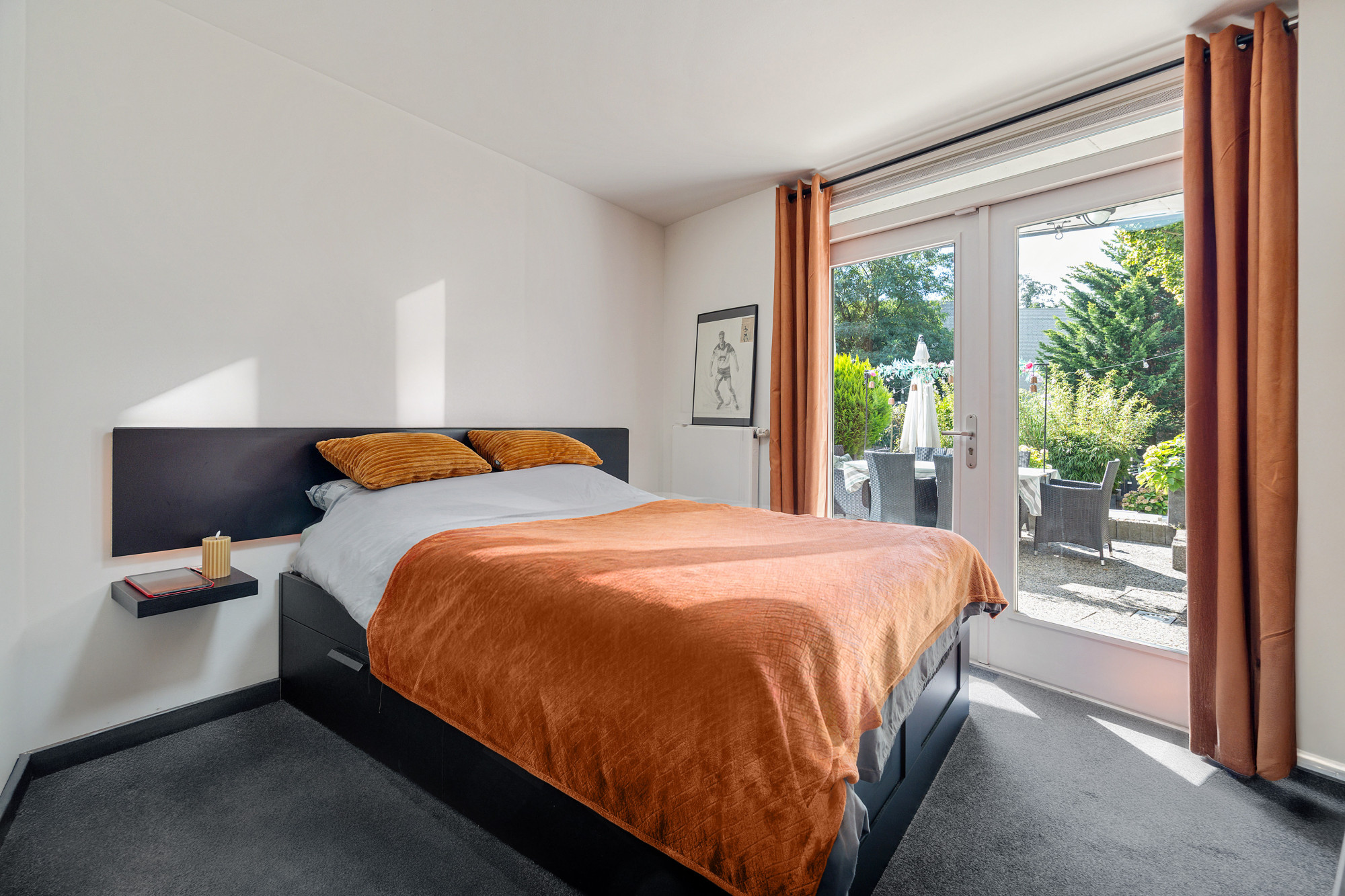 De achtertuin is royaal, geheel omsloten en biedt volop mogelijkheden. Er is een groot terras met overkapping, een tuinhuis en een brede poort. De tuin is grotendeels betegeld, wat onderhoudsvriendelijk is en ruimte laat voor diverse invullingen. Vanuit de tuin bereikt u bovendien de garage, voorzien van sectionaalpoort.
