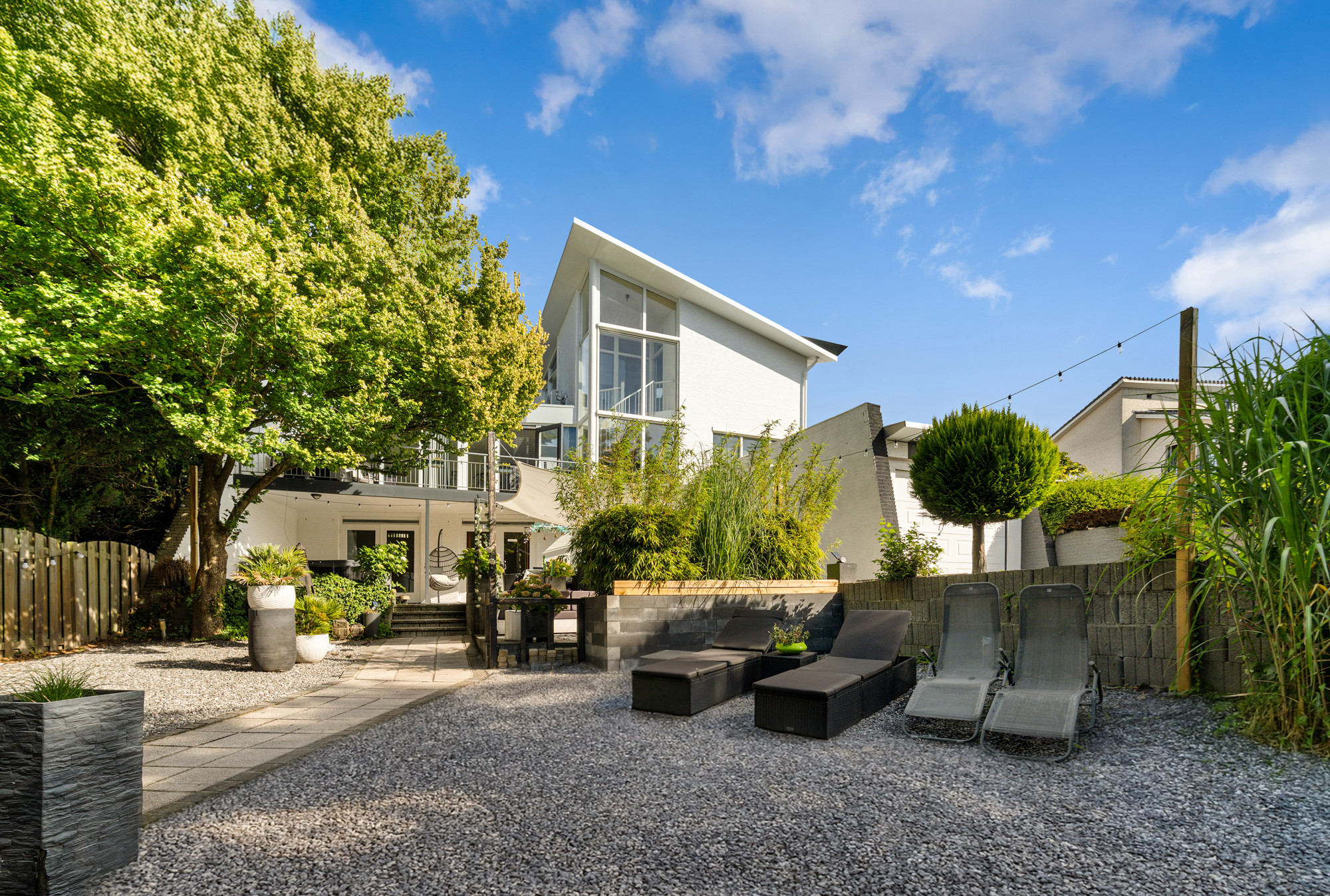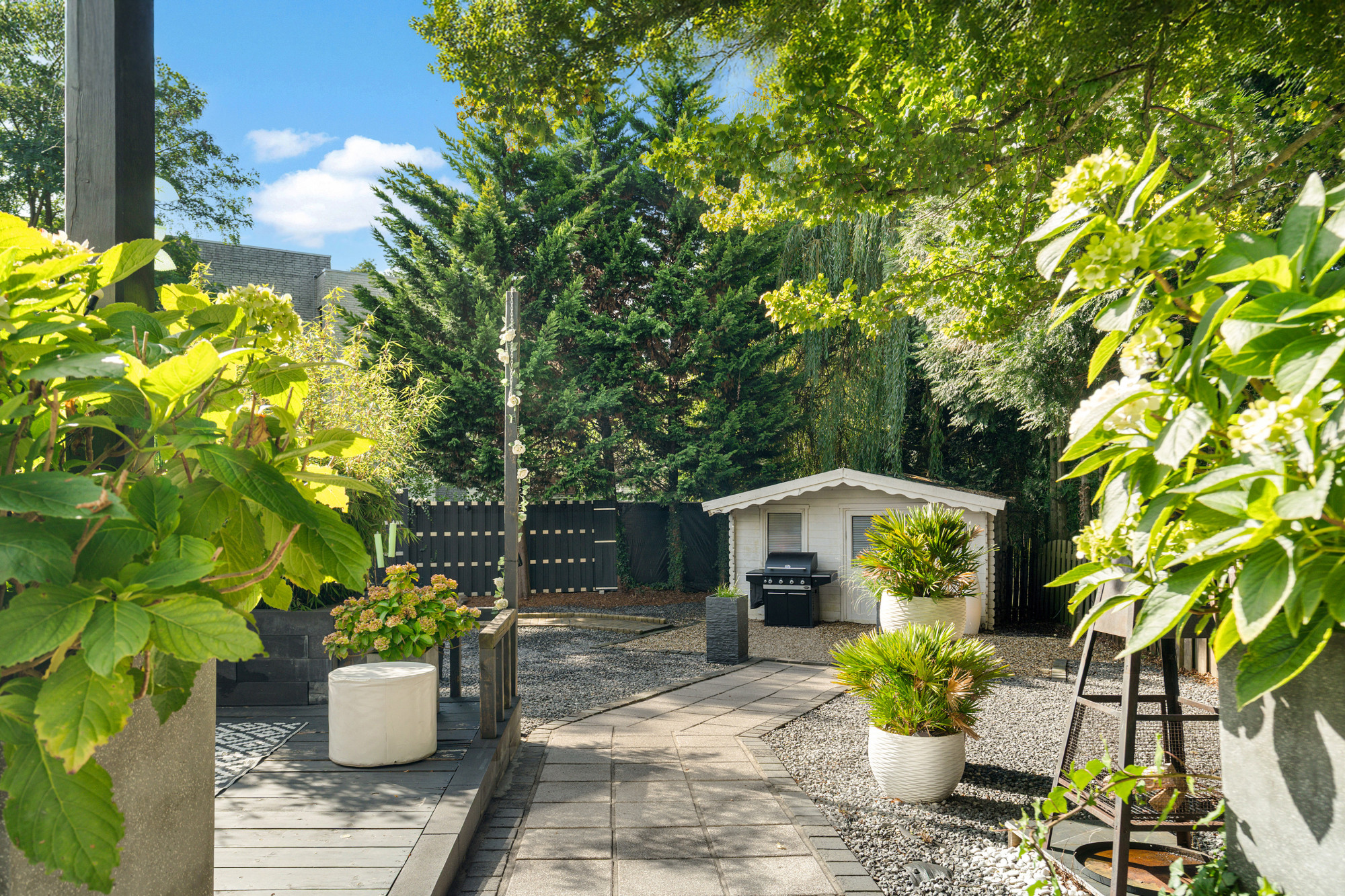 - Royale tuin met overkapping, tuinhuis en eigen garage;
