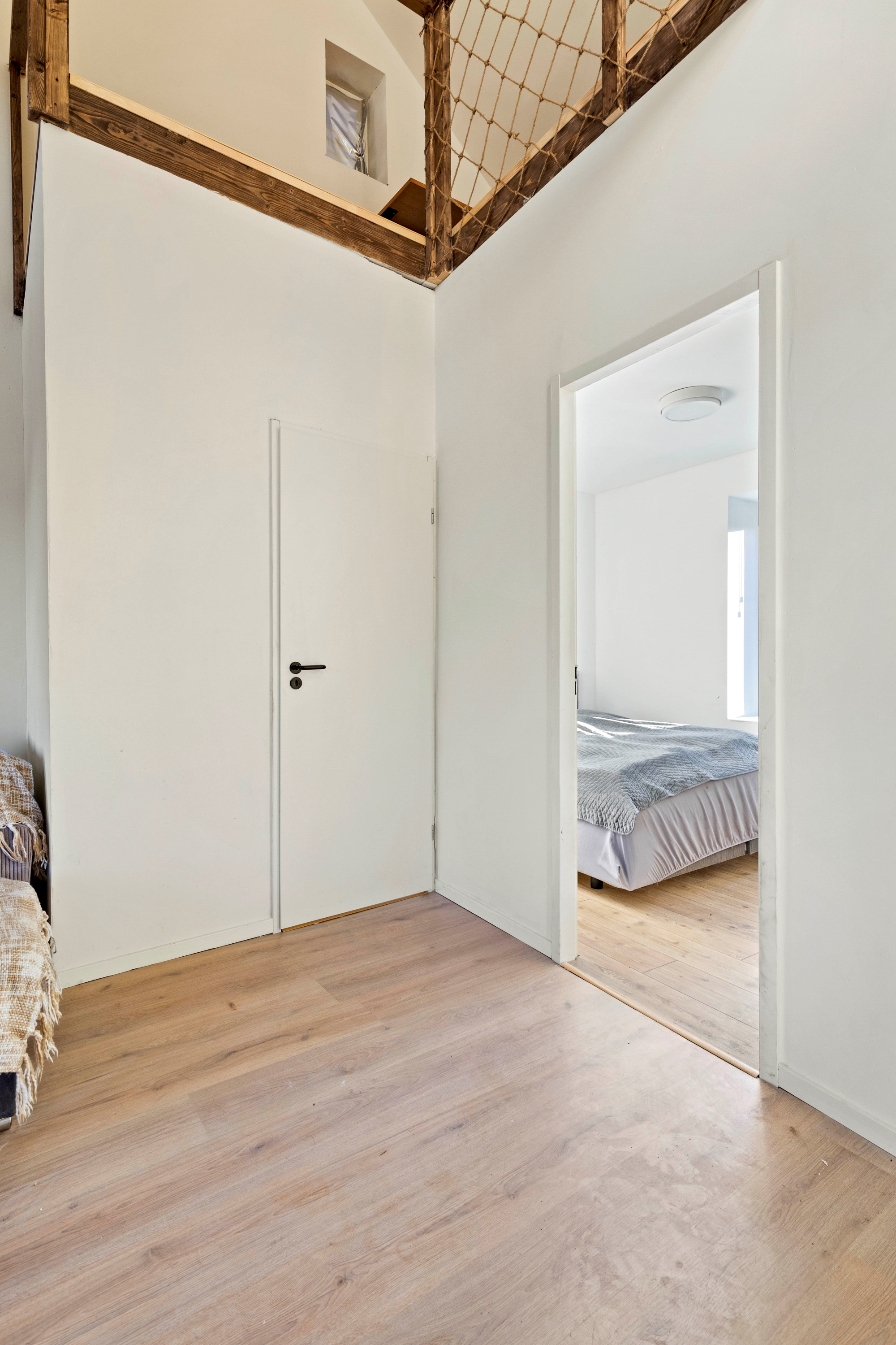 Via mooie spiltrap bereikbaar. Royale overloop met vide en fraai zicht op de eerste verdieping. Twee slaapkamers.