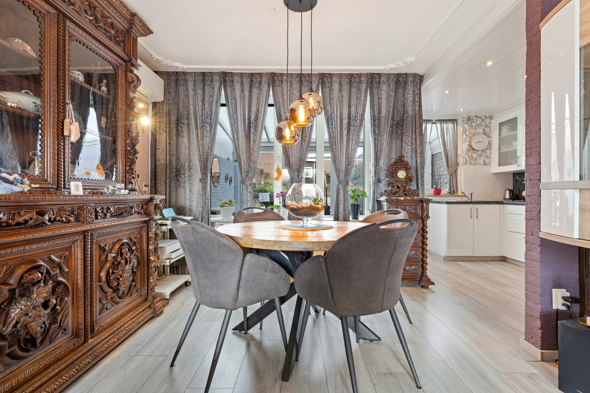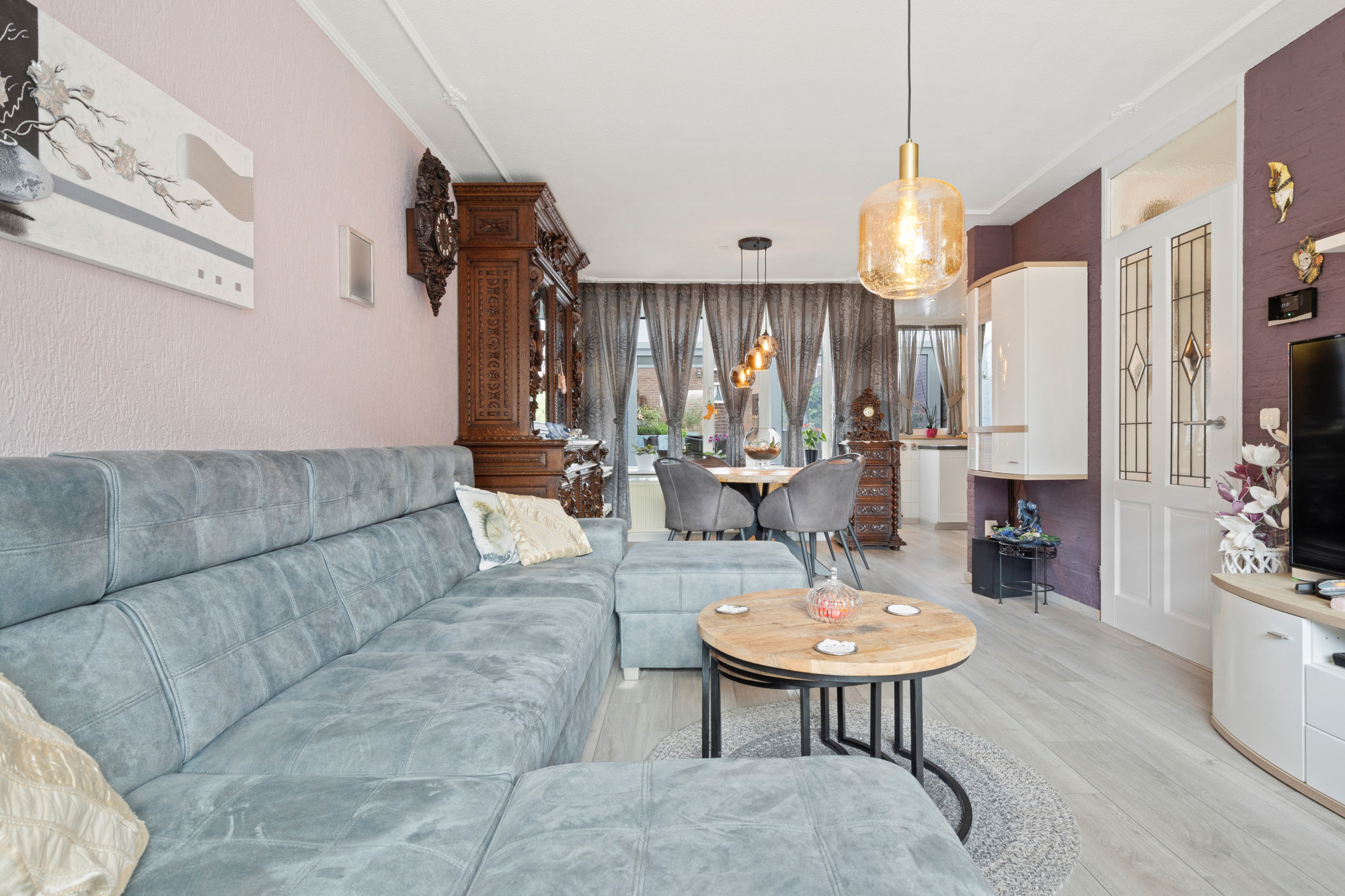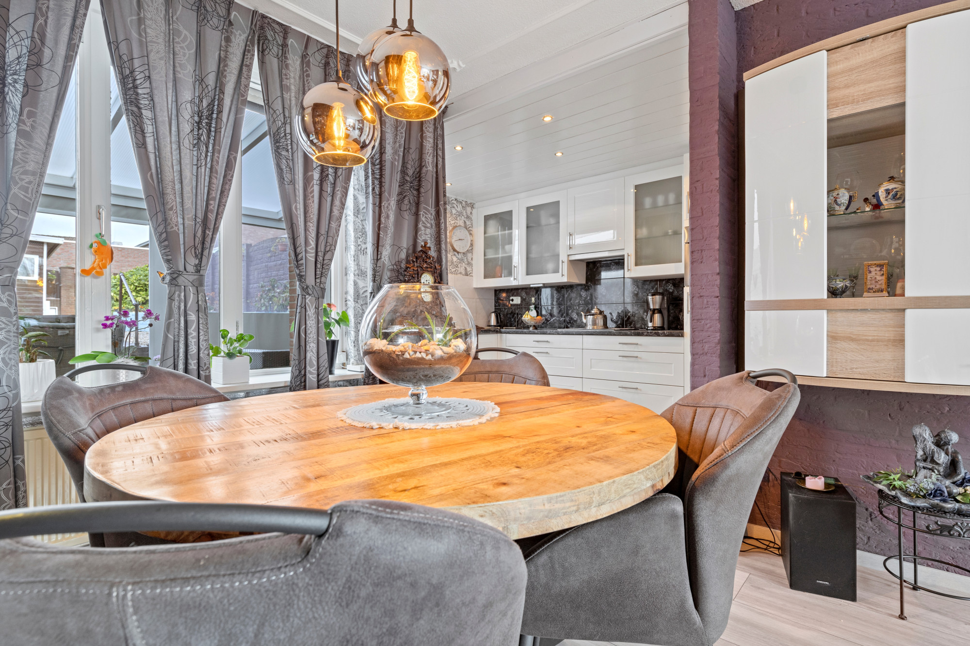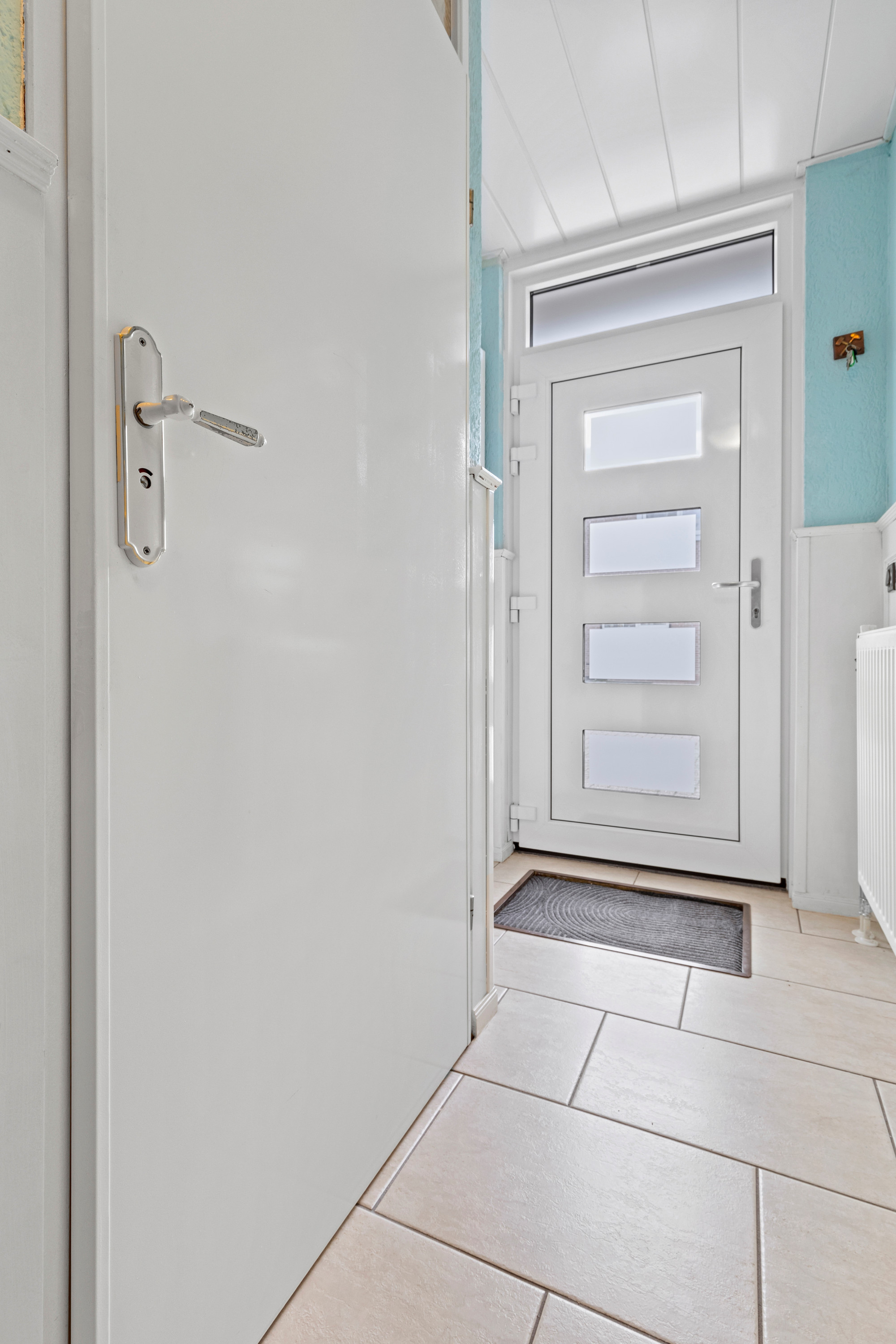 In rustige buurt, aan de rand van het groen gelegen keurig afgewerkt, gemoderniseerd en onderhouden eengezinswoning met ruime serre, stenen berging, extra aangrenzende houten tuinberging en achtertuin, welke ook vanuit de achterzijde te bereiken is".