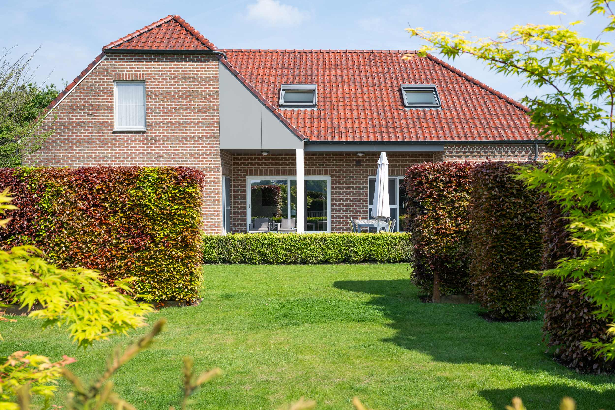 - U kan de tuin en het terras bereiken via het schuifraam in de leefruimtes en keuken