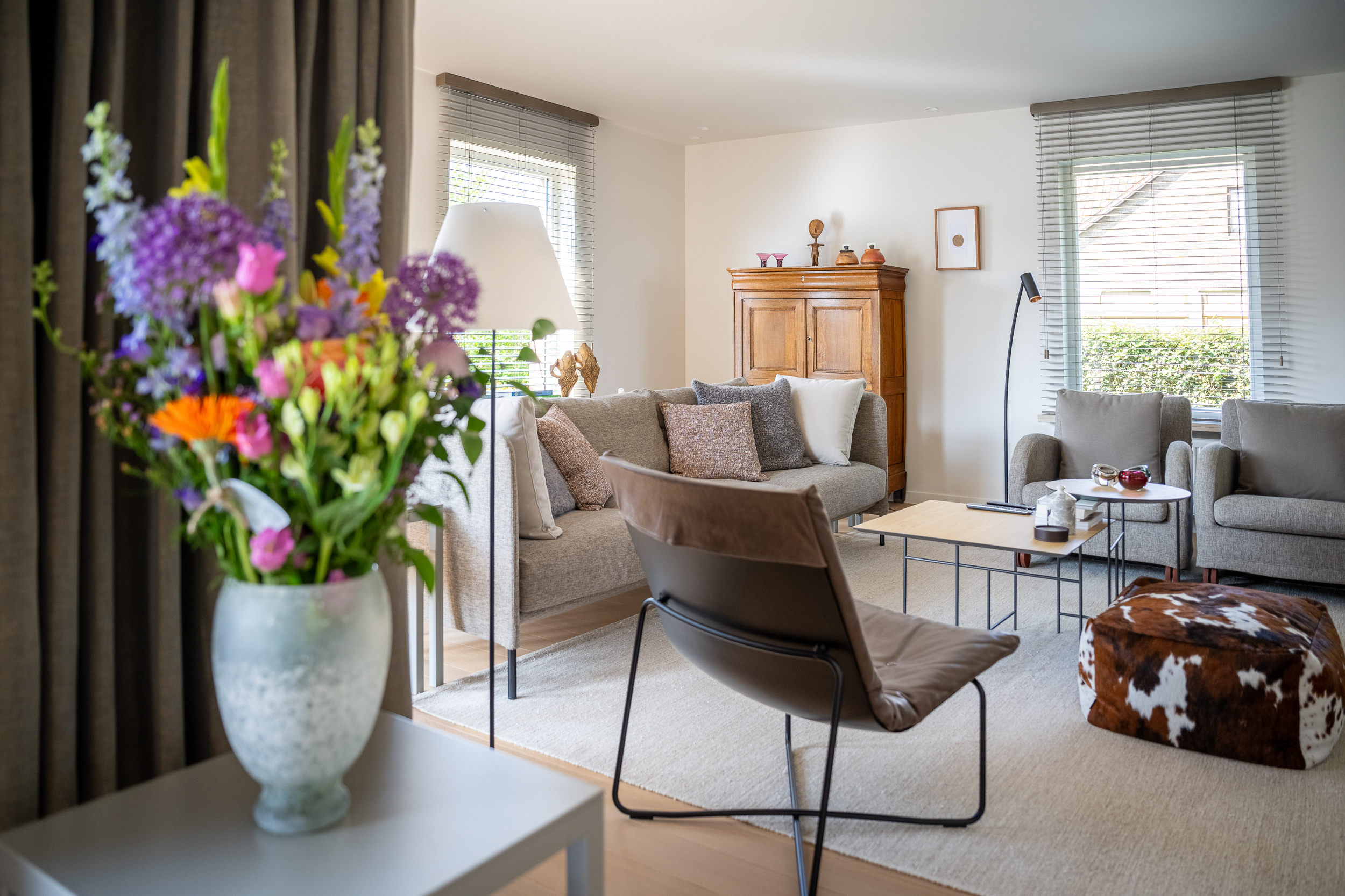 - Veel natuurlijk lichtinval door de grote raampartijen in de verschillende leefruimtes