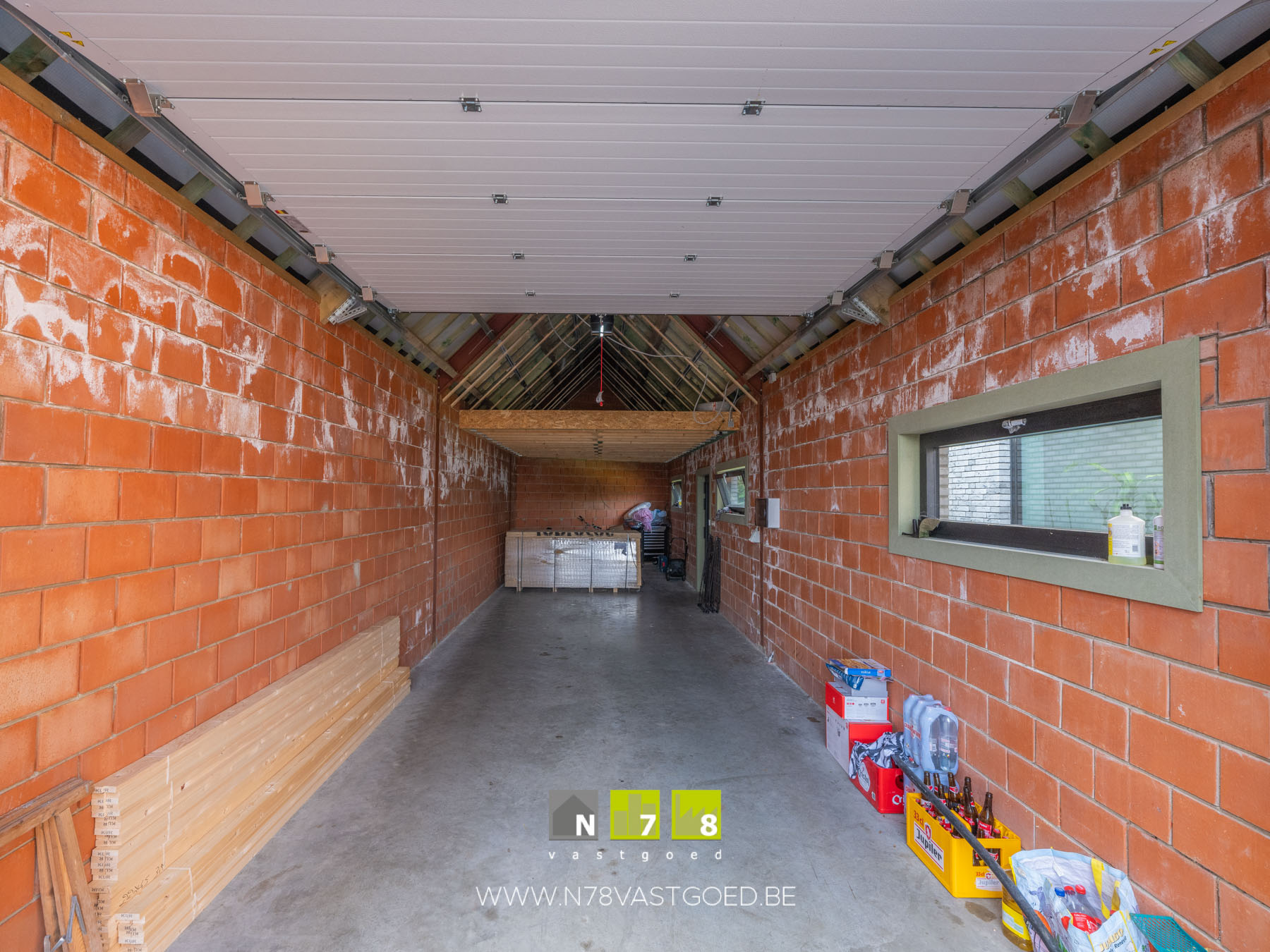 - Garage: gevlinderde beton, zolder, automatische poort.