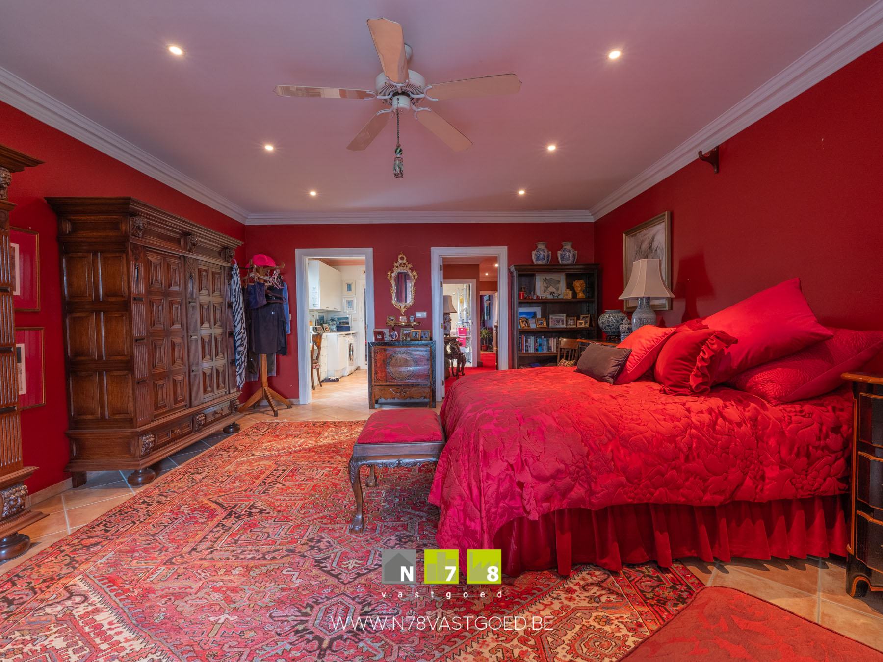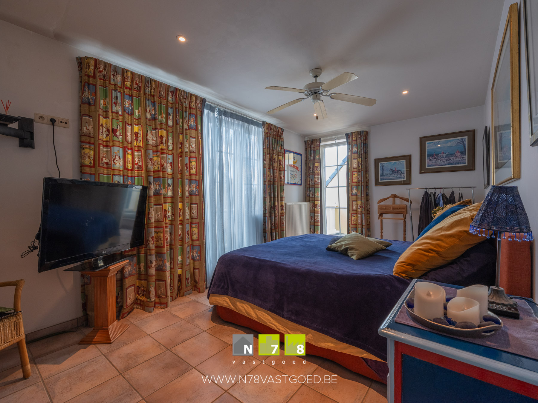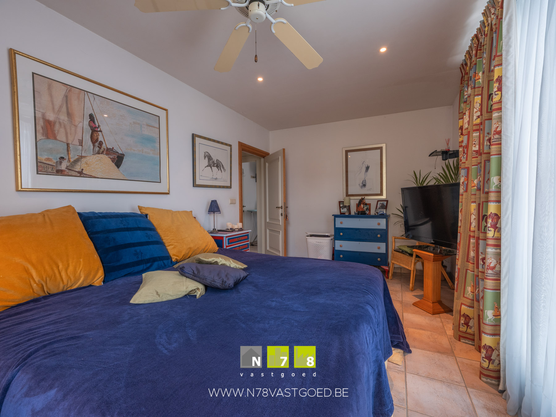 - Slaapkamer 3: inbouwkasten, raam naar balkon voor & achter, airco, doorgang naar badkamer 2, vloerkleed.
