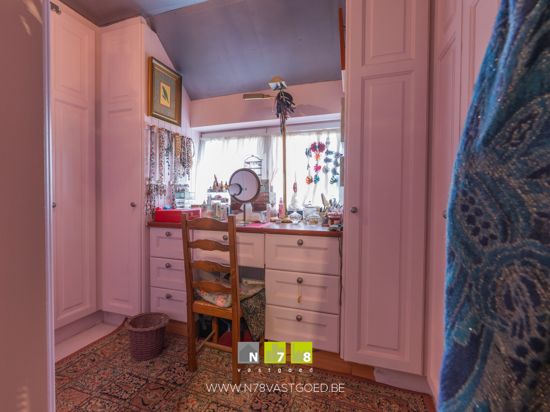 - Polyvalente ruimte: momenteel ingericht als make-up kamer, inbouwkasten, tegelvloer.