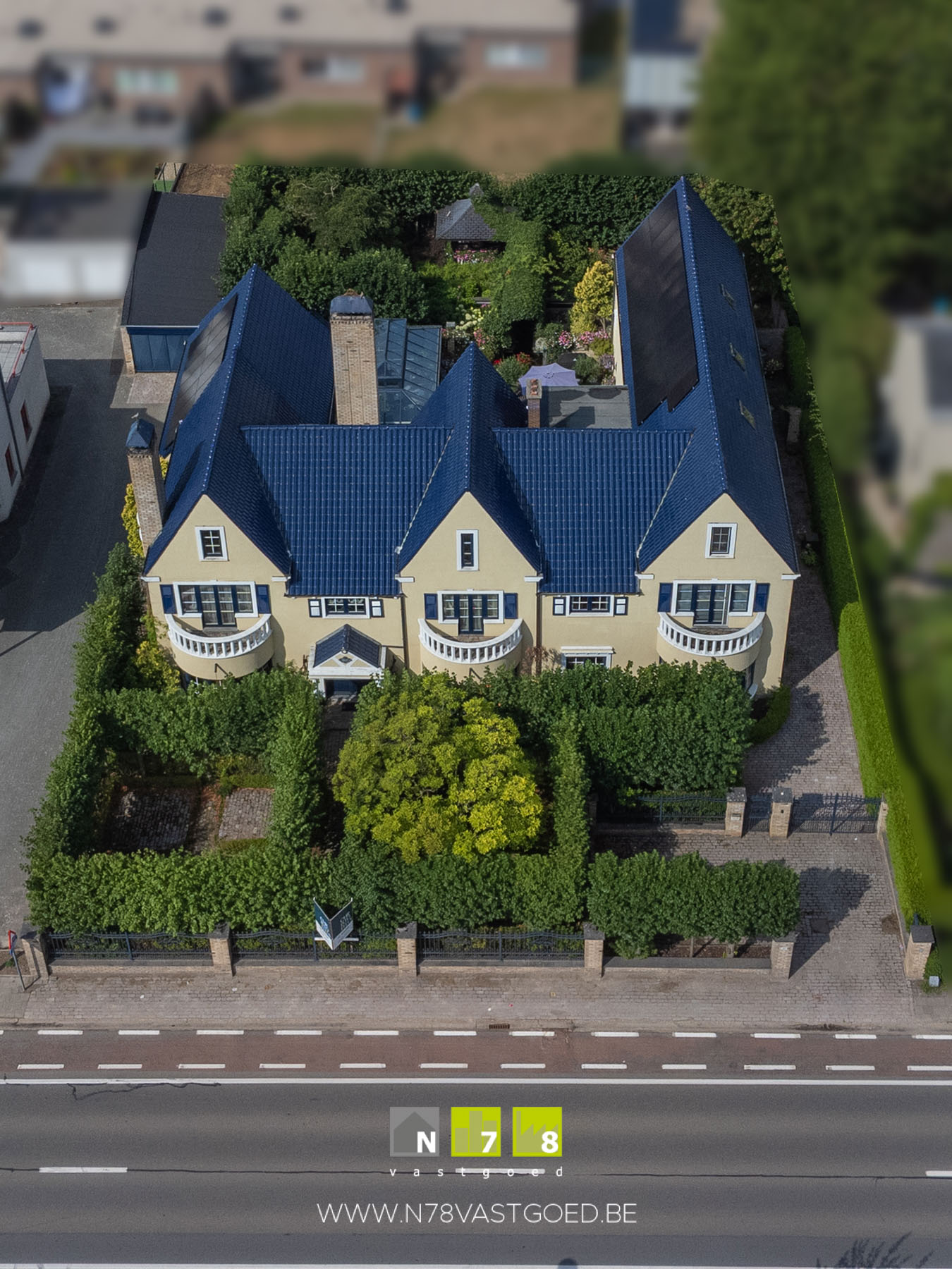 - Domein afgesloten met metalen toegangspoorten.