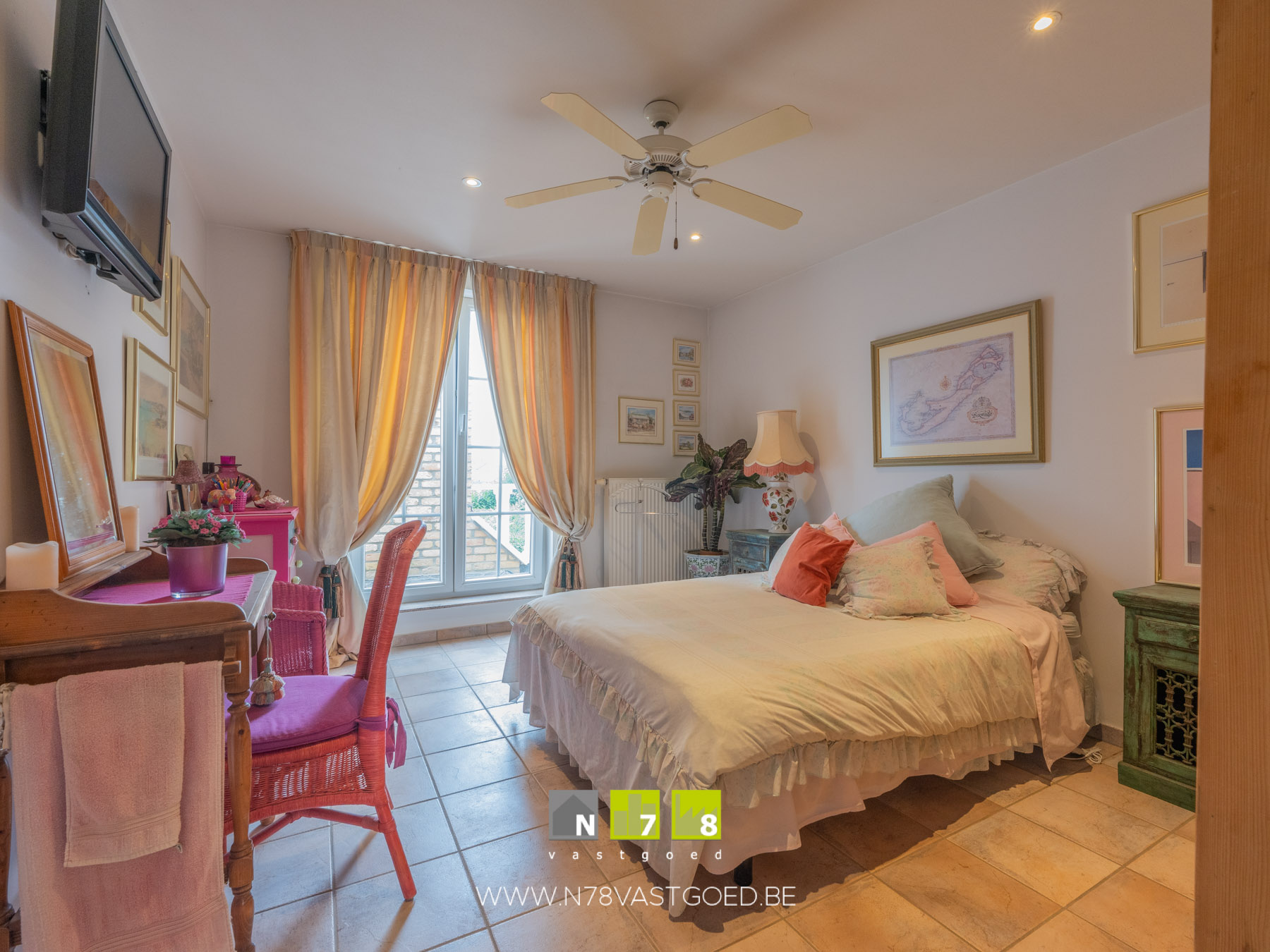 - Slaapkamer 4: airco,veel lichtinval dankzij groot raam, tegelvloer.