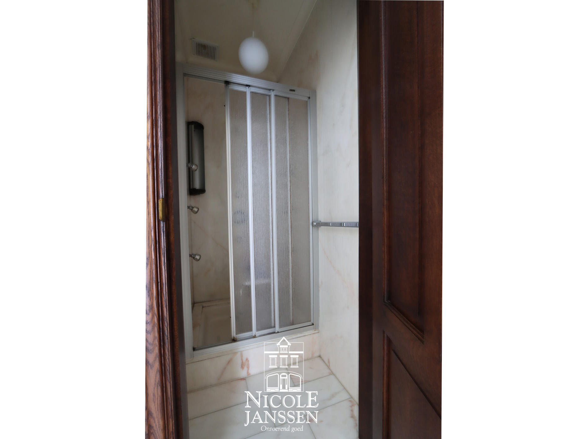 - Naast de badkamer is er een aparte betegelde douchecel aanwezig