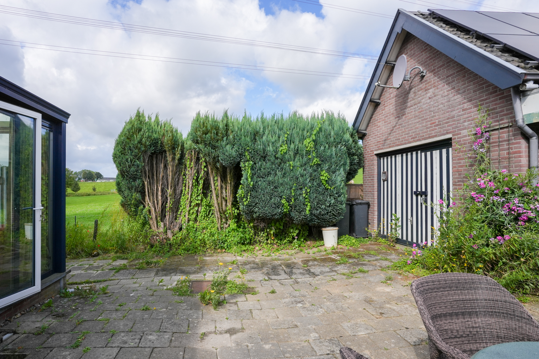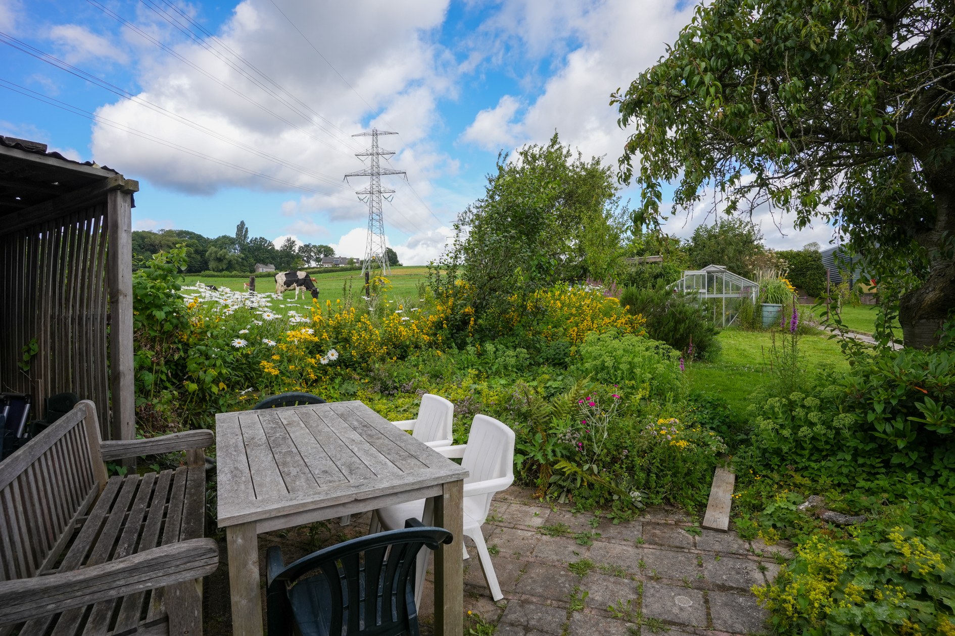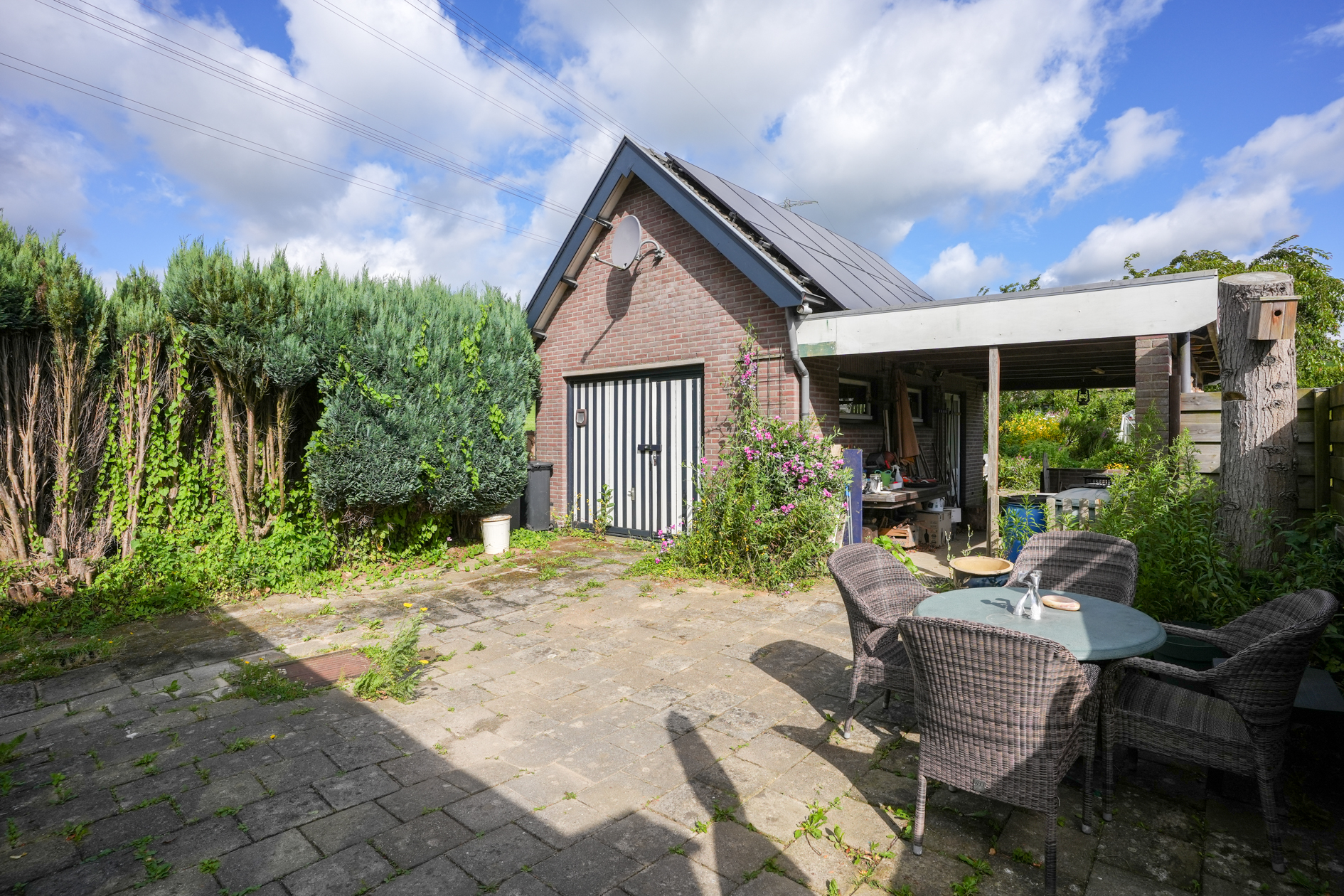 De garage, die in het verleden is gebruikt als werkplaats, heeft een uitbouw en deze is eenvoudig om te turnen naar woonruimte: alle voorzieningen zijn aanwezig, evenals krachtstroom.