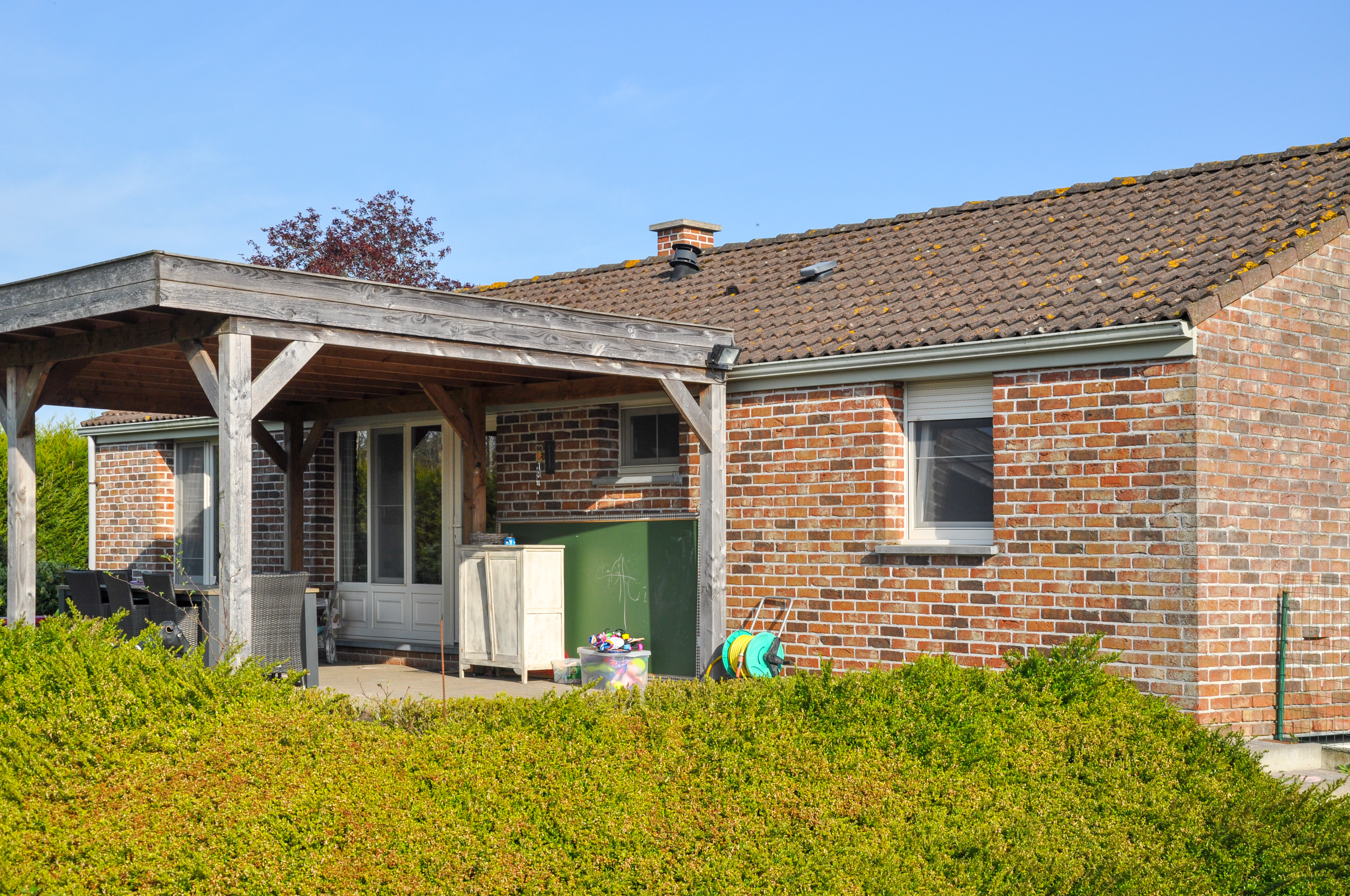 Aangeboden wordt de volledige houtskeletbouw samen met de dakpannen, de gevelstenen en de vloeren. De woning is reeds afgebroken en de materialen zijn ter plaatse aanwezig.