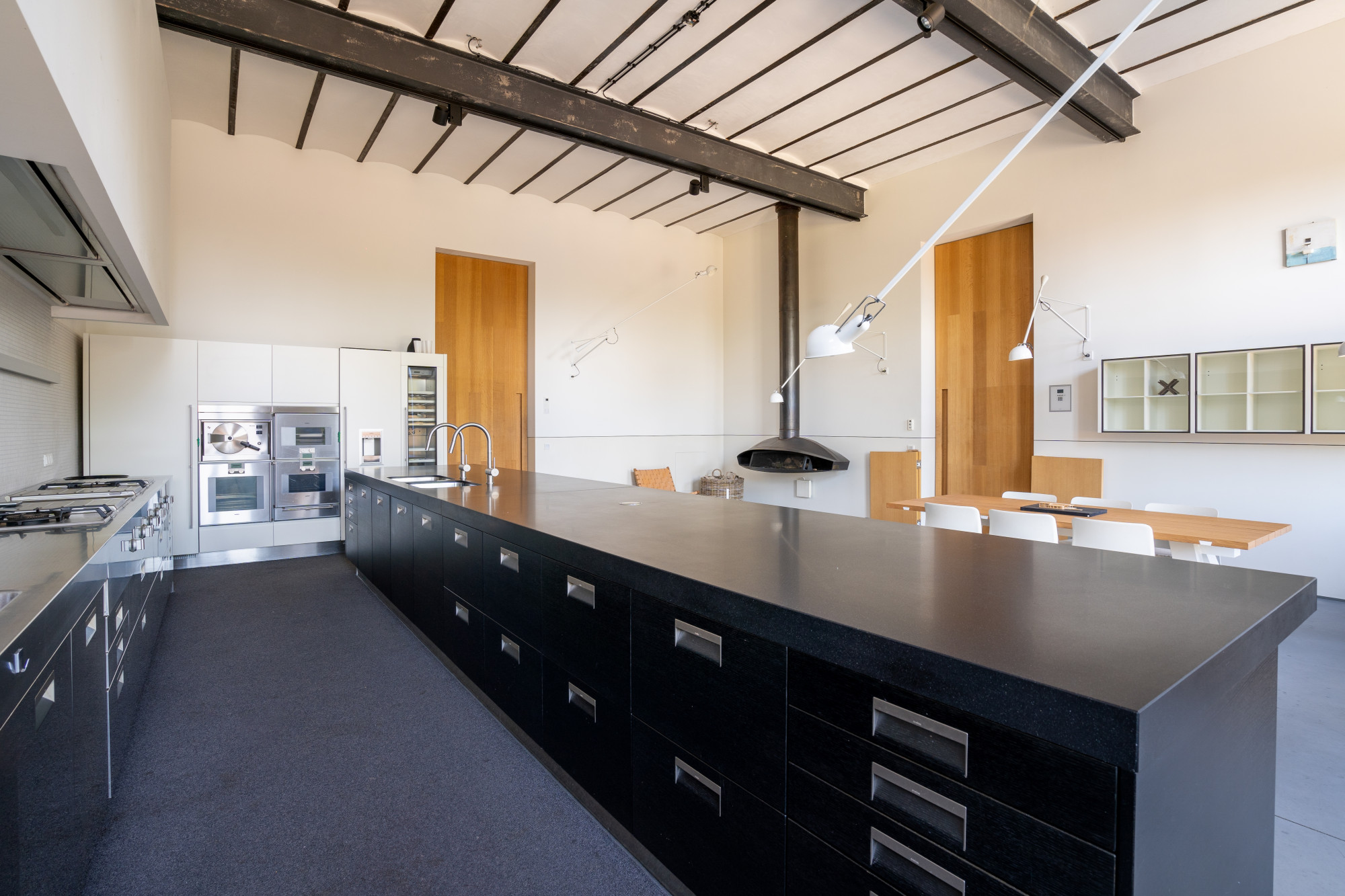 De keuken op het gelijkvloers is een semi-industriële keuken, met een werkblad afgewerkt in Corian en RVS en uitgerust met volgende toestellen van Gaggenau en Miele; 2 koelkasten, een vrieskast met ijsdispenser, wijnkoelkast, oven, stoomoven, steamer, combi oven, 2 vaatwassers, 3 spoelbakken, friteuse, teppanyaki, warmhoudlade, 2 wokbranders, 4 pits gasfornuis, Quoocker en een afzuigkap.