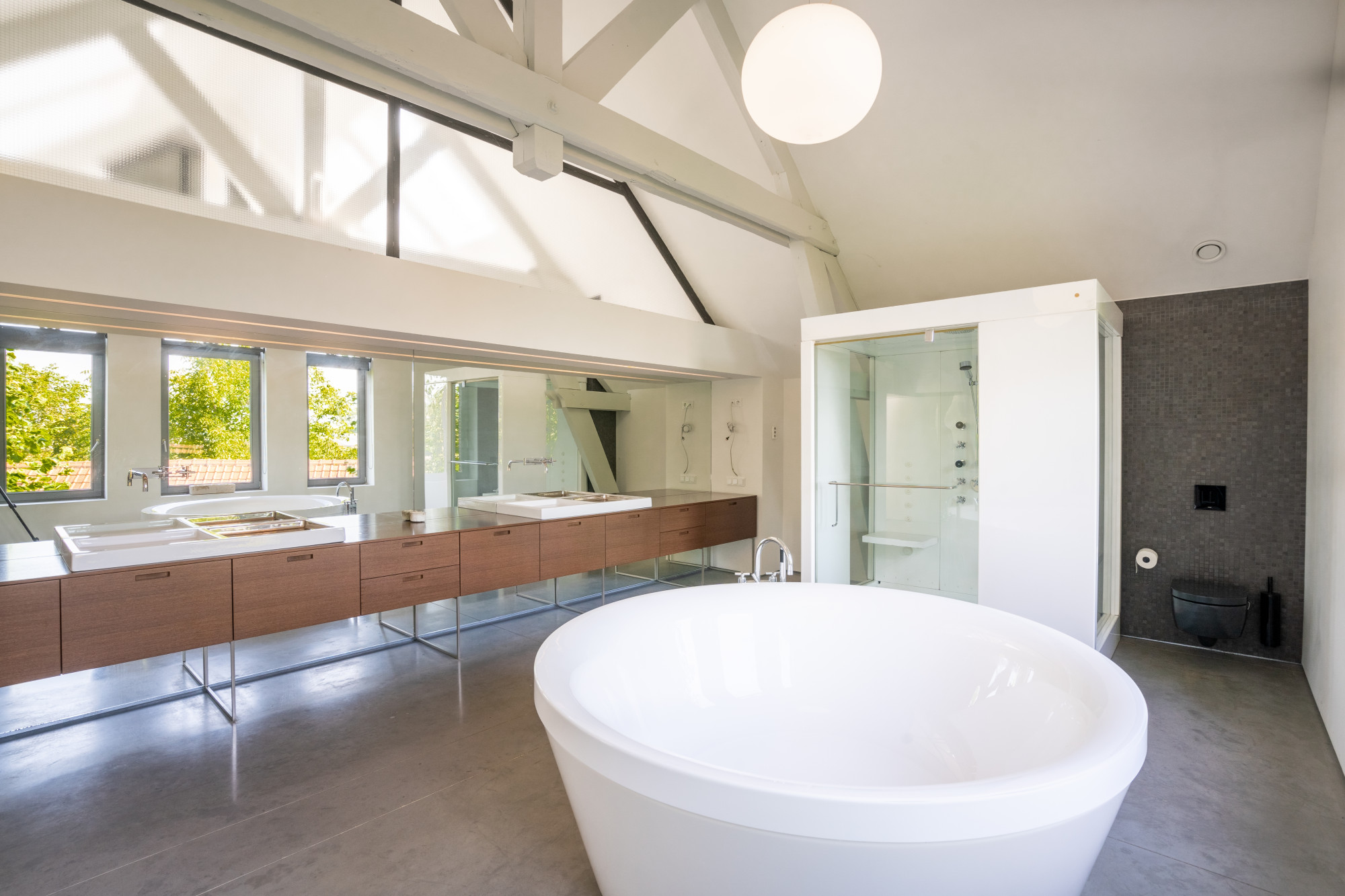 Badkamer 1, 2, en 3 zijn uitgerust met een inloopdouche, enkele of dubbele wastafel en toilet. De masterbadkamer is uitgerust met een rond design ligbad, een massagedouche met lichtterapie, een groot badkamer meubel met 2 wastafels en een toilet.