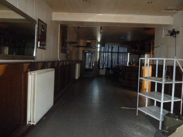 Begane grond: voormalig café met toiletgroepen zaal en berging (oppervlakte ca. 166m2)
