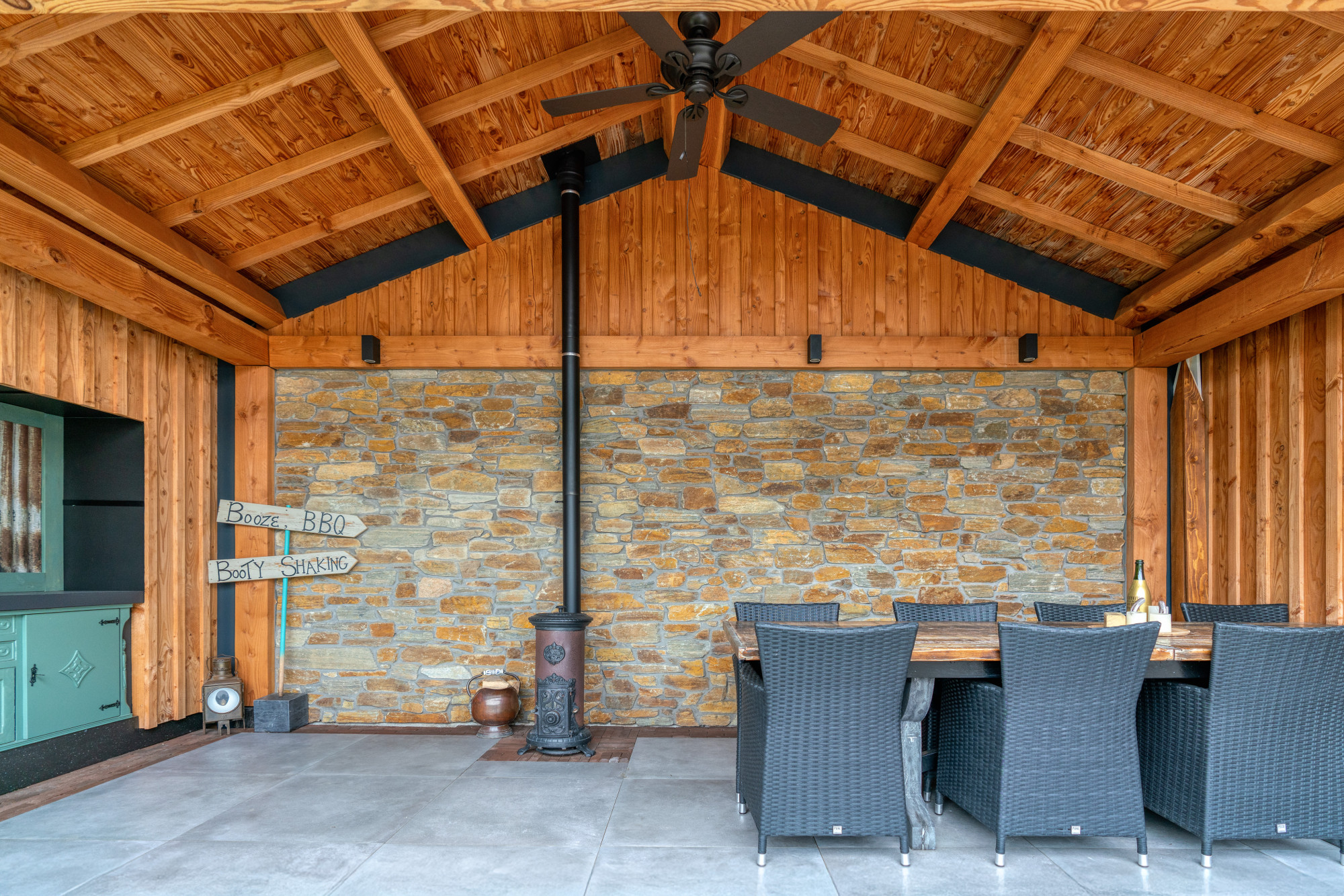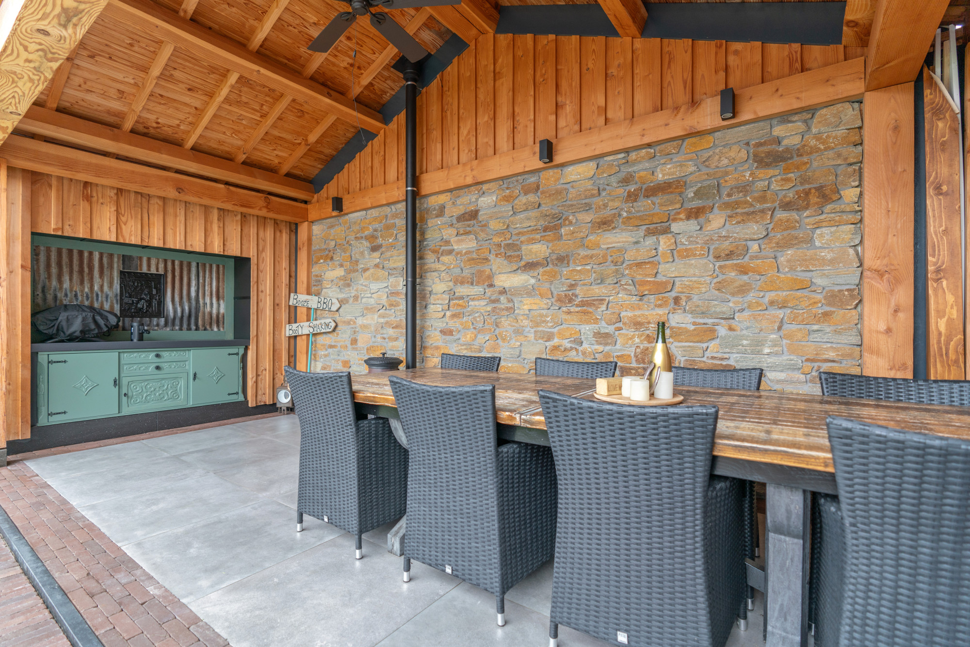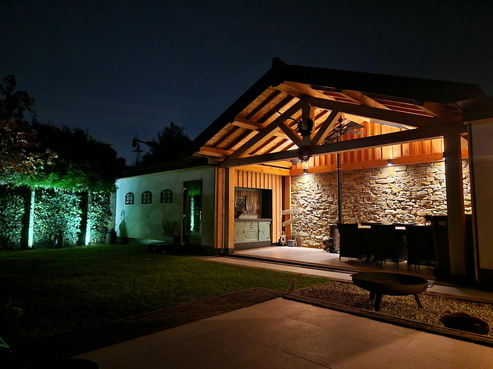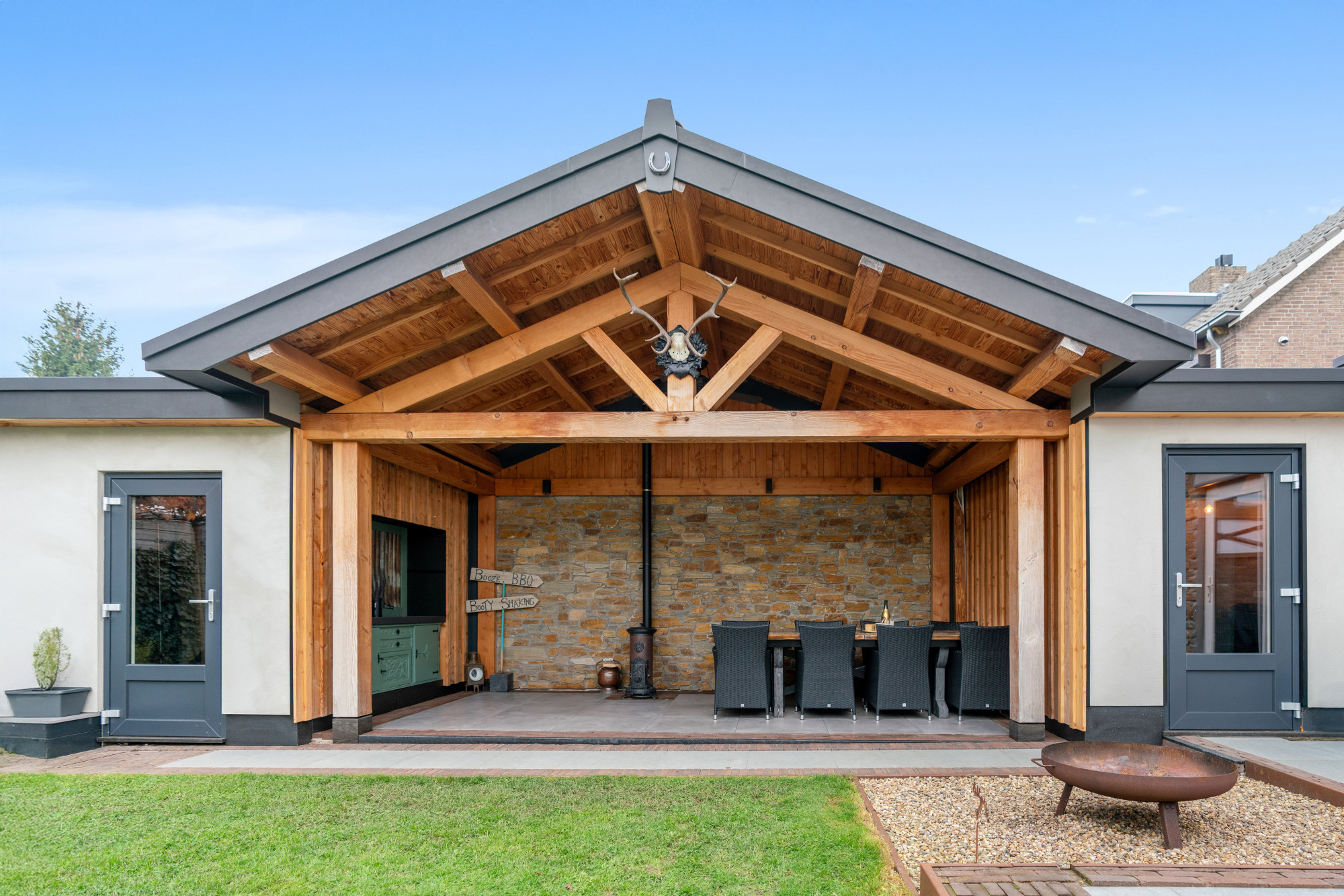 De fraai aangelegde tuin (gelegen op Zuid/westen) is een oase van rust en privacy, met een garage, een multifunctionele ruimte van ca. 17m² en een fantastische houten overkapping.
