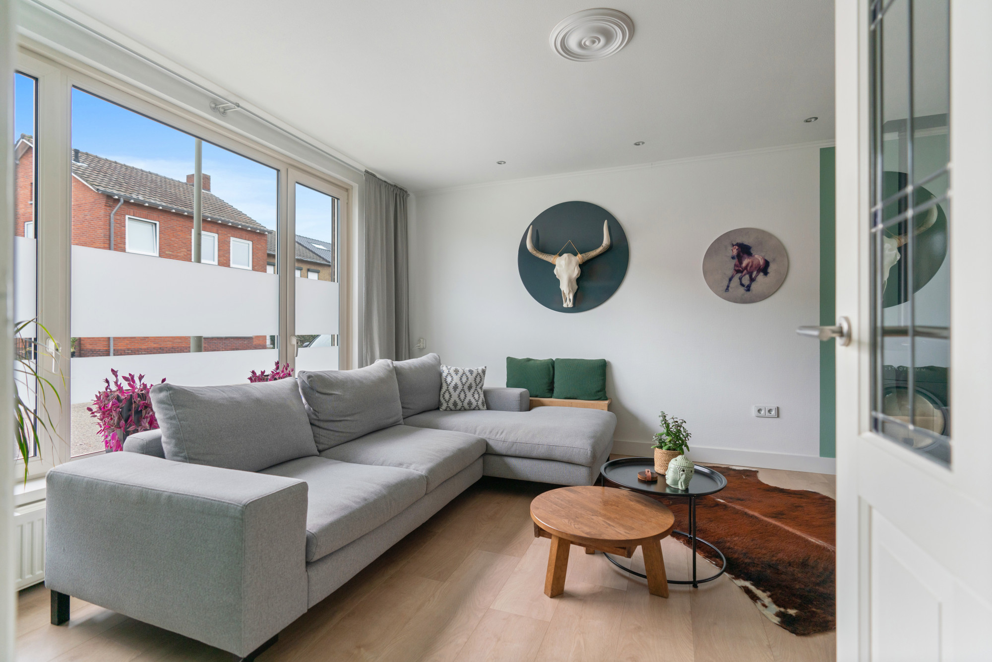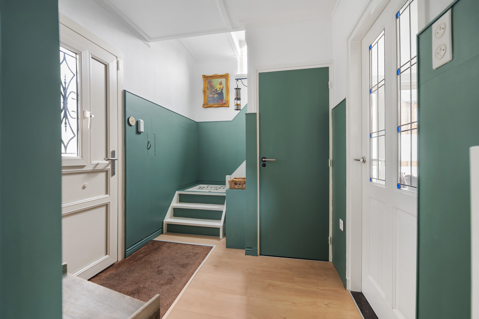 - Volledig voorzien van kunststof kozijnen met isolerende beglazing; in 3 ramen is doorzichtig glas-in lood verwerkt;