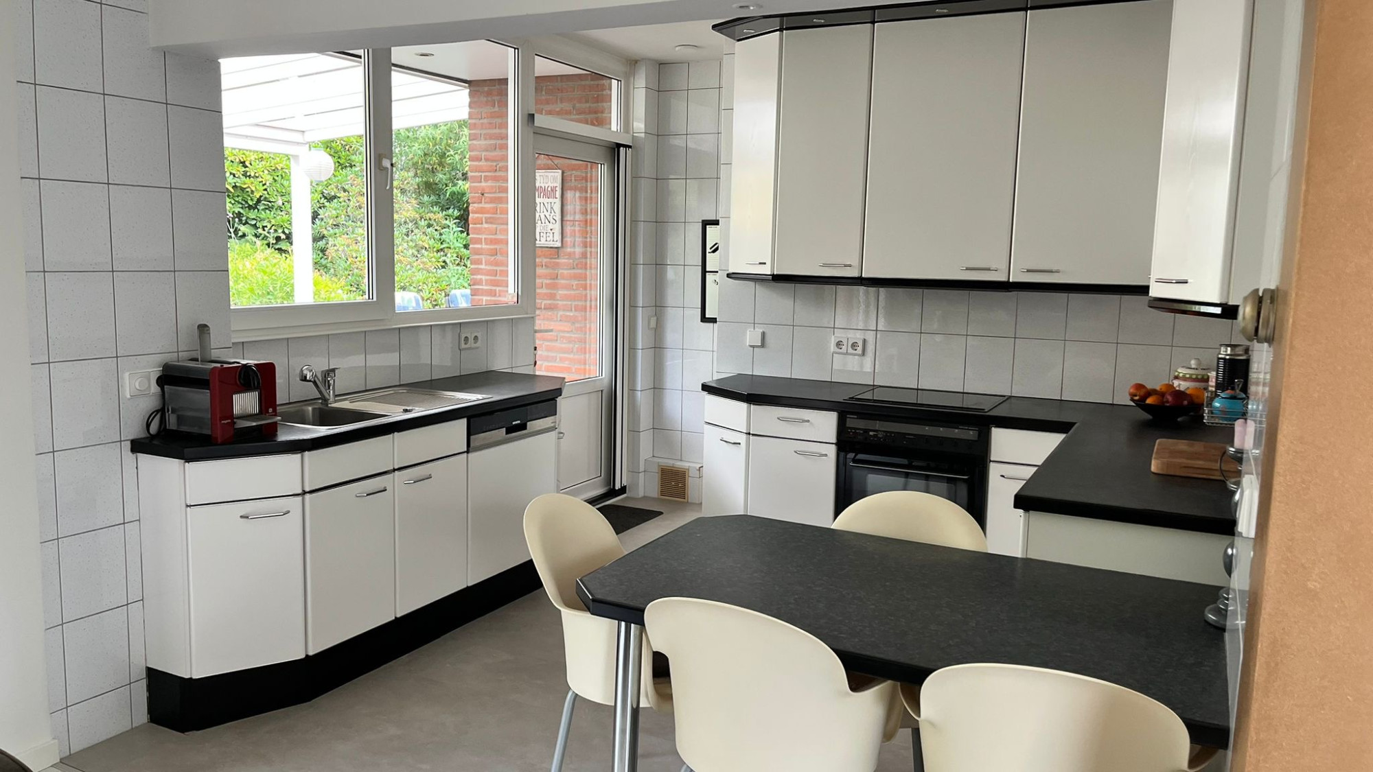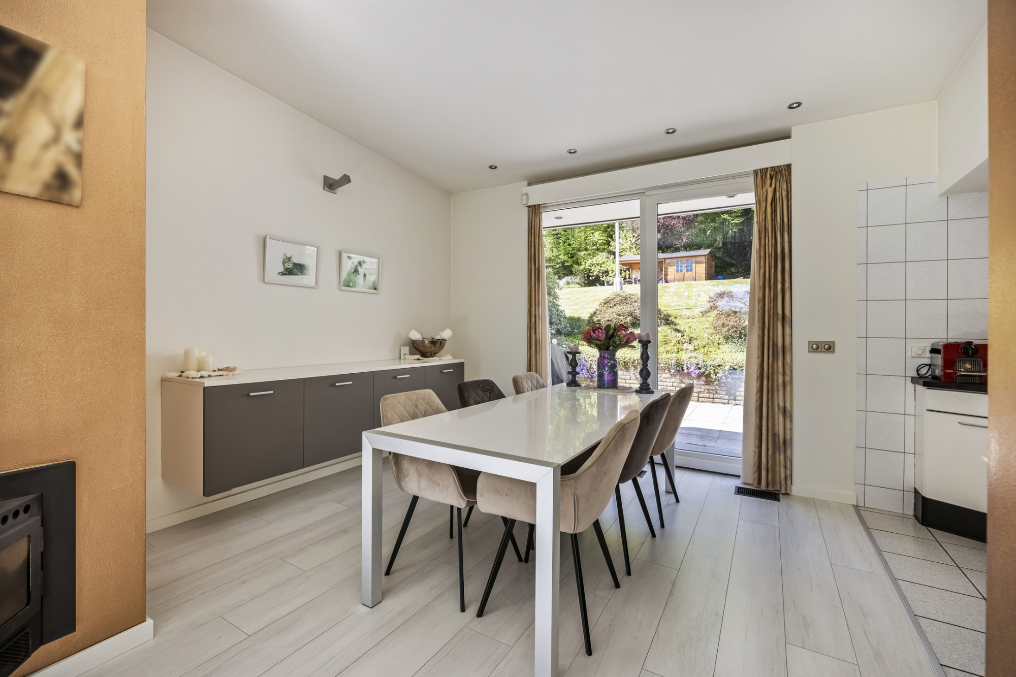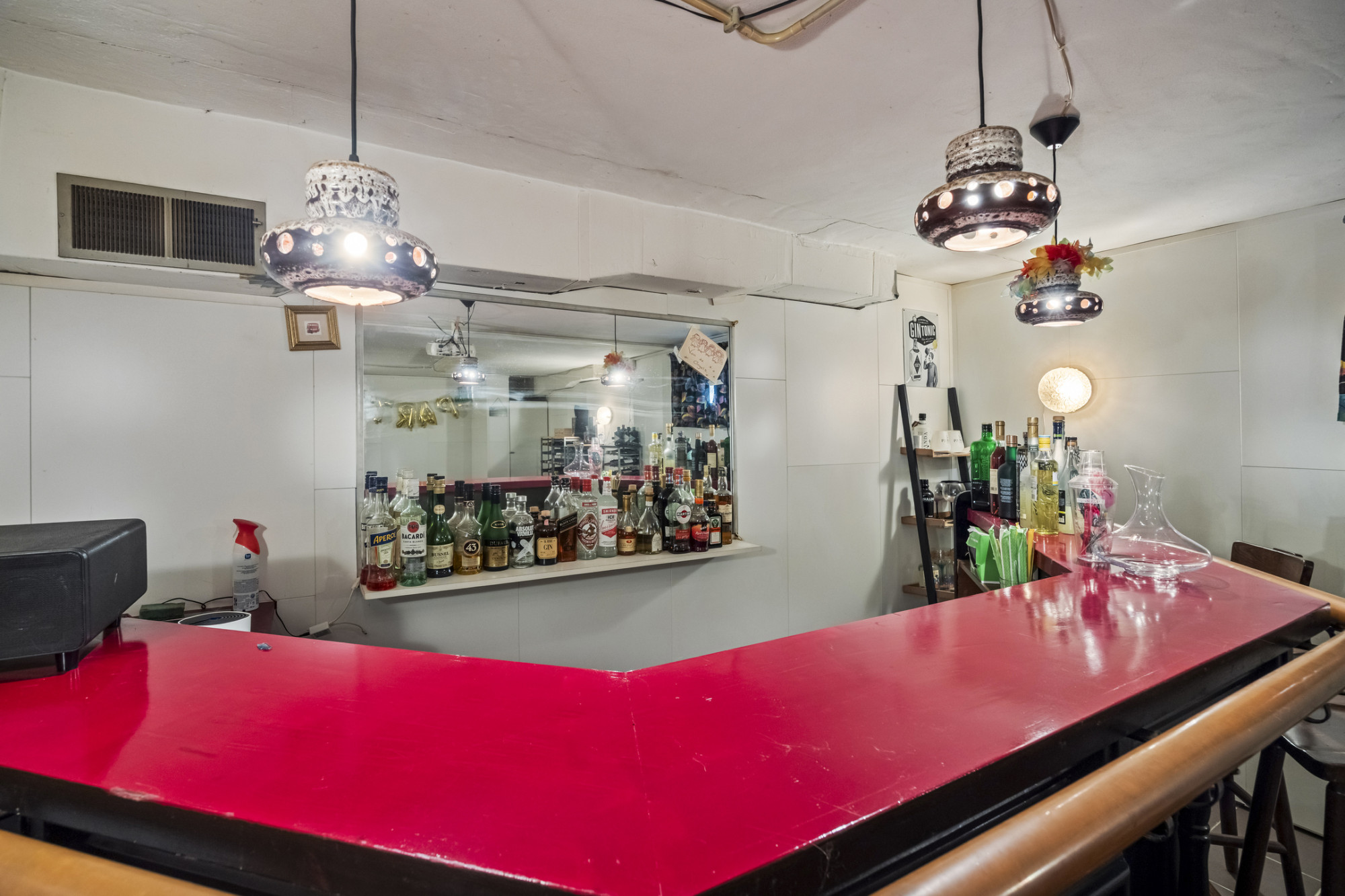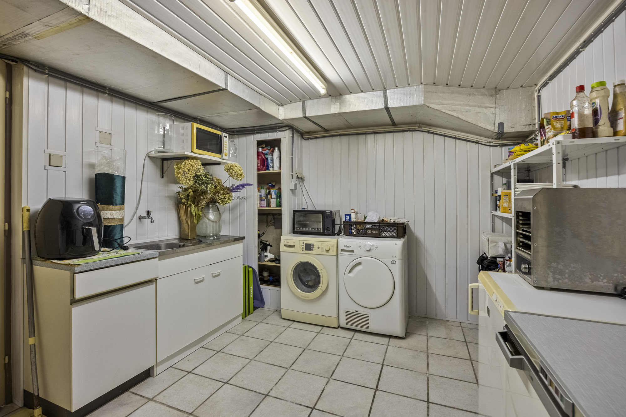 Het souterrain is een waardevolle toevoeging aan deze woning en biedt volop praktische én gezellige ruimte. De inpandige garage is bereikbaar via een elektrische poort en sluit aan op een royale oprit. Hier vind je ook een praktische bijkeuken, ideaal voor wasapparatuur of extra bergruimte. In de stookruimte bevinden zich de verwarmingsinstallatie en boiler. Uniek is de wijnkelder met aparte bar, compleet met beamer – de ideale plek voor een avondje ontspanning met vrienden of familie!