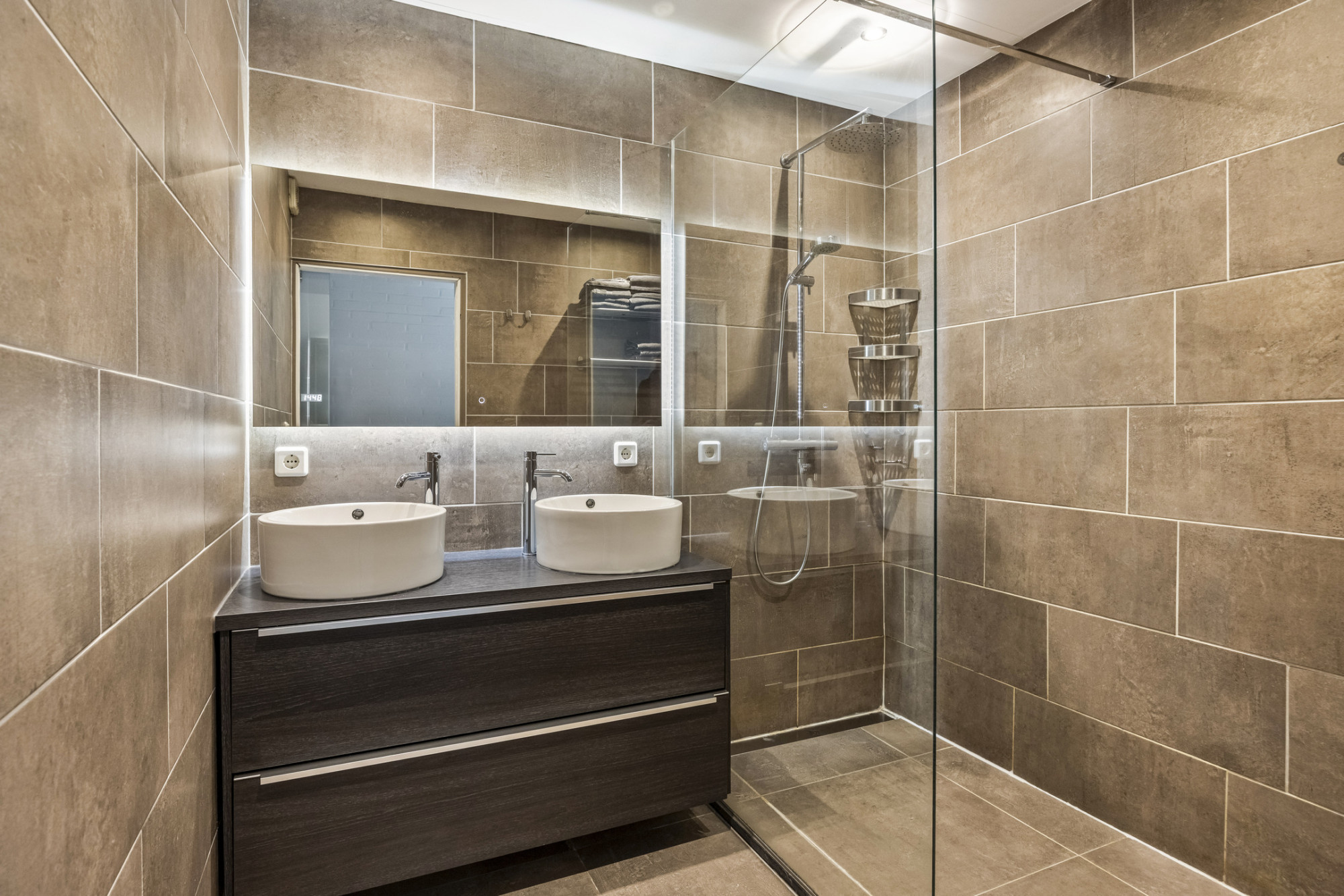 De luxe badkamer is vernieuwd en uitgerust met een dubbel wastafelmeubel en een royale inloop regendouche. De woning beschikt over drie slaapkamers, waarvan twee aan de rustige achterzijde en één aan de voorzijde van de woning.
