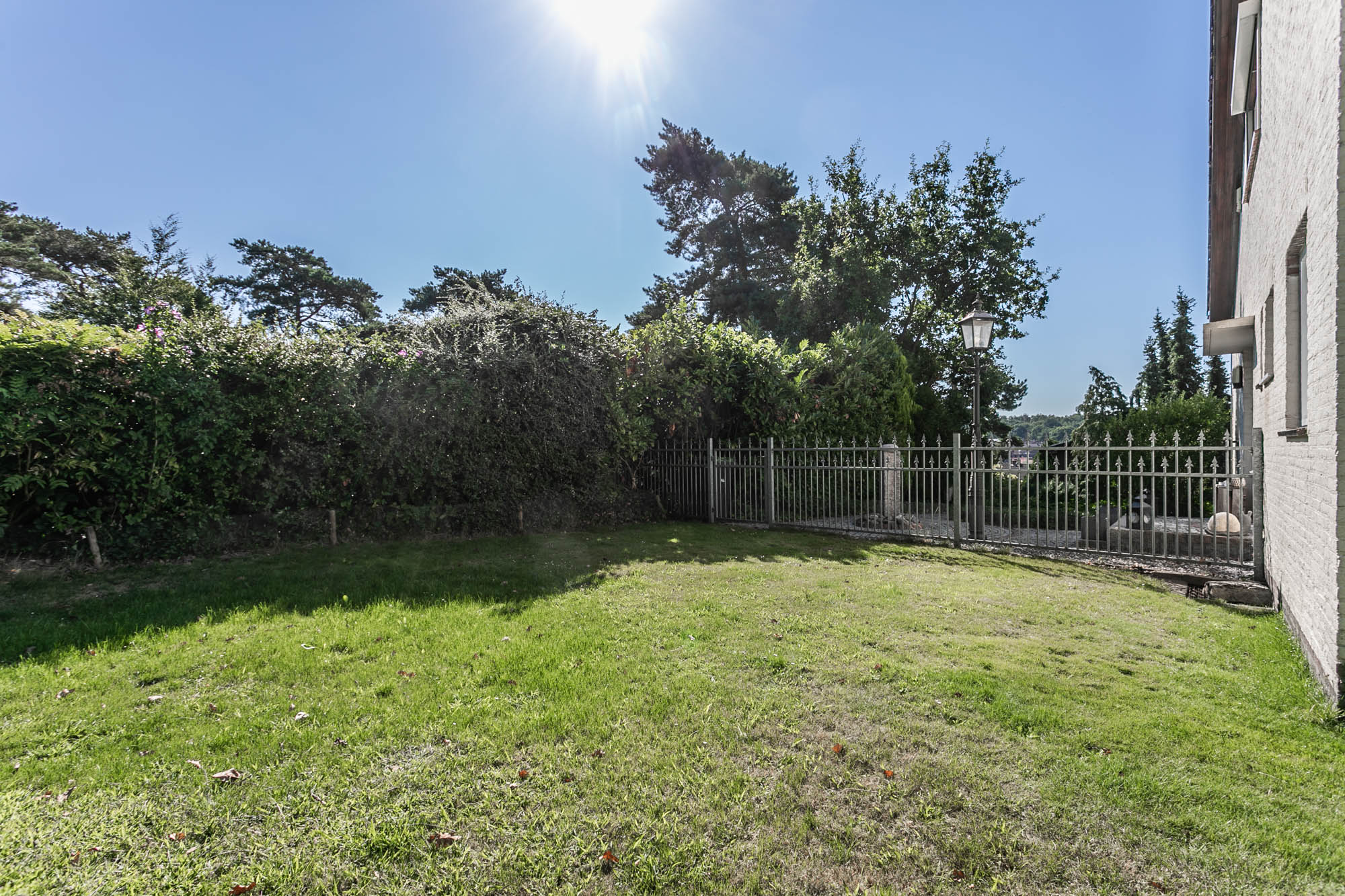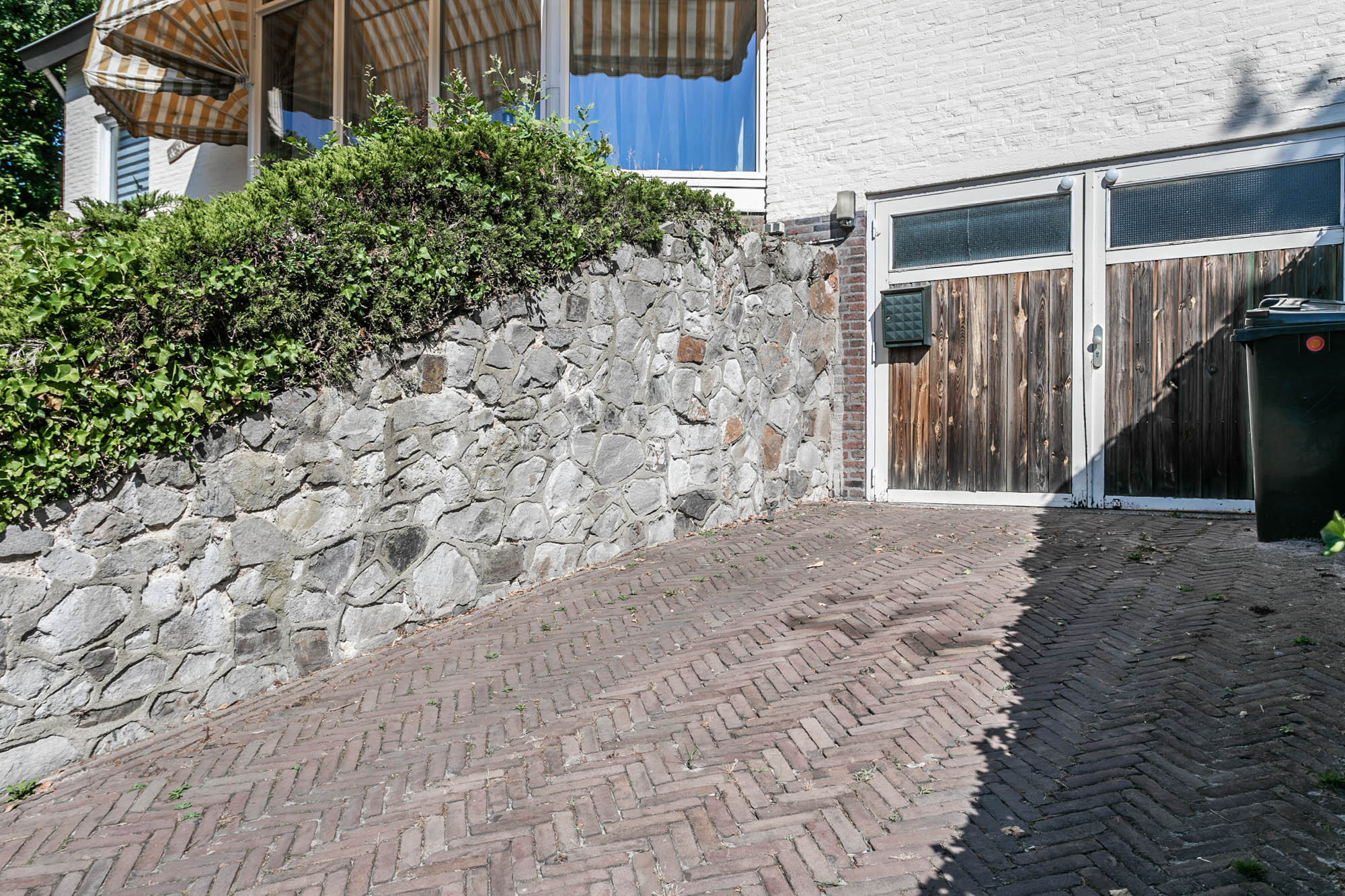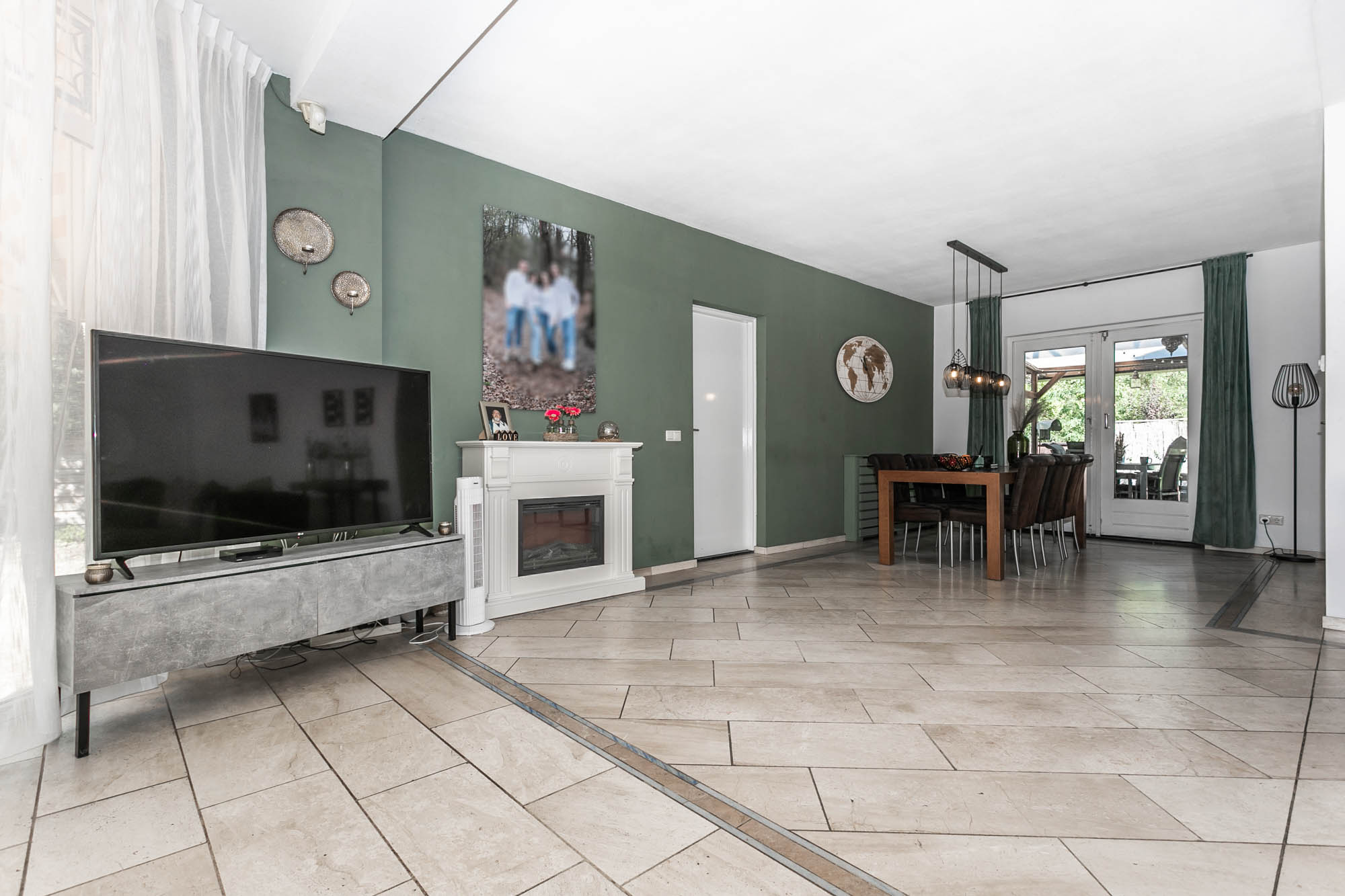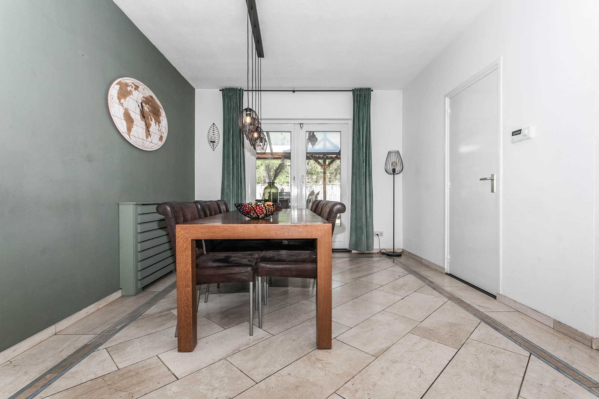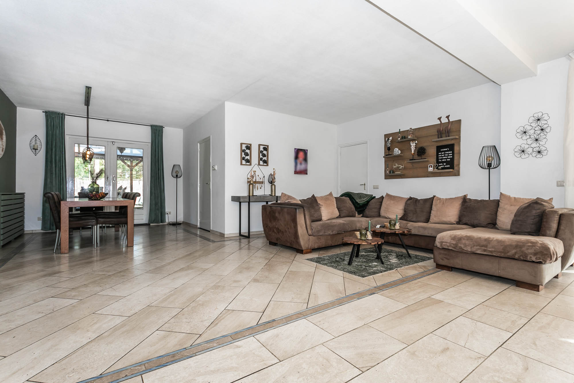 De openslaande deuren leiden naar het overdekte terras, waar u in alle rust geniet van uw tuin.