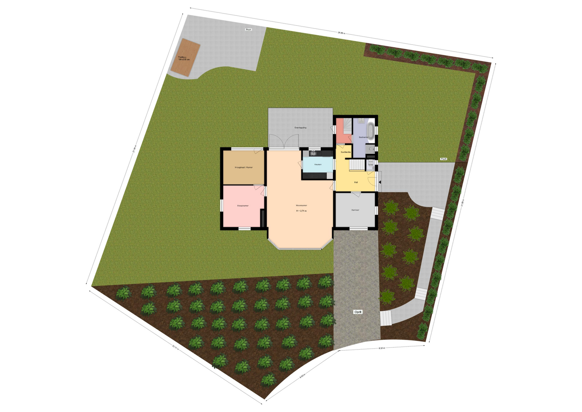 Een (eventueel) bijgevoegde plattegrond dient uitsluitend als globale indicatie/visualisatie. Hieraan kunnen uitdrukkelijk tevens geen rechten worden ontleend.