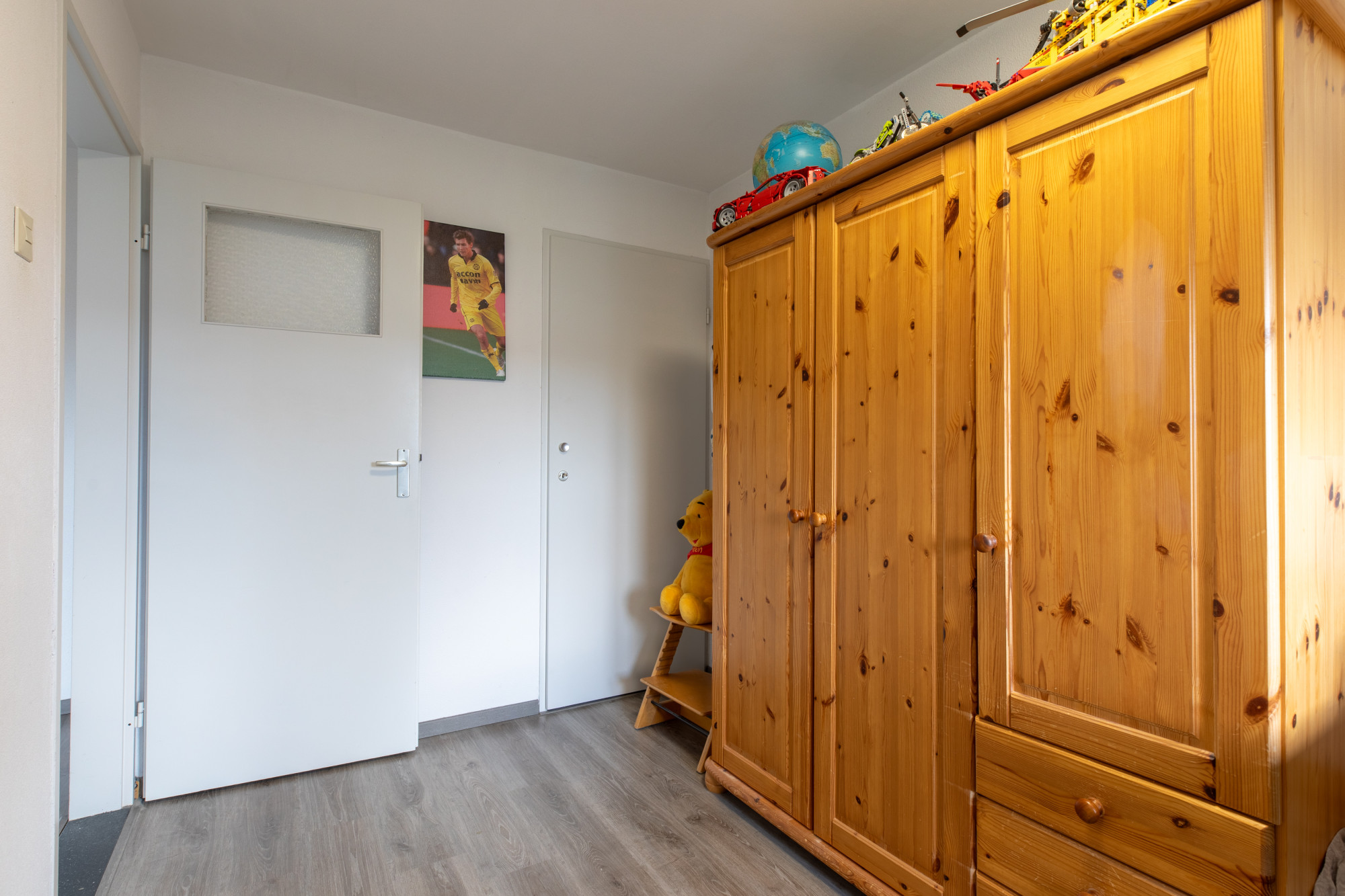 Slaapkamer 3 (4.26 x 2.22 m) voorzien van laminaatvloer en inbouw kast.